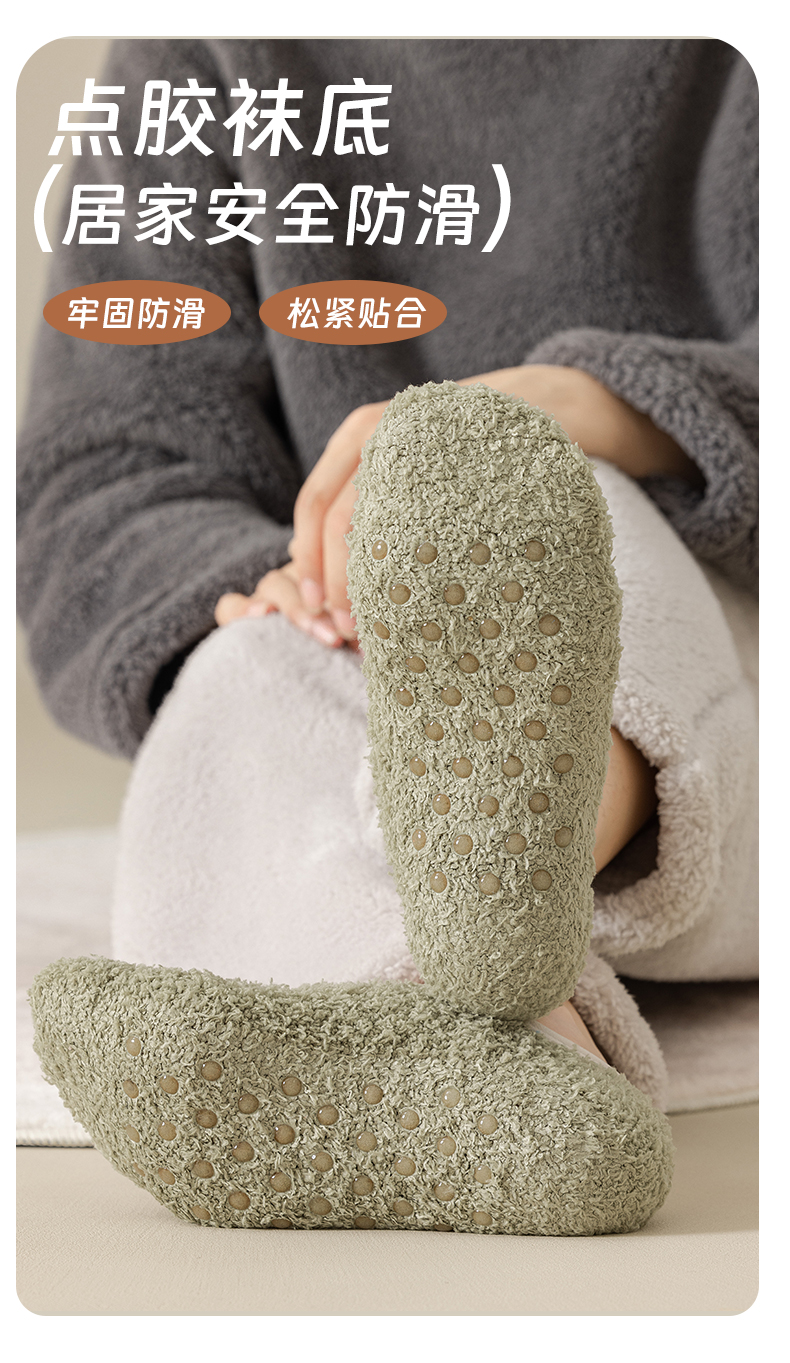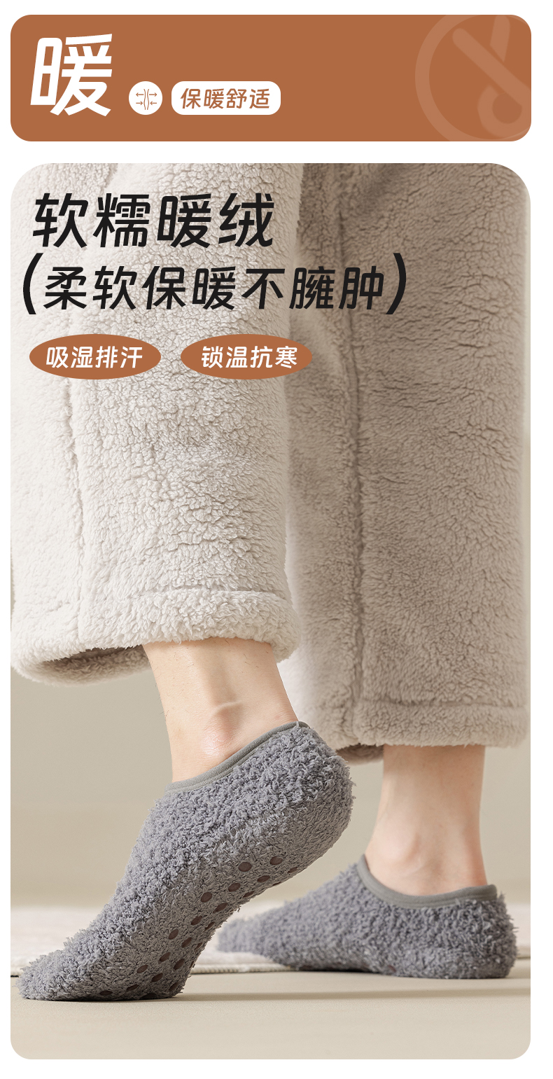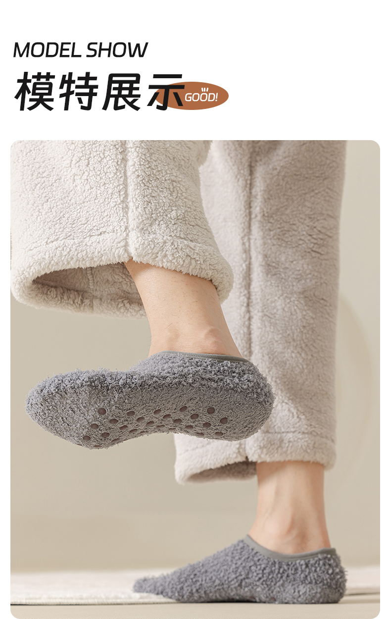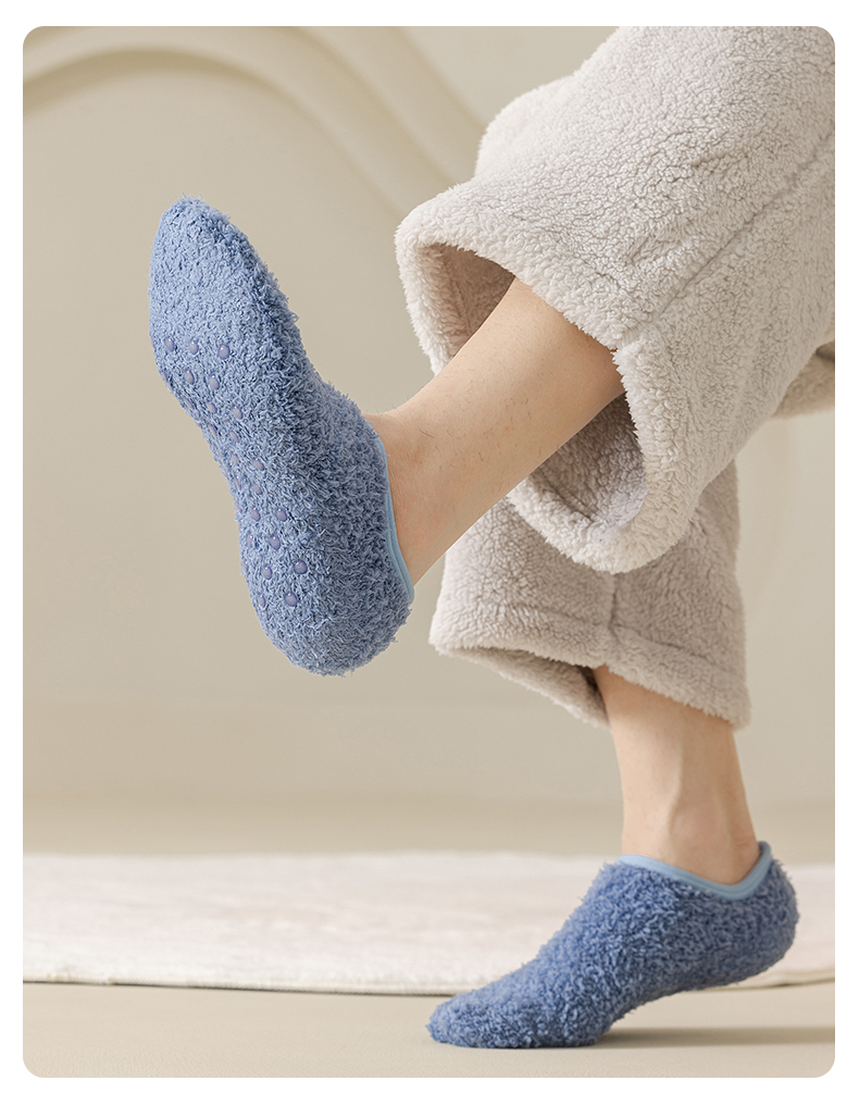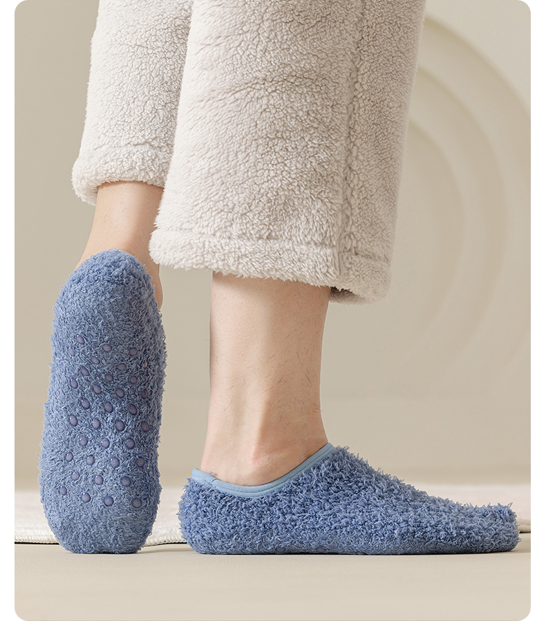Men's Floor Socks, Short Socks, Fleece-Lined and Thickened for Autumn and Winter, Plush Home Sleep Socks, Silicone Non-Slip Warm Sock Covers