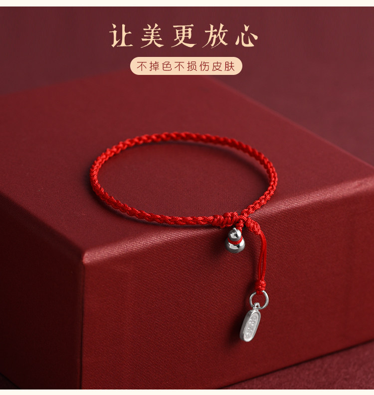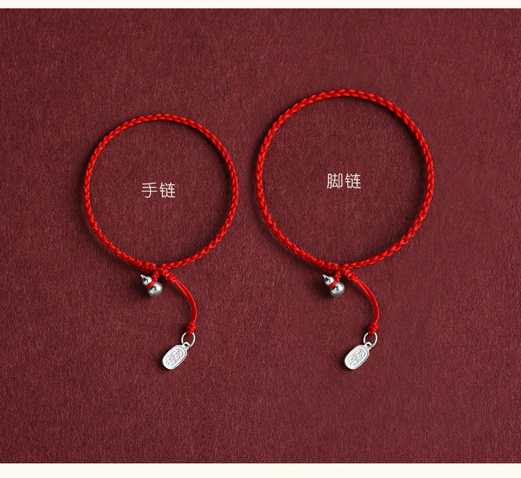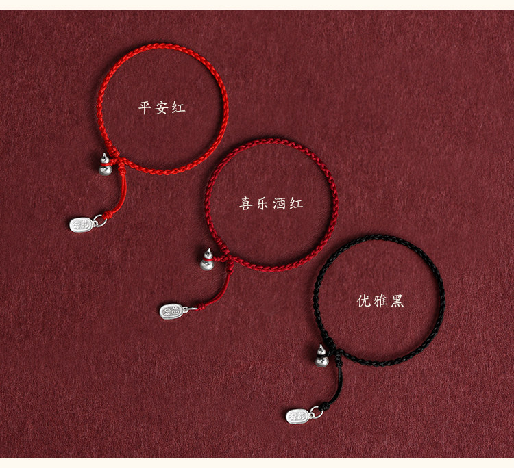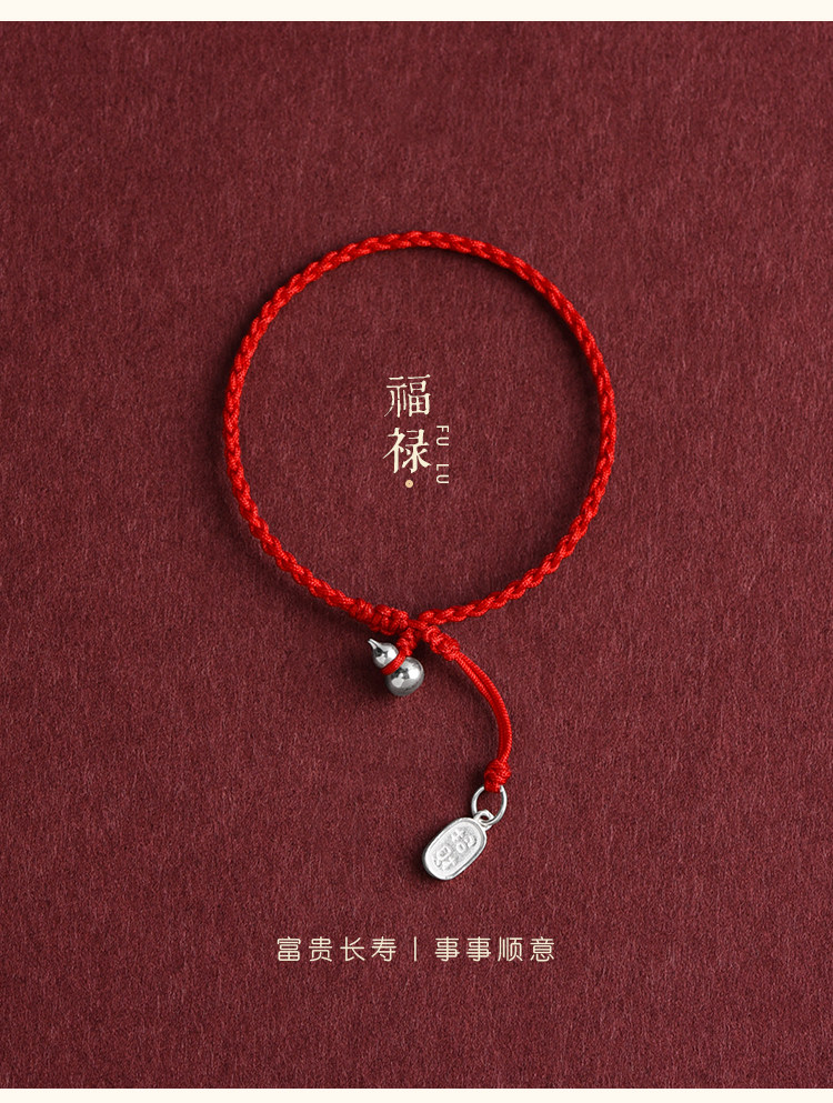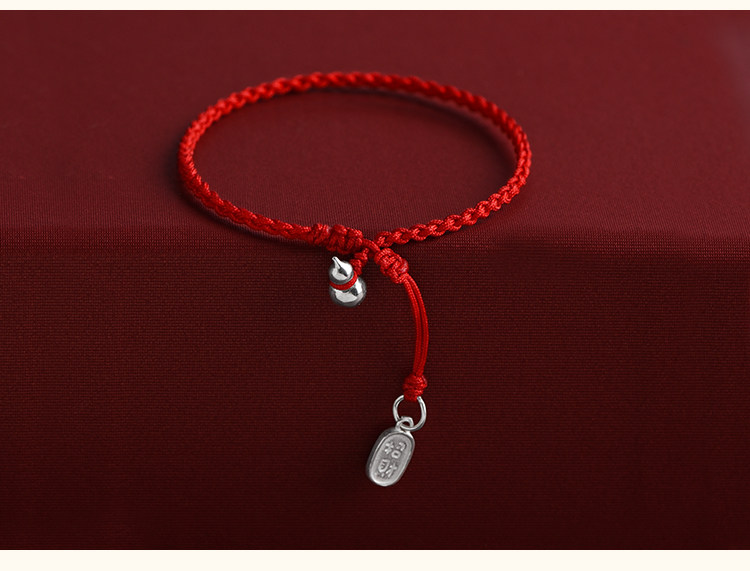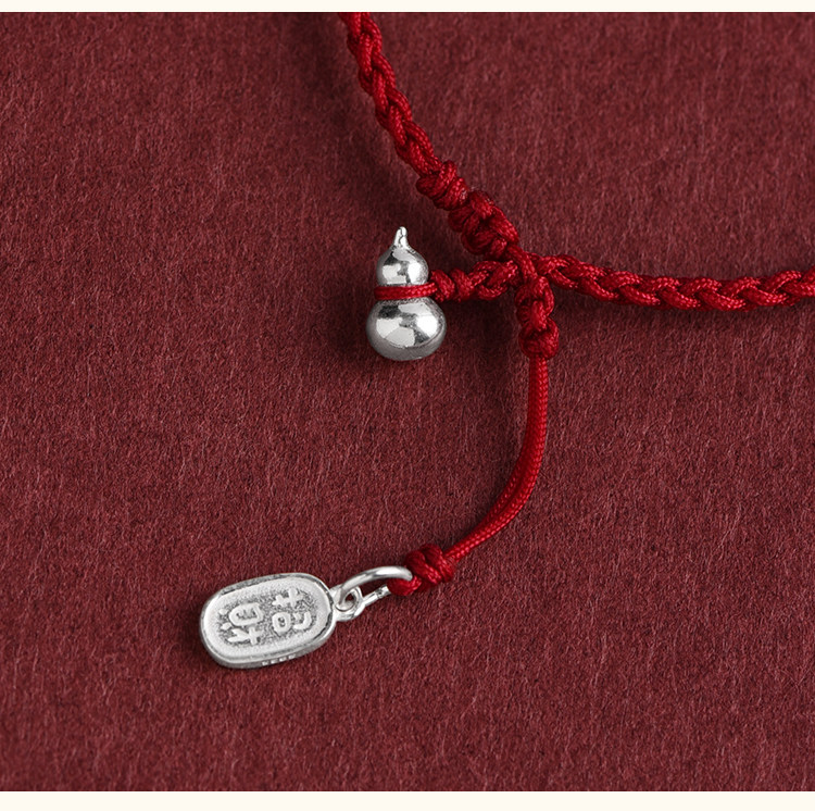 Solid Pure Silver Gourd Red String Bracelet and Anklet for Men and Women, Wealth-Attracting and Fortune-Enhancing Pendant, Handmade Woven Bracelet and Anklet