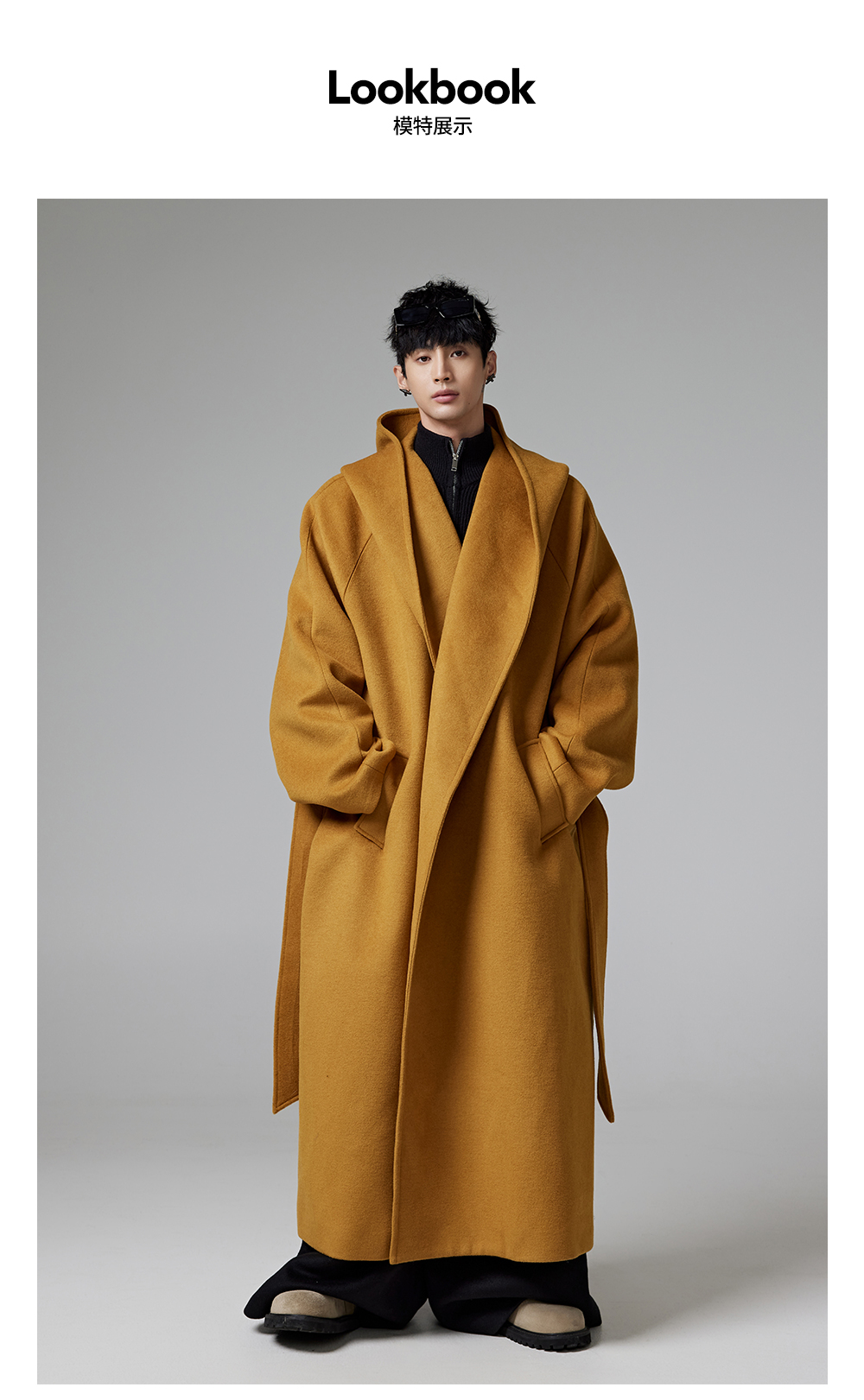 Insomnia Autumn and Winter High-End Design Over-The-Knee Loose Silhouette Hooded Bathrobe Woolen Coat for Men