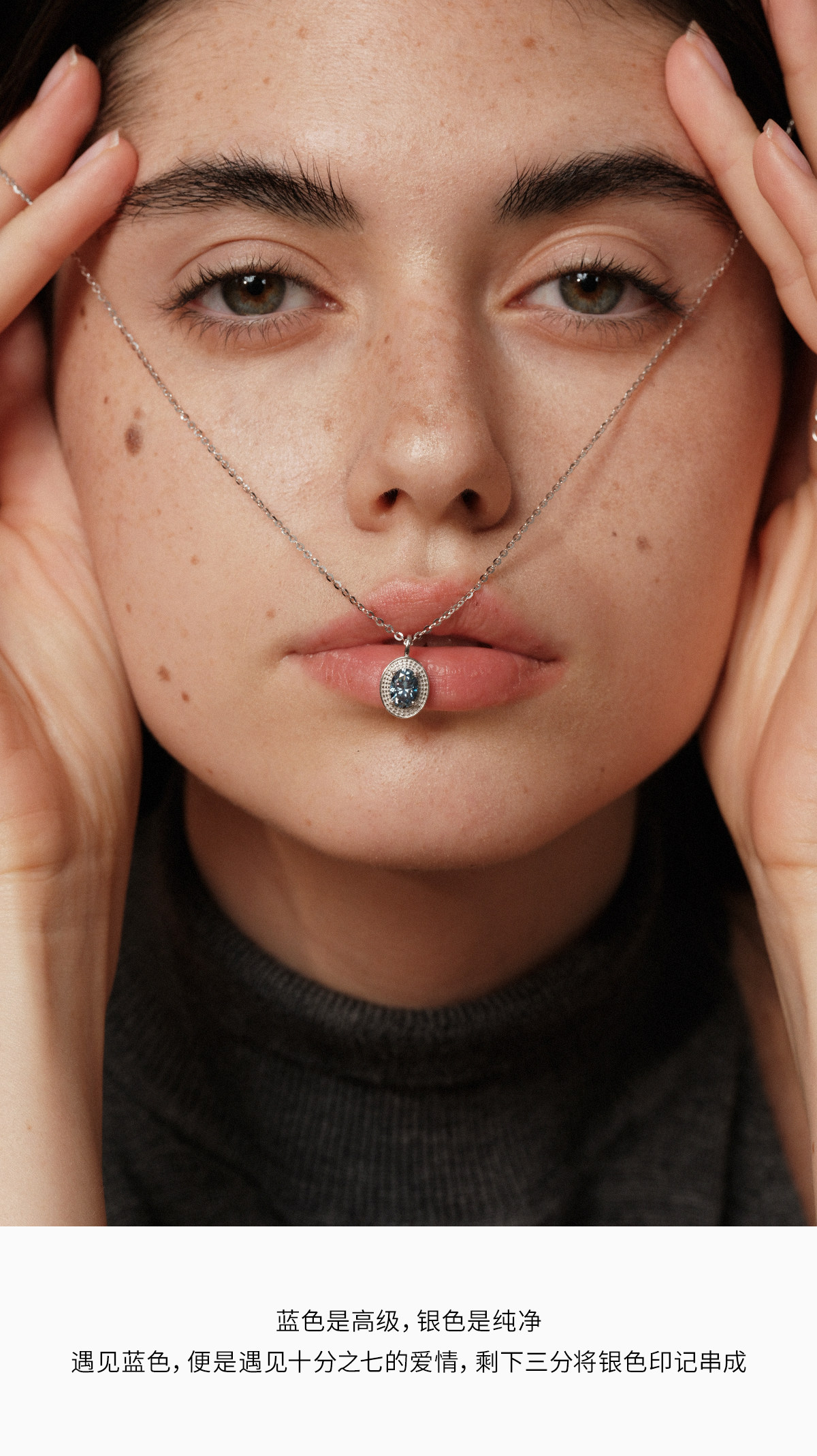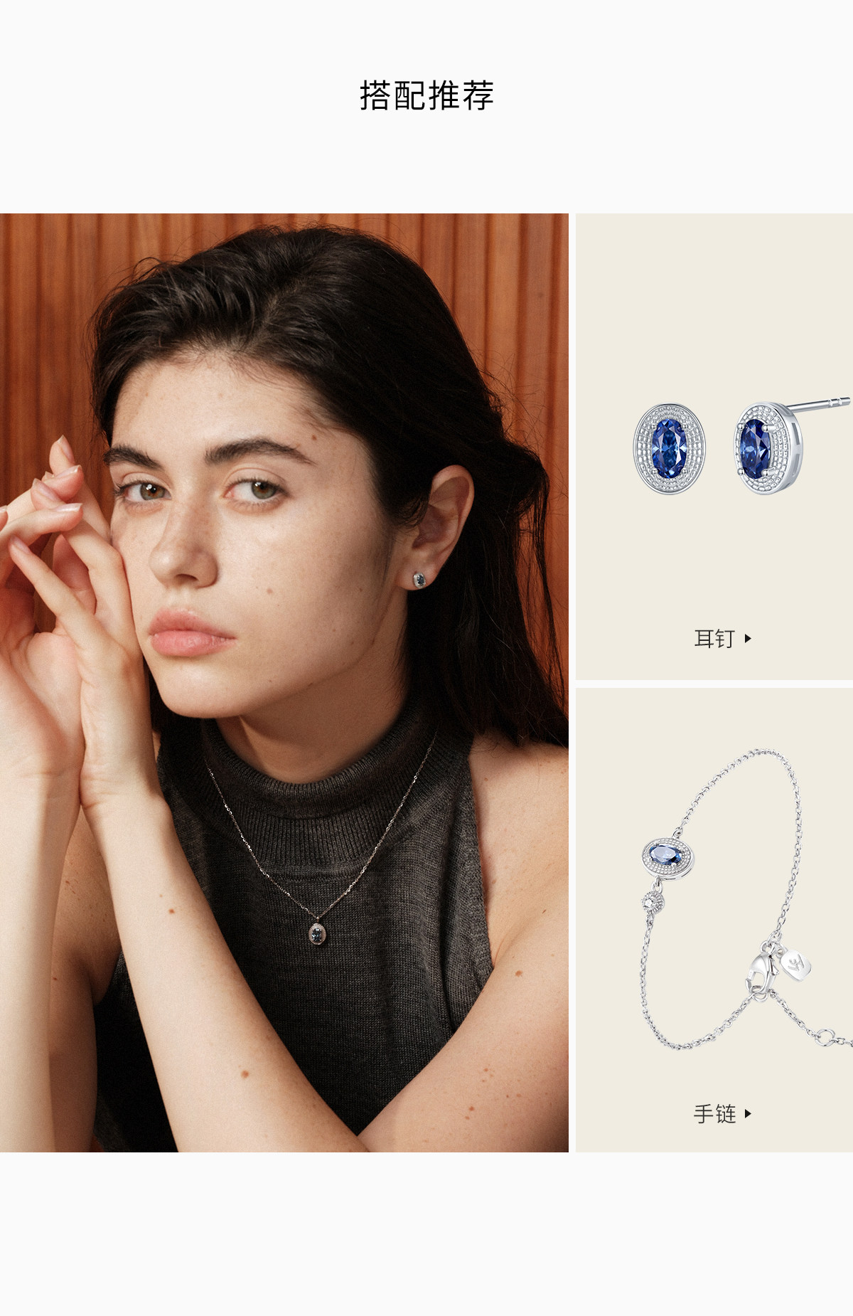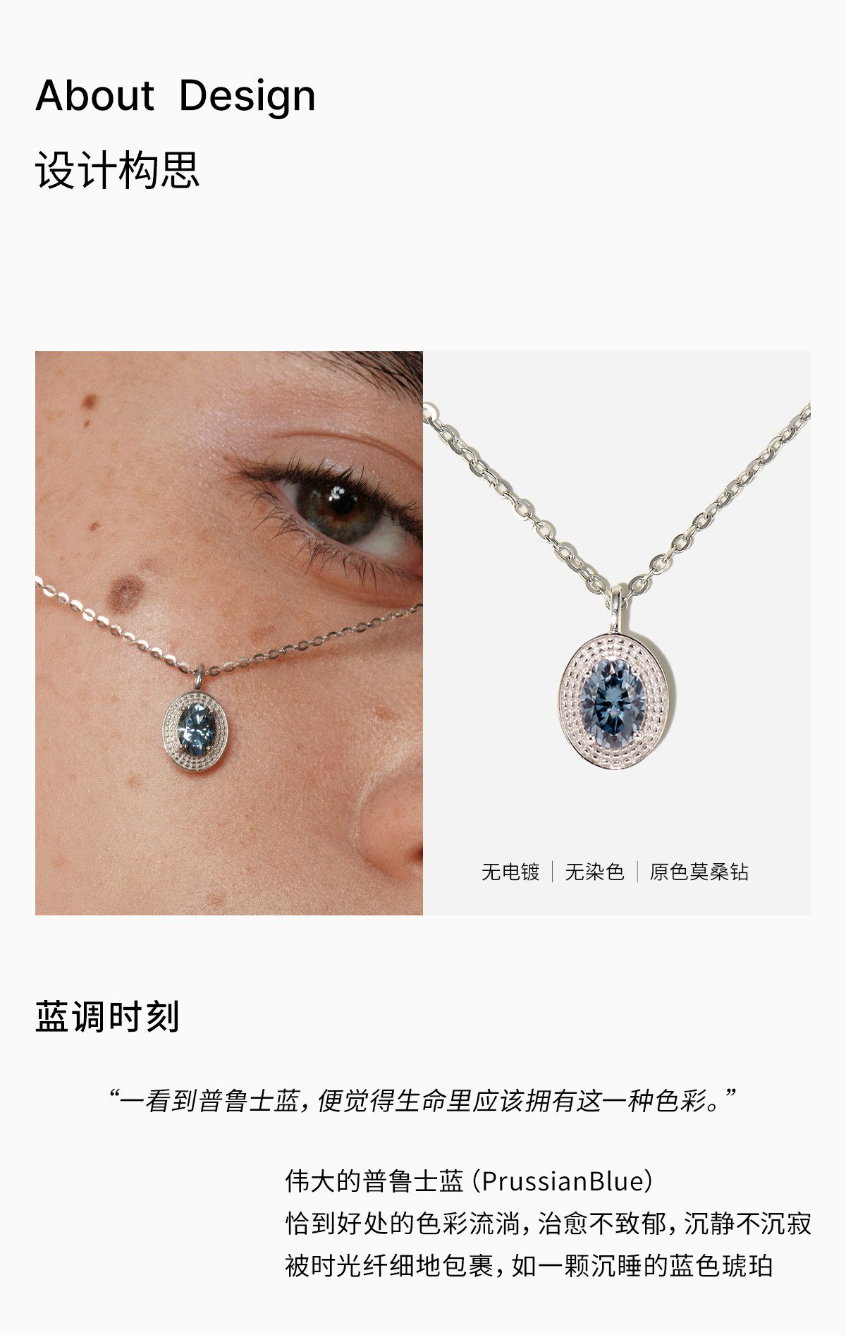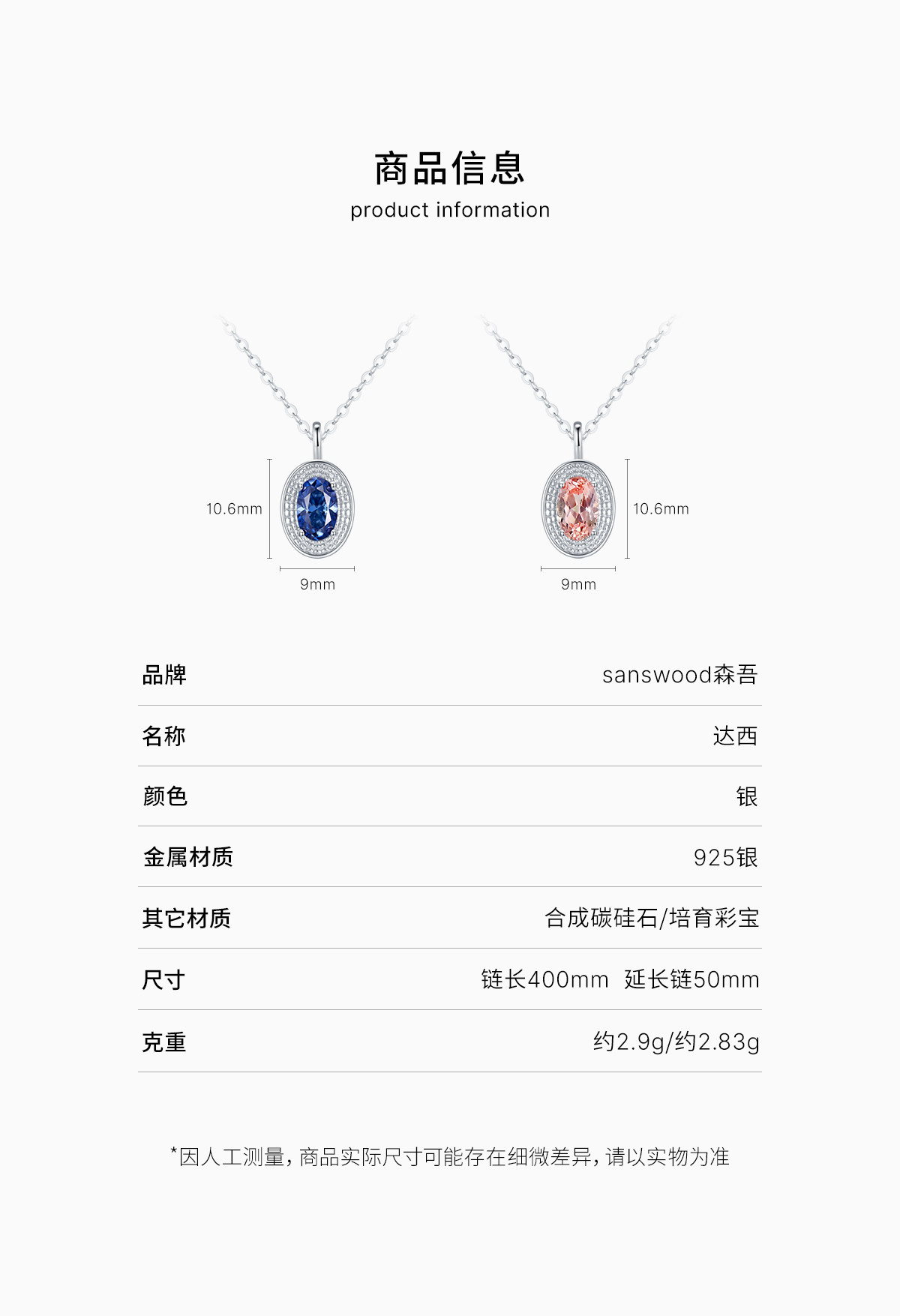 Sanswood Senwu's "Darcy" High-End Original Color Blue Moissanite Necklace for Women, Commuter Style, Elegant Clavicle Chain