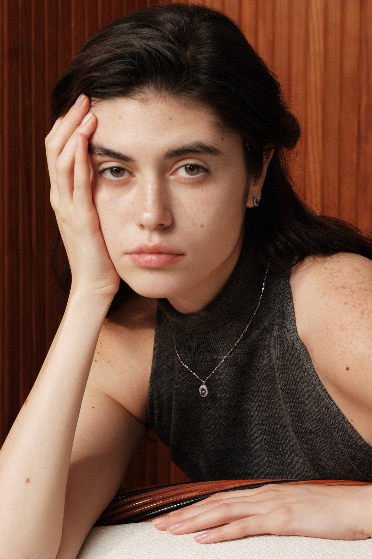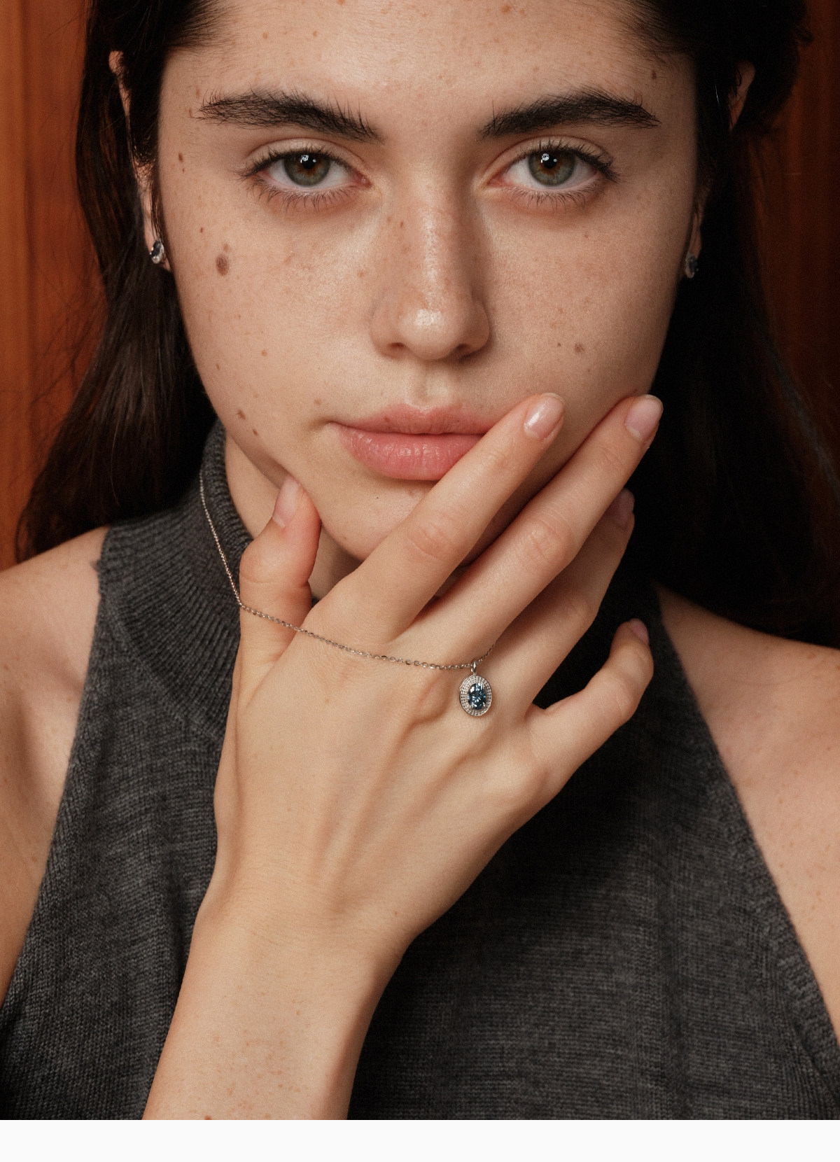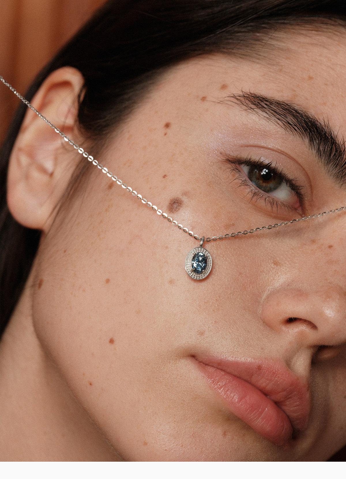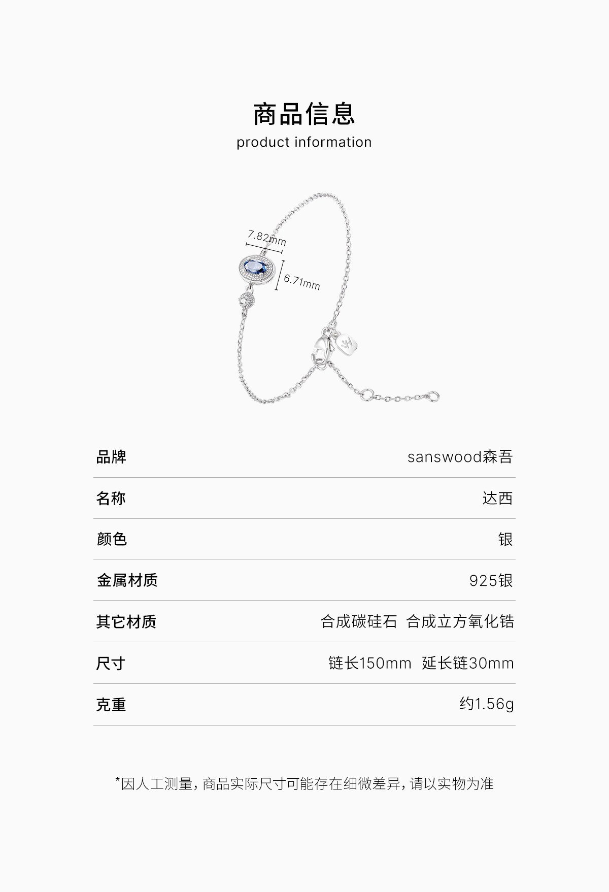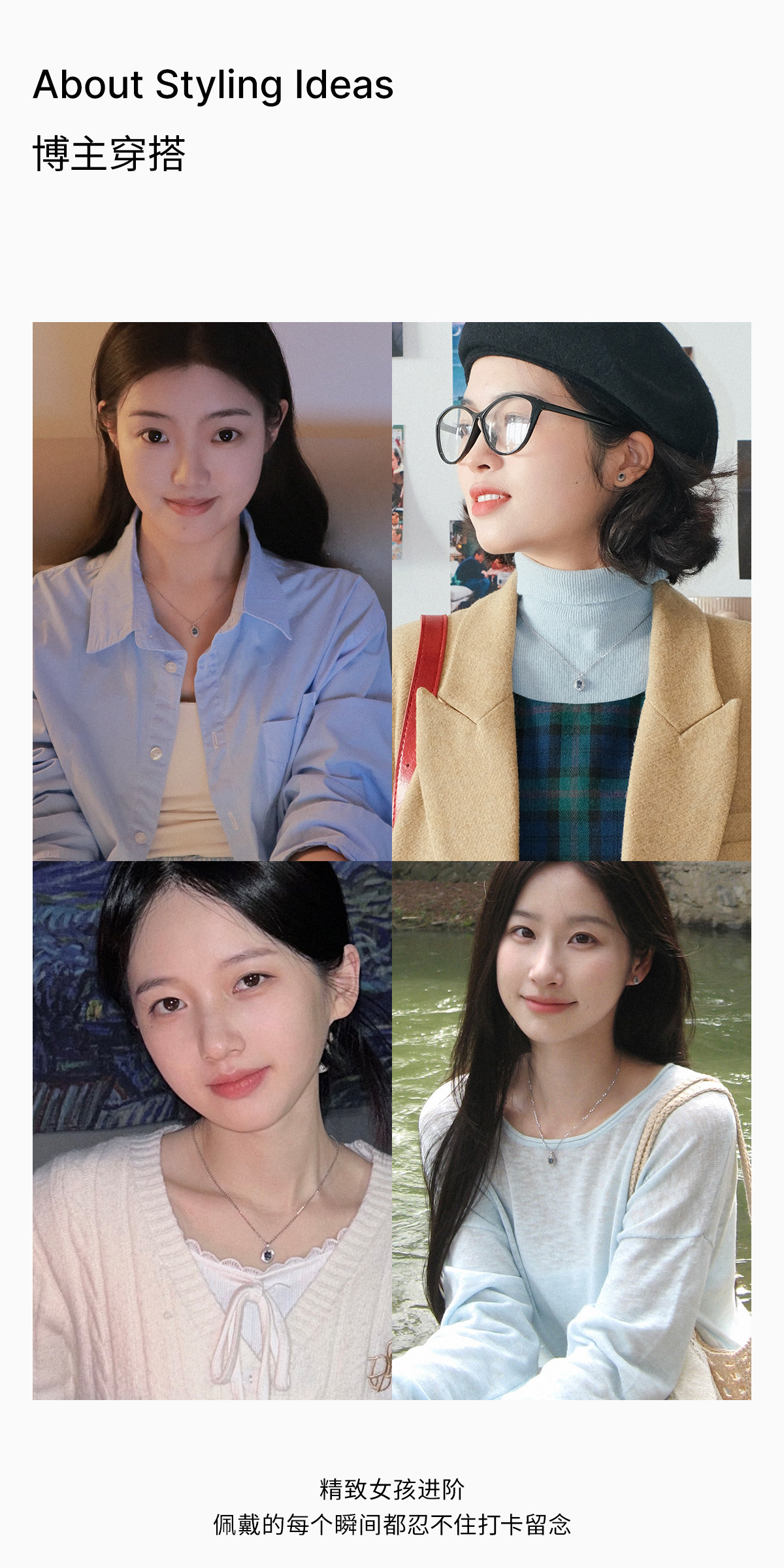 Sanswood Senwu's "Darcy" High-End Original Color Blue Moissanite Necklace for Women, Commuter Style, Elegant Clavicle Chain