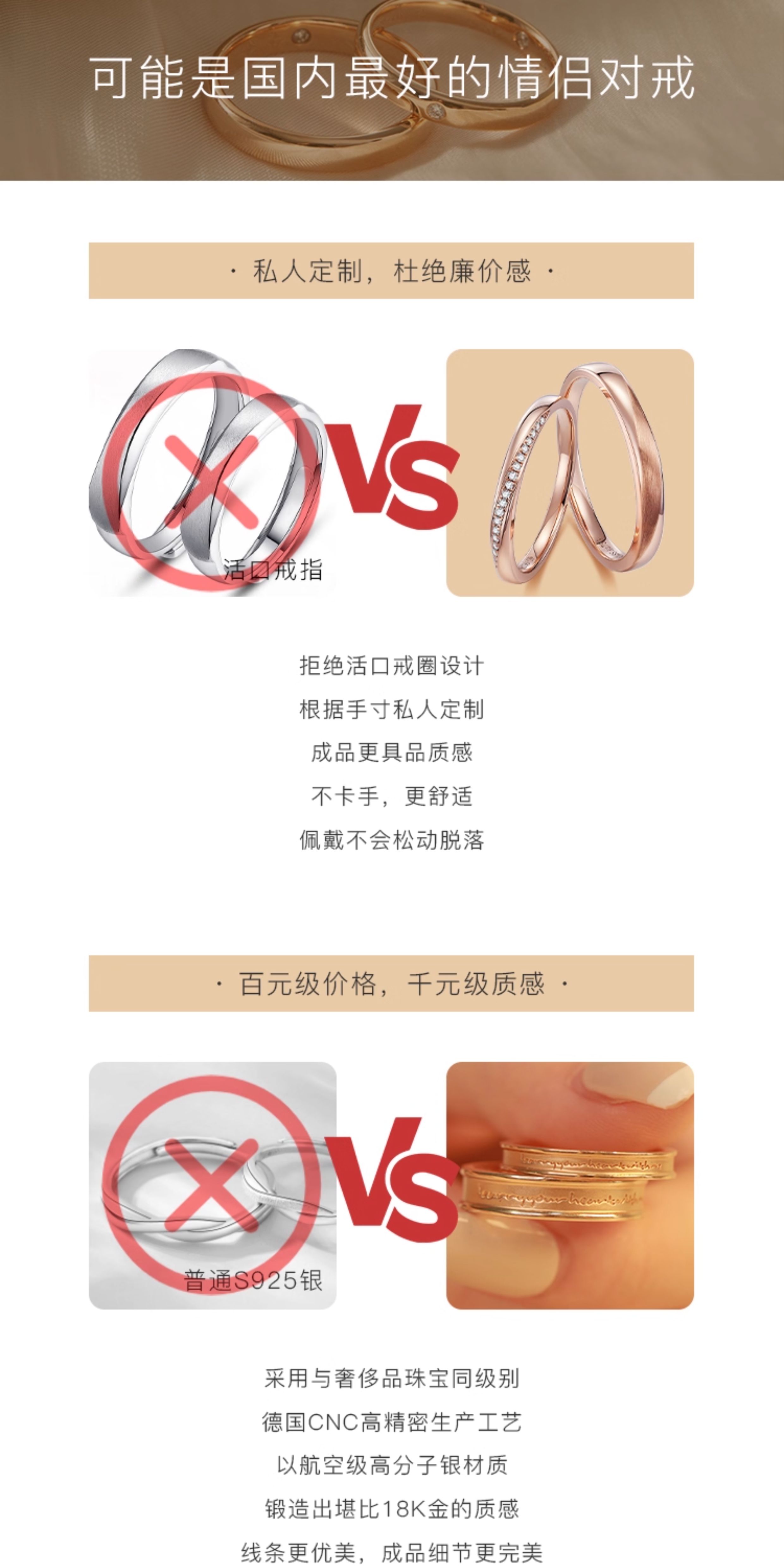 Oath [Hey] Casual Style Ring/Ring Cultivation Diamond 18K Gold Craft Couple Ring Wedding S925 Sterling Silver