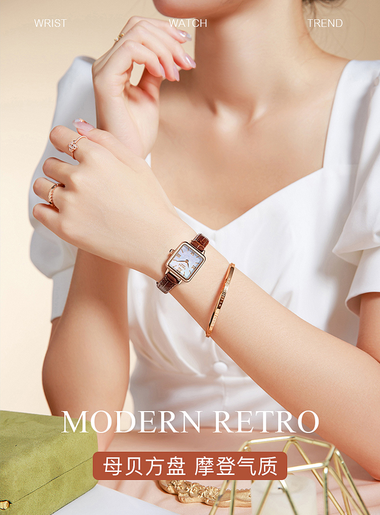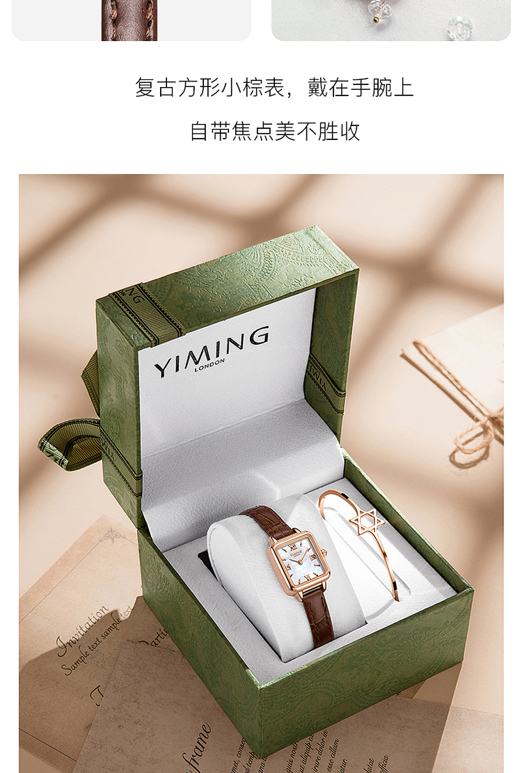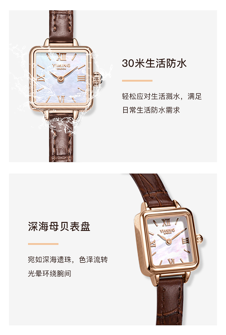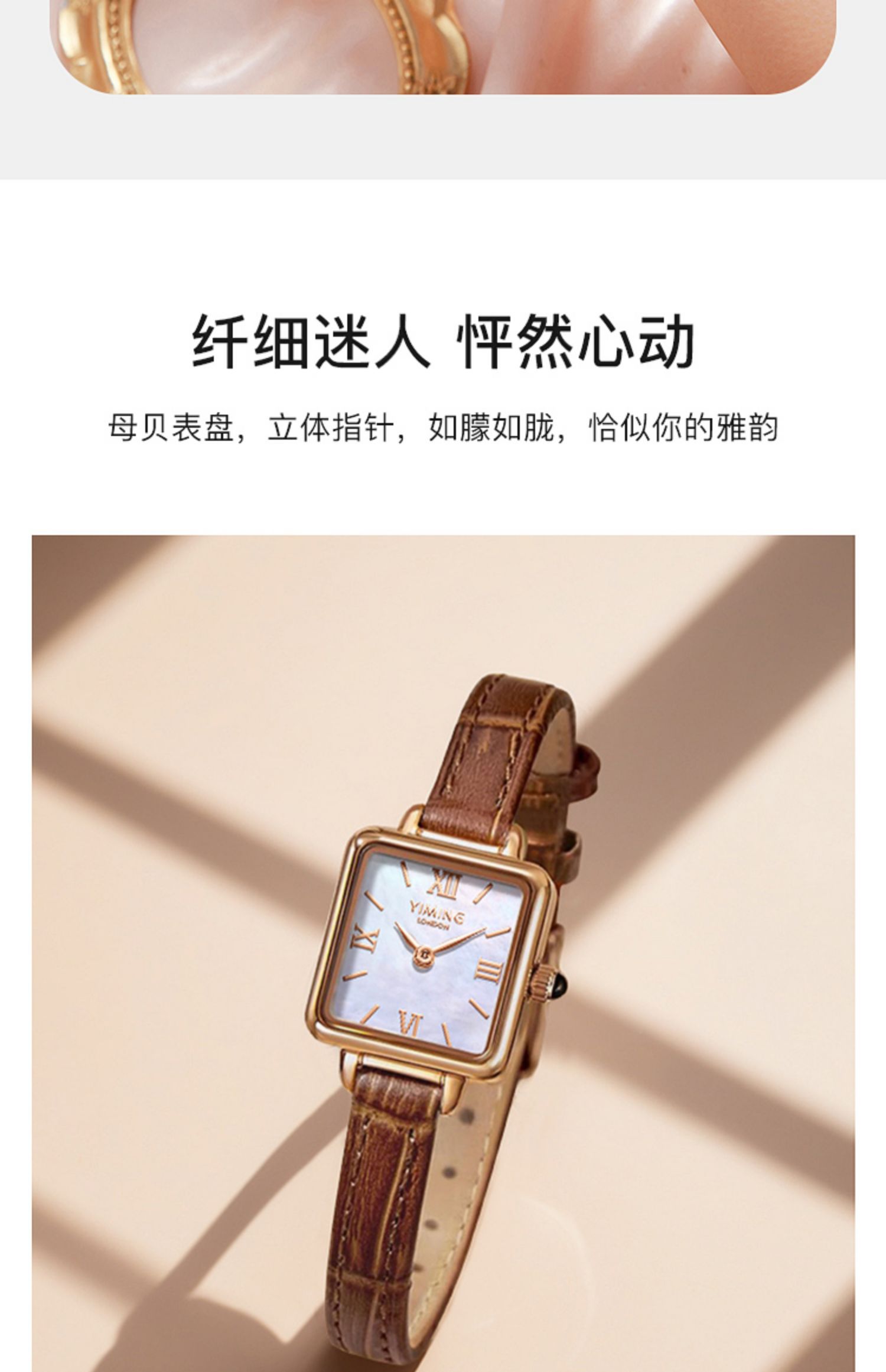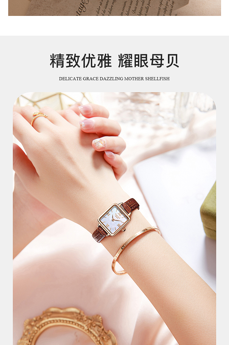 High-End Square Watch, Small Brown Watch for Female Students, Light Luxury Brand-Name Authentic Niche 2025 New Waterproof Women's Watch