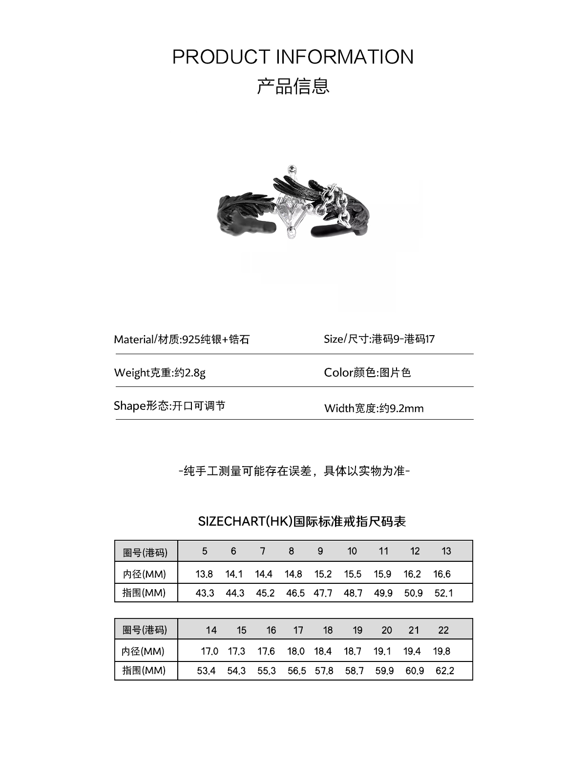 The Story of the Love between a White Dove and a Crow, Original 925 Sterling Silver Ring with Feather Wings, High-End Minimalist Couple Rings