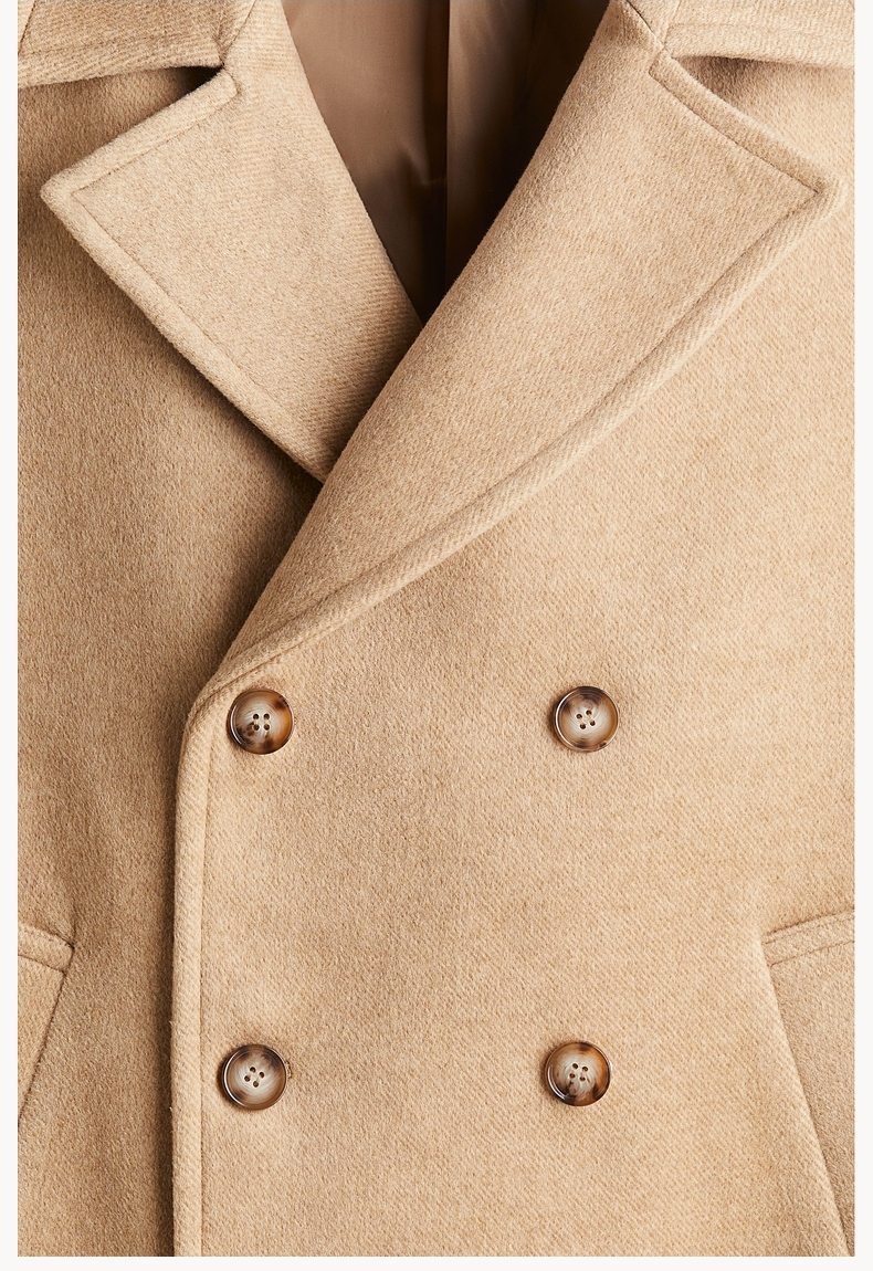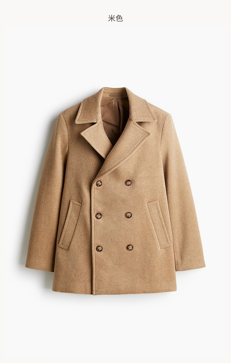 Hm Men's Woolen Coat Winter Standard Fit Lapel Warm Navy Jacket 1245629