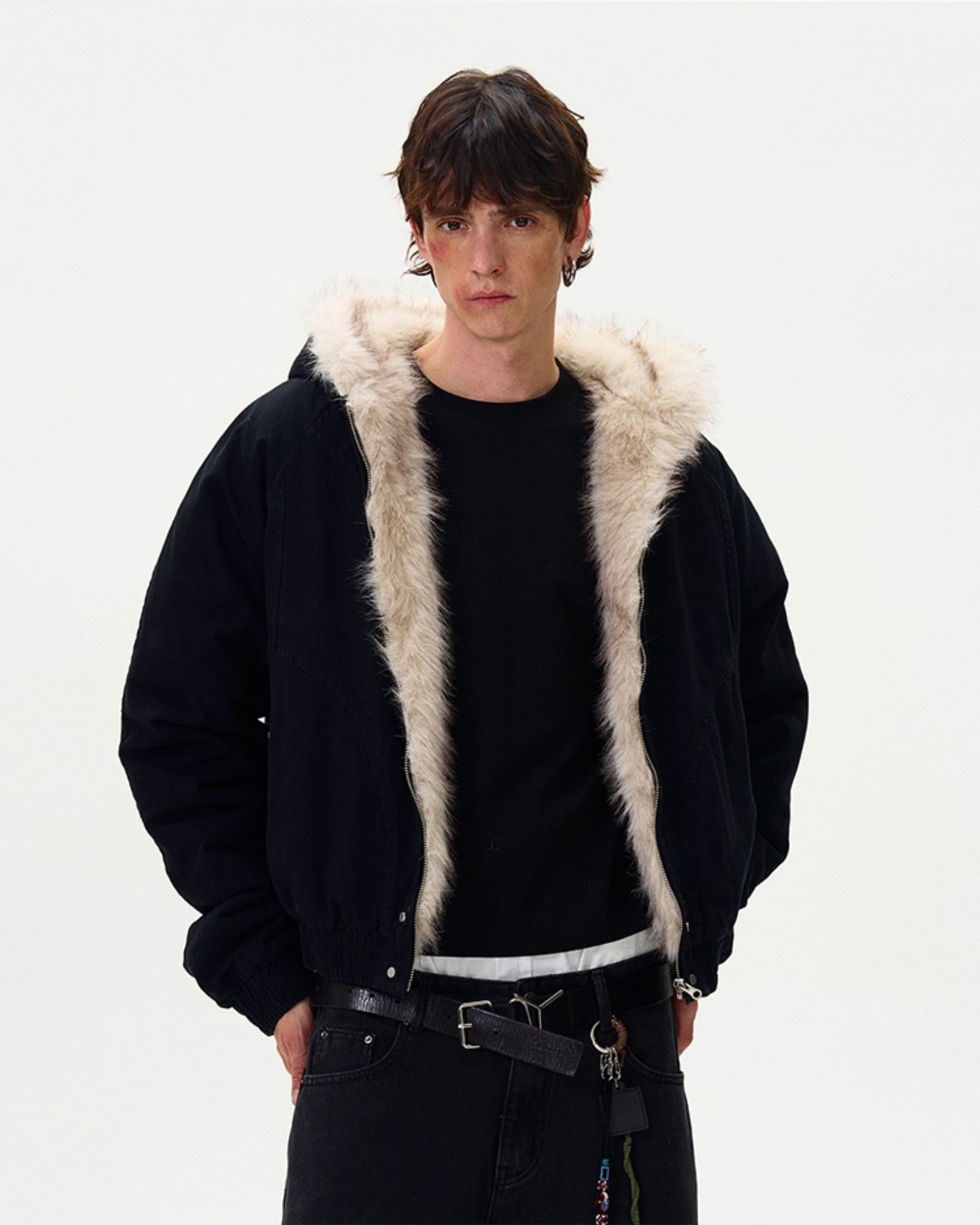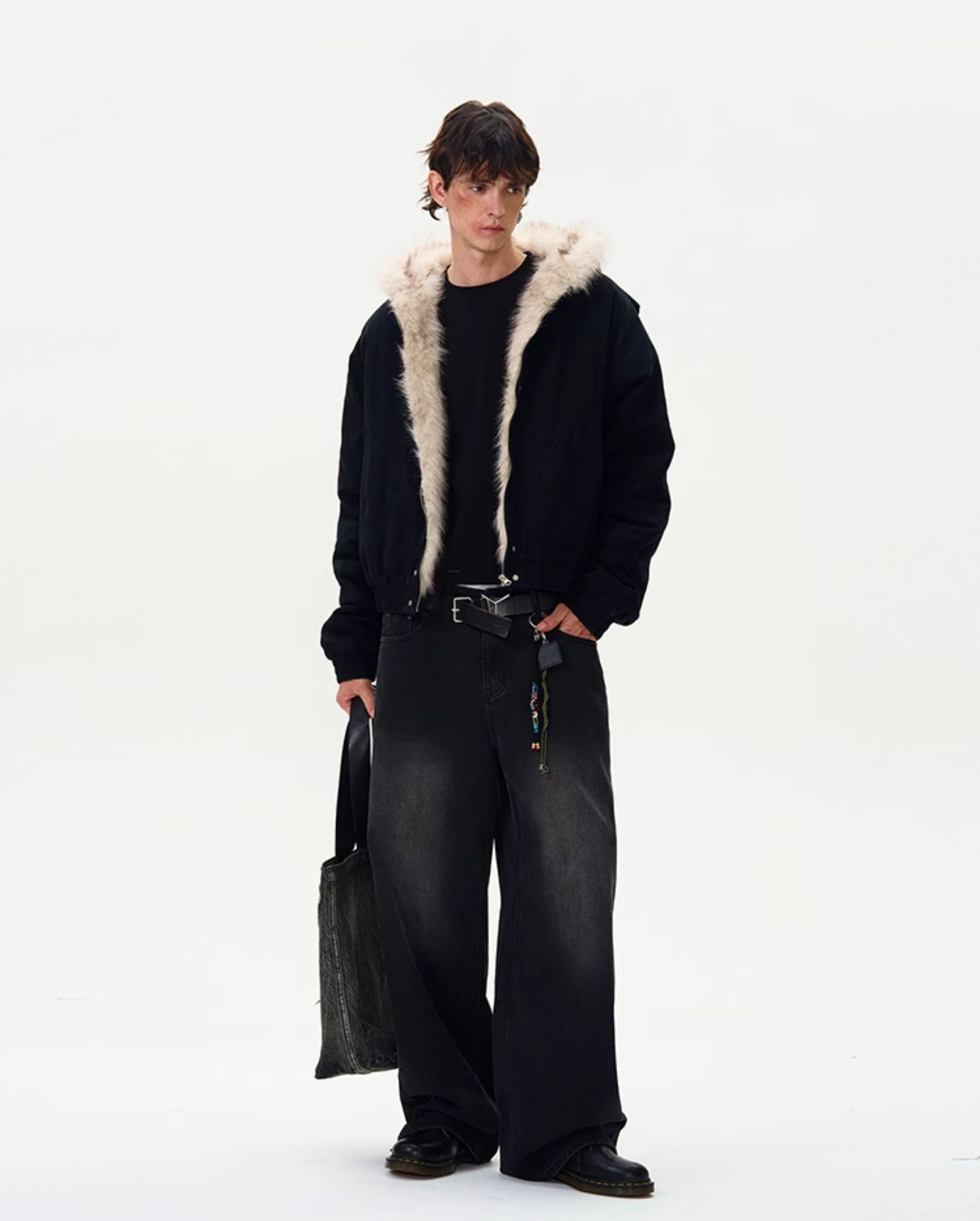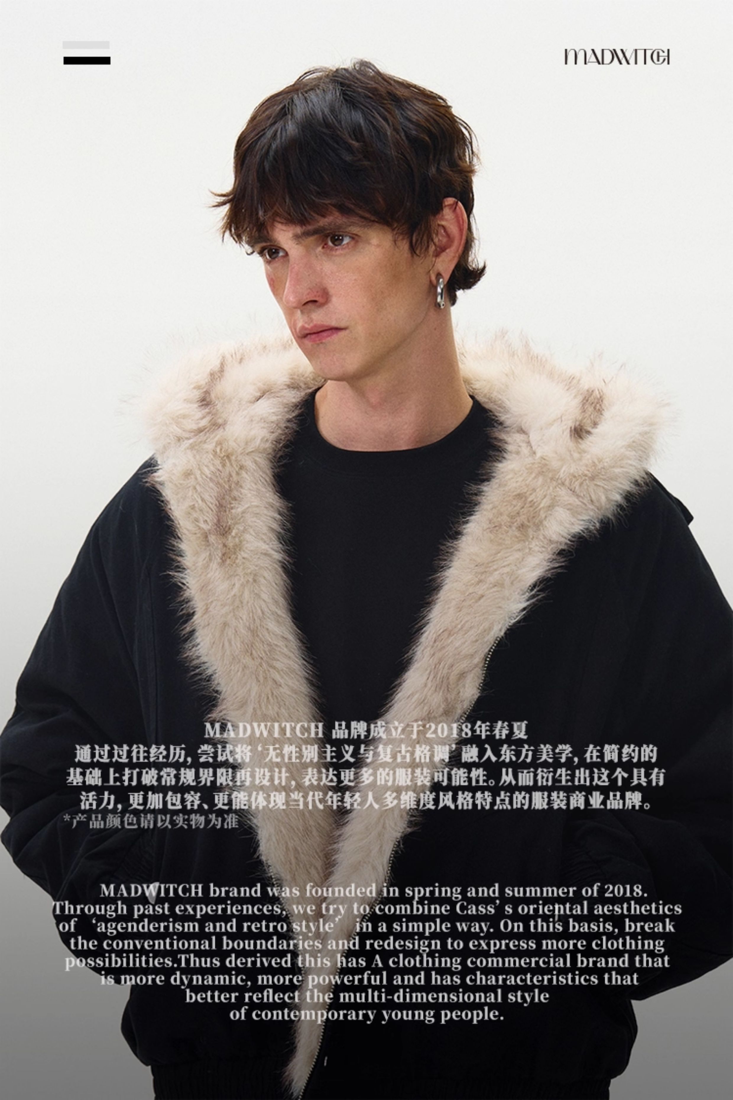 Madwitch American Retro Deconstructed Patchwork Design Fleece-Lined Jacket for Men and Women, Loose Casual Jacket with Mountain Carving Design, Trendy