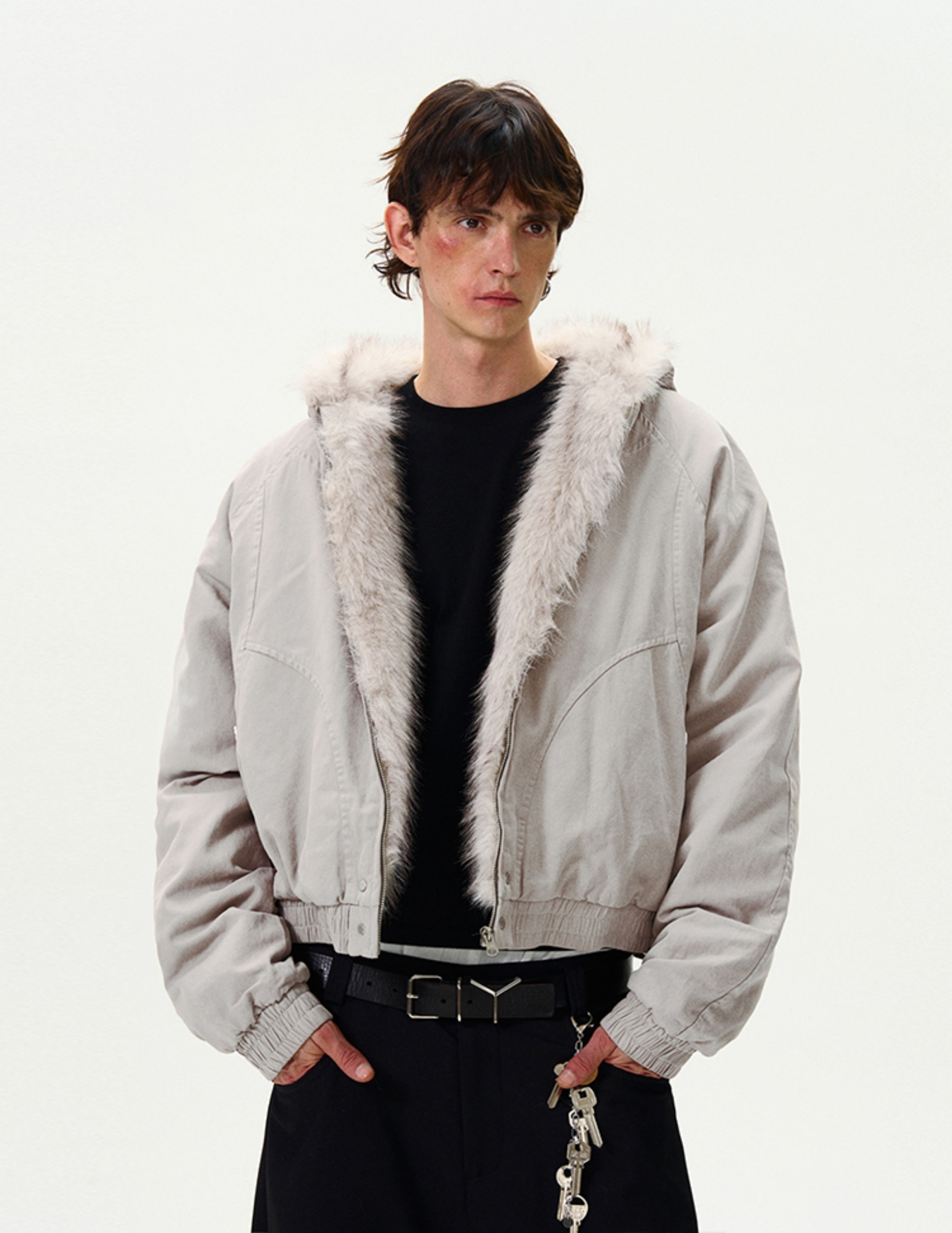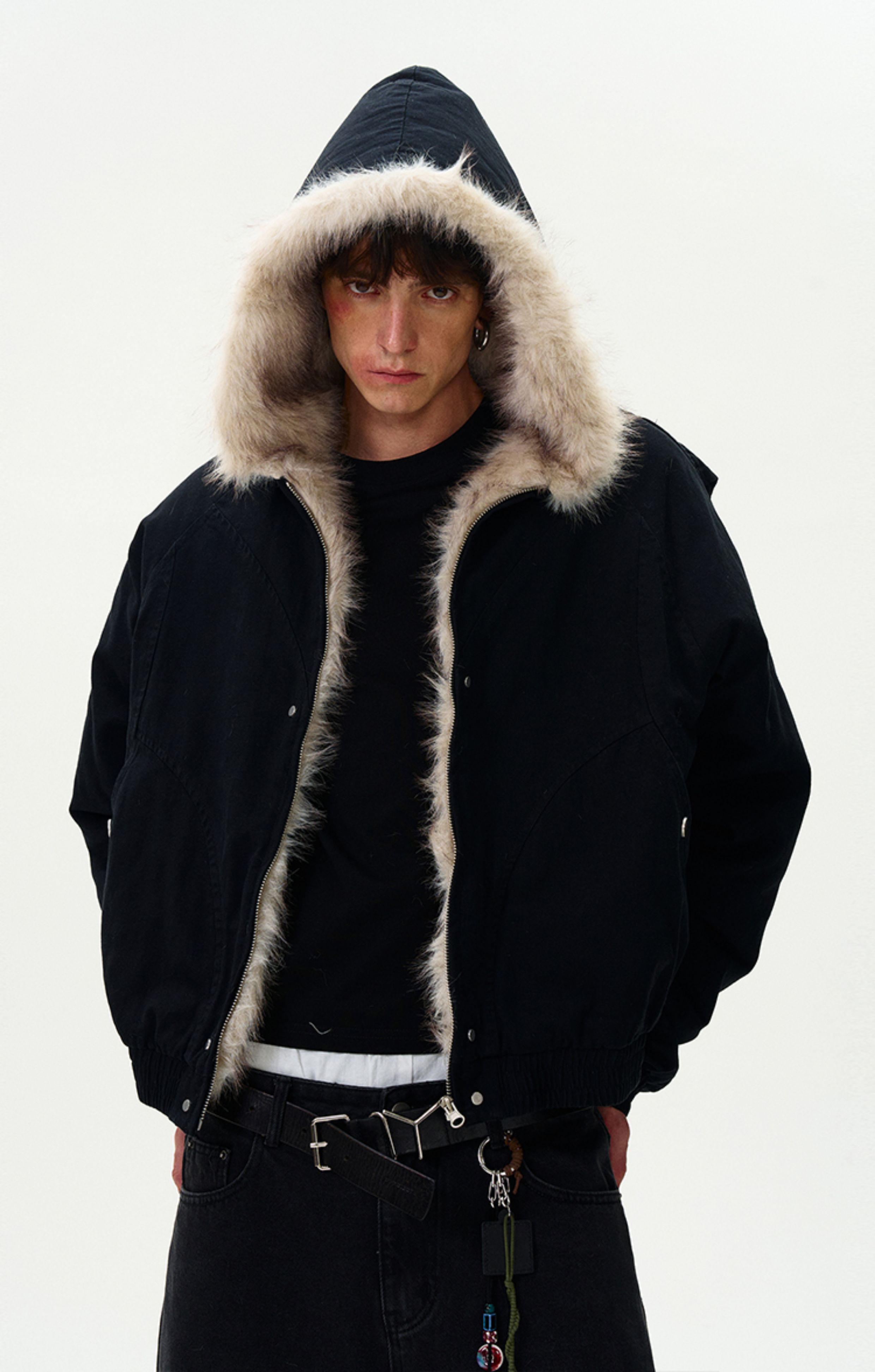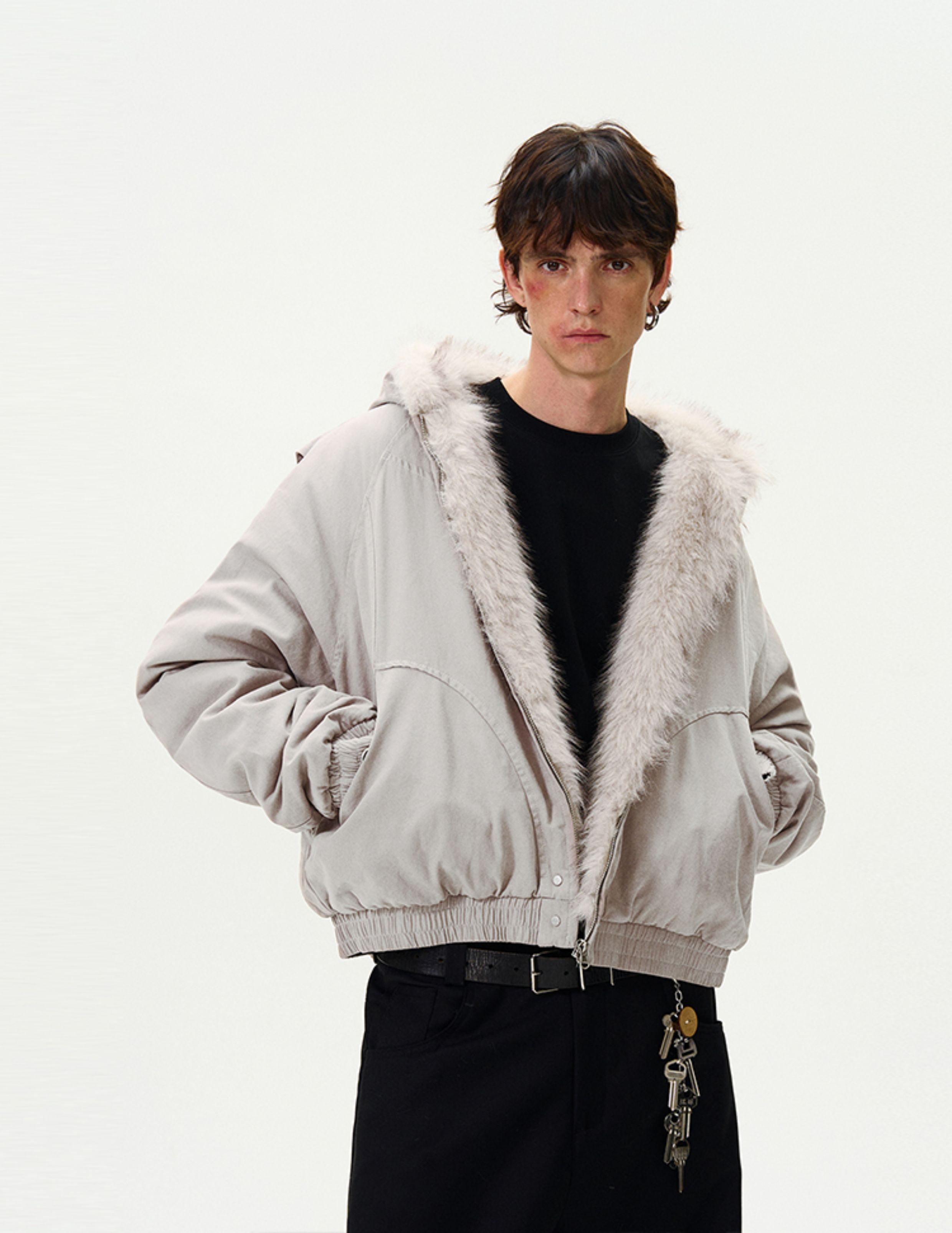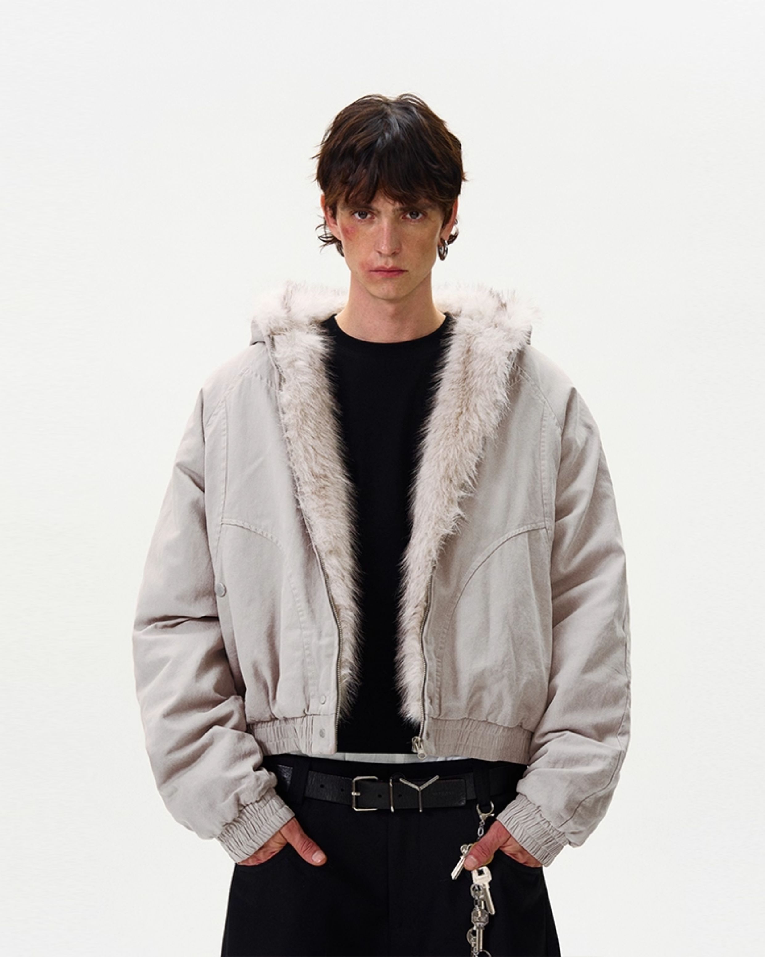 Madwitch American Retro Deconstructed Patchwork Design Fleece-Lined Jacket for Men and Women, Loose Casual Jacket with Mountain Carving Design, Trendy