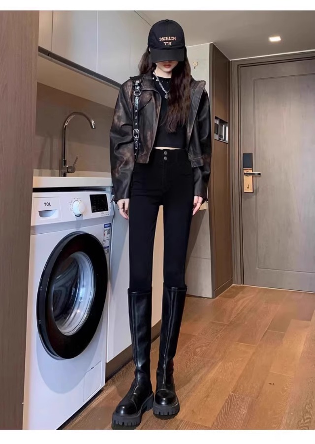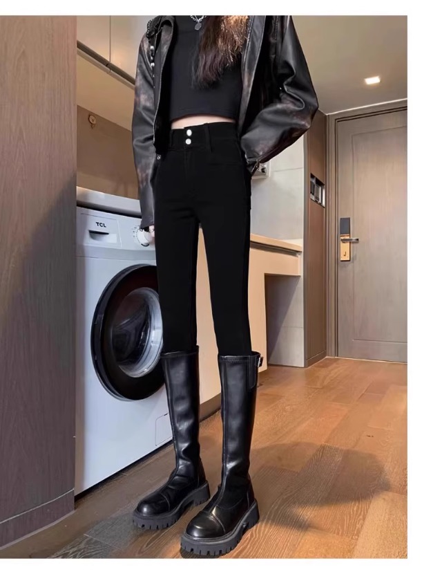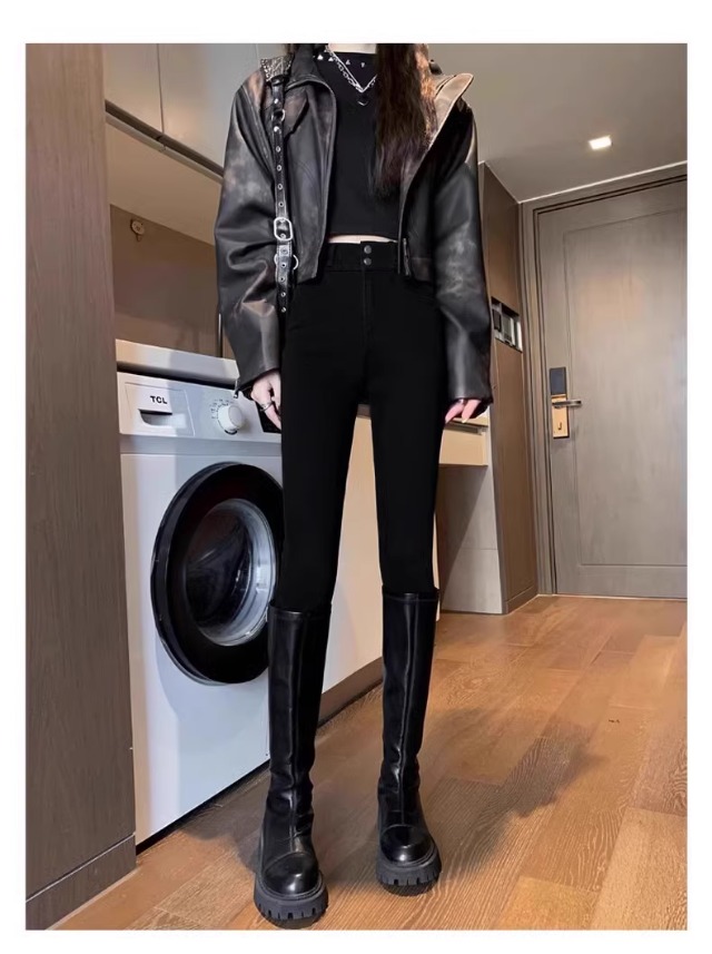 Brand Counters Withdraw Discounts on Authentic Women's Leggings for Foreign Trade Malls, Black Slim-Fit Fleece-Lined Leggings for Outerwear