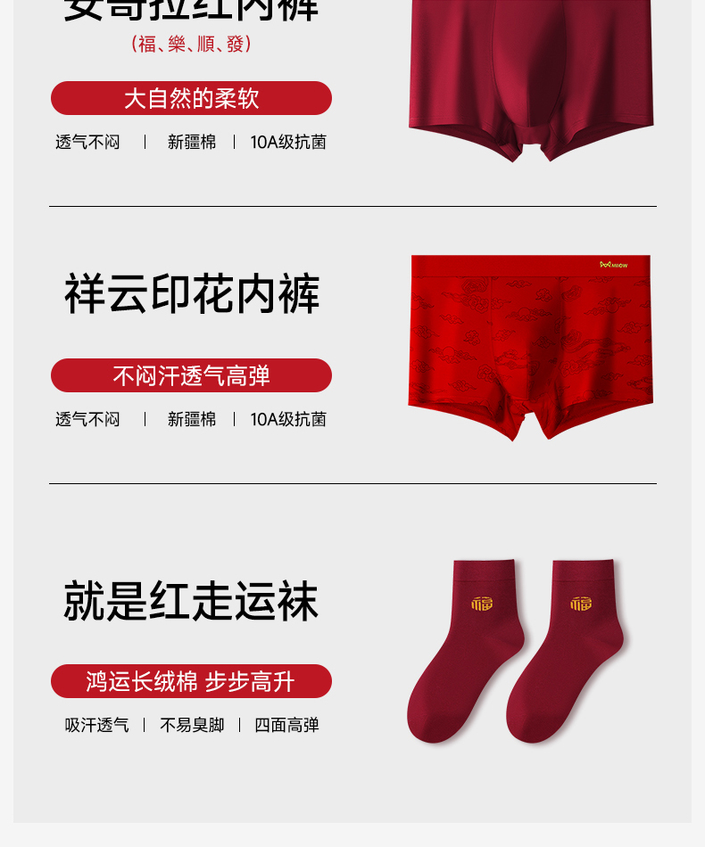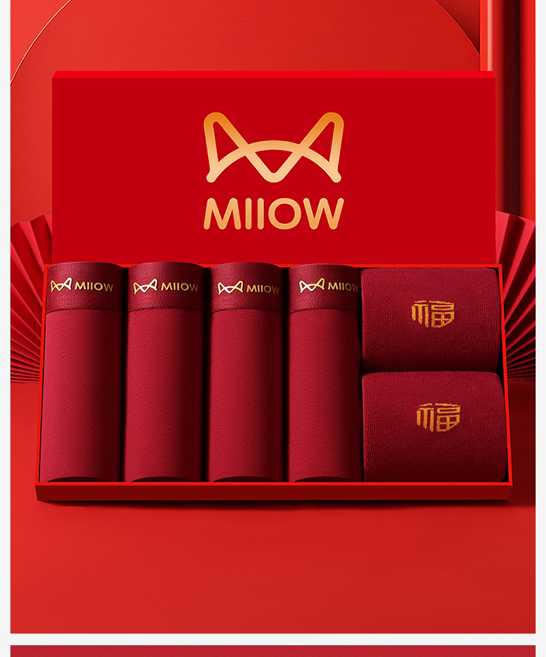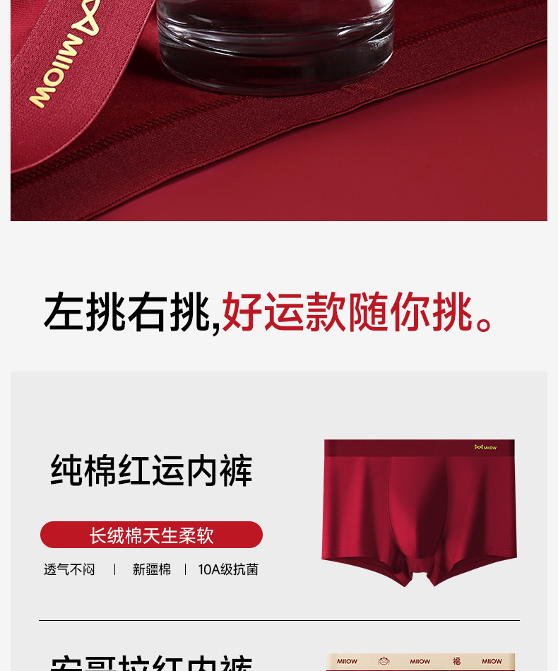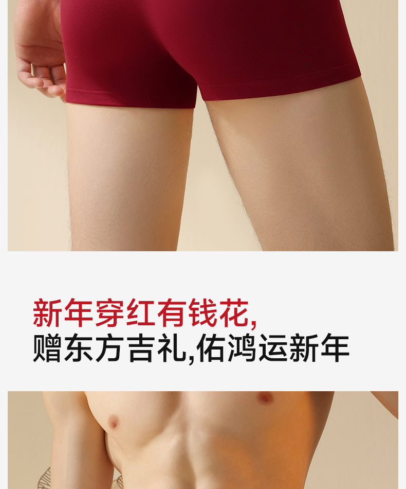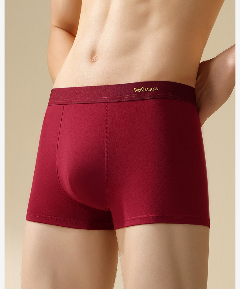 Cat-Themed Men's Underwear for Their Zodiac Year, Pure Cotton, Bright Red Boxer Shorts, 2025 New Antibacterial Wedding Burgundy Briefs