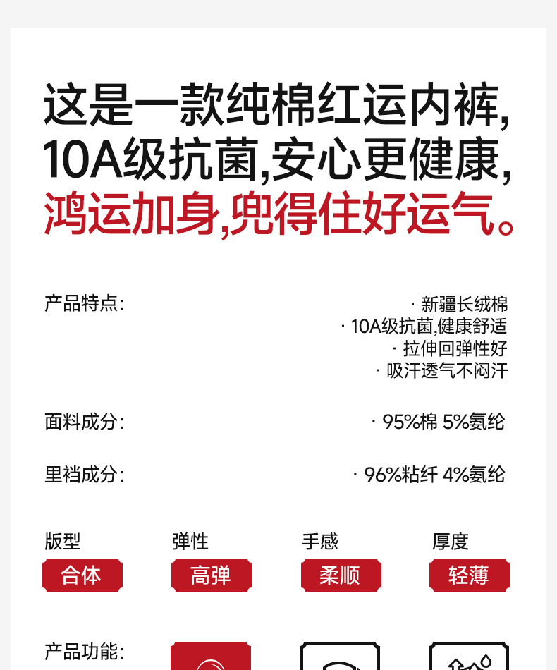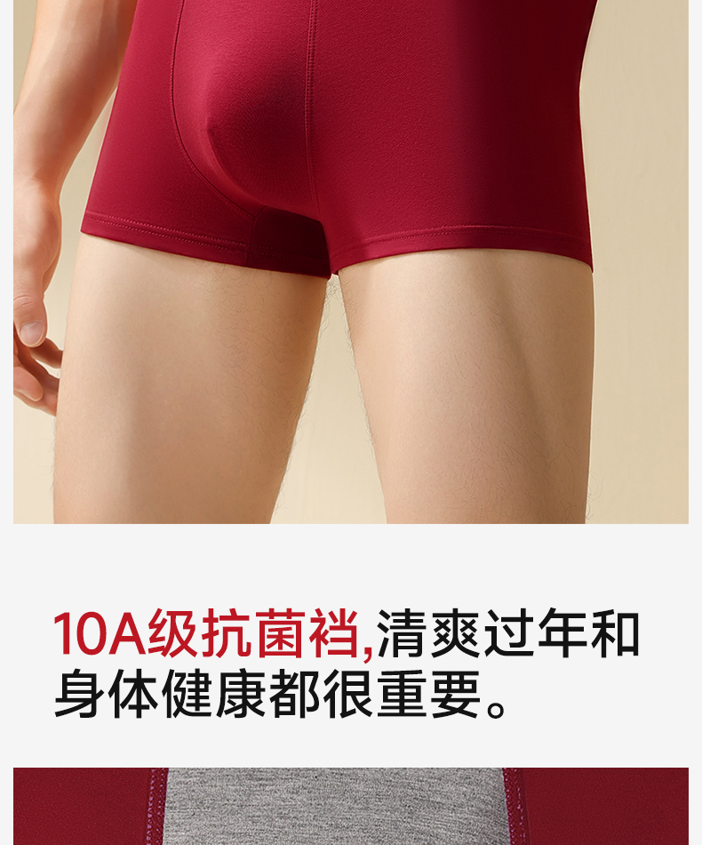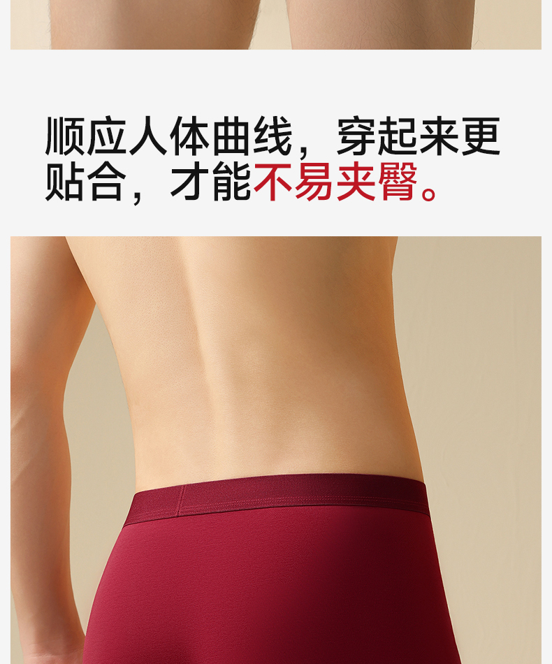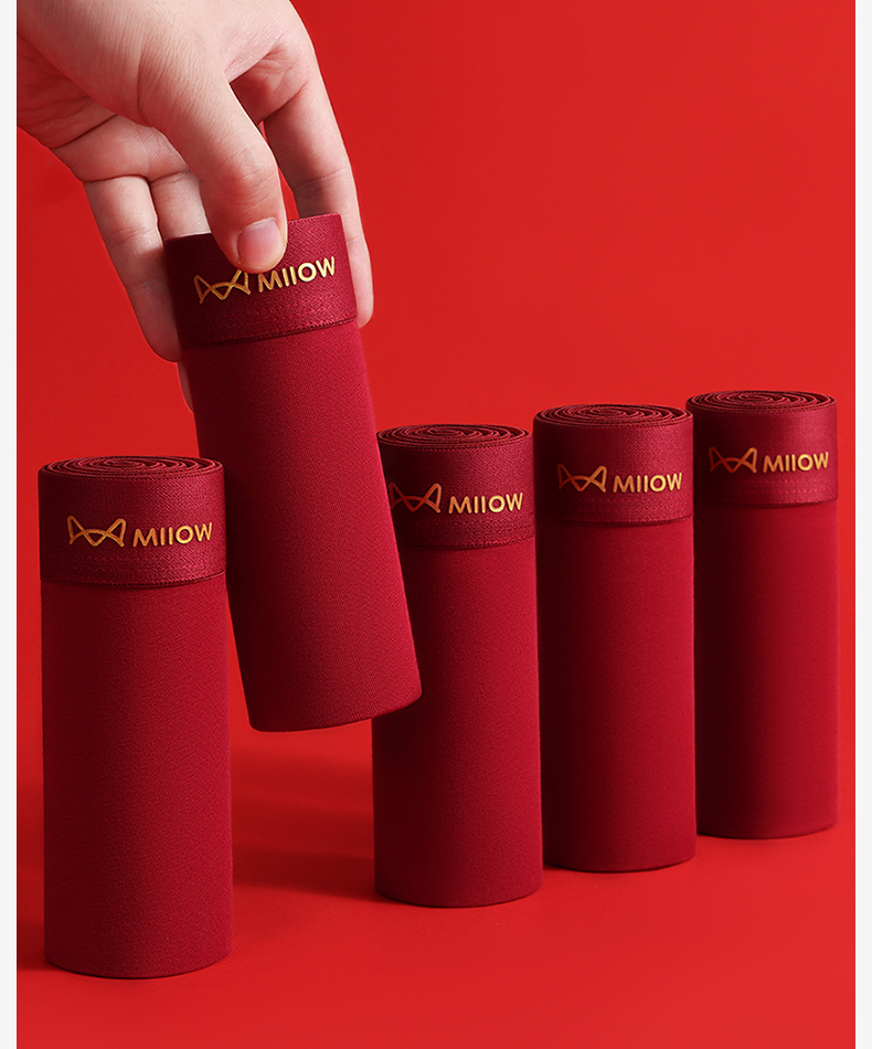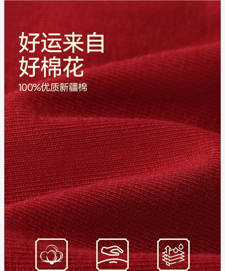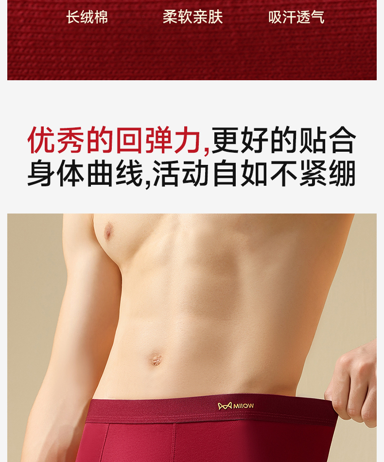 Cat-Themed Men's Underwear for Their Zodiac Year, Pure Cotton, Bright Red Boxer Shorts, 2025 New Antibacterial Wedding Burgundy Briefs