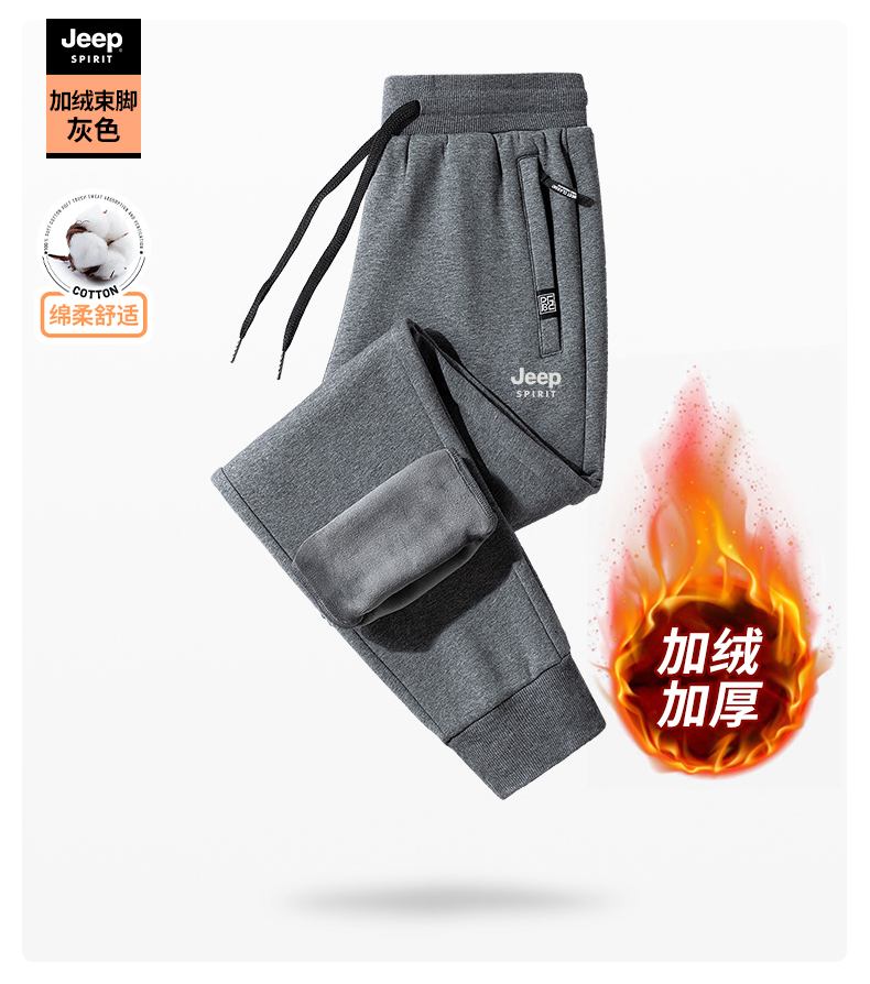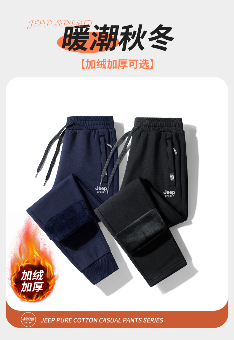 Jeep Autumn and Winter Sports Pants for Men, New Men's Casual Pants, Fleece-Lined, Thickened, Loose, Large Size Pants, Men's Clothing, Men's Pants