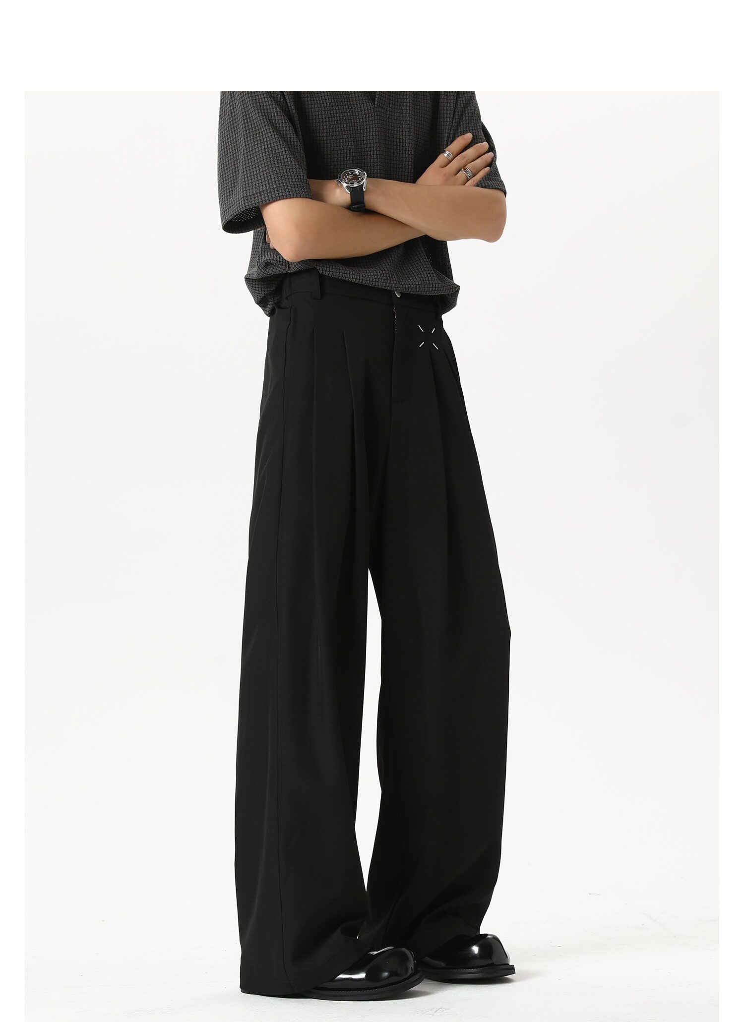 Korean-Style High-End Cleanfit Black Men's Dress Pants, Wrinkle-Free, Wide-Leg, Loose, Casual, Straight-Leg Suit Trousers