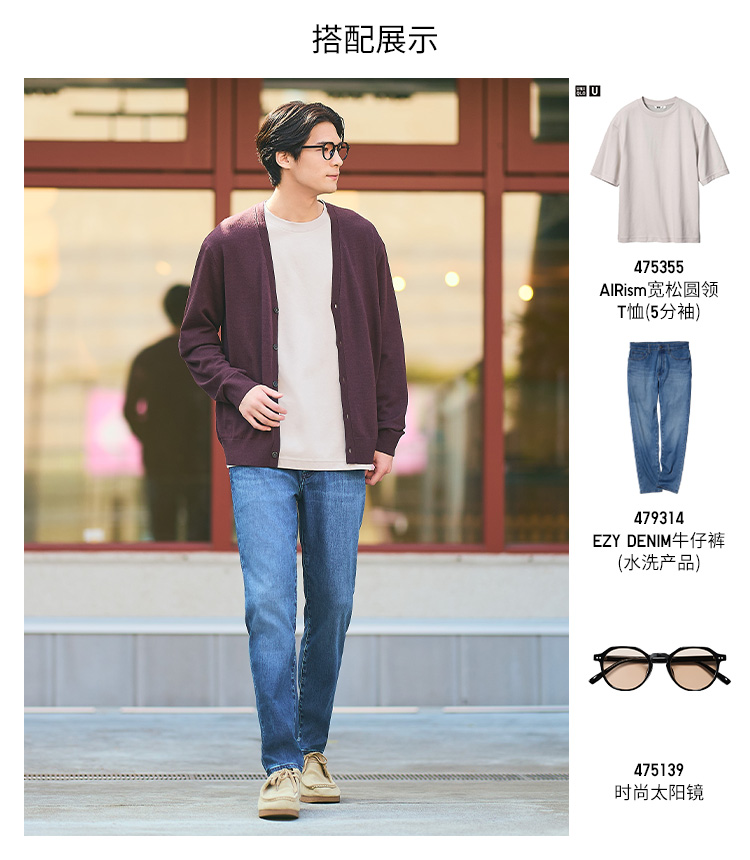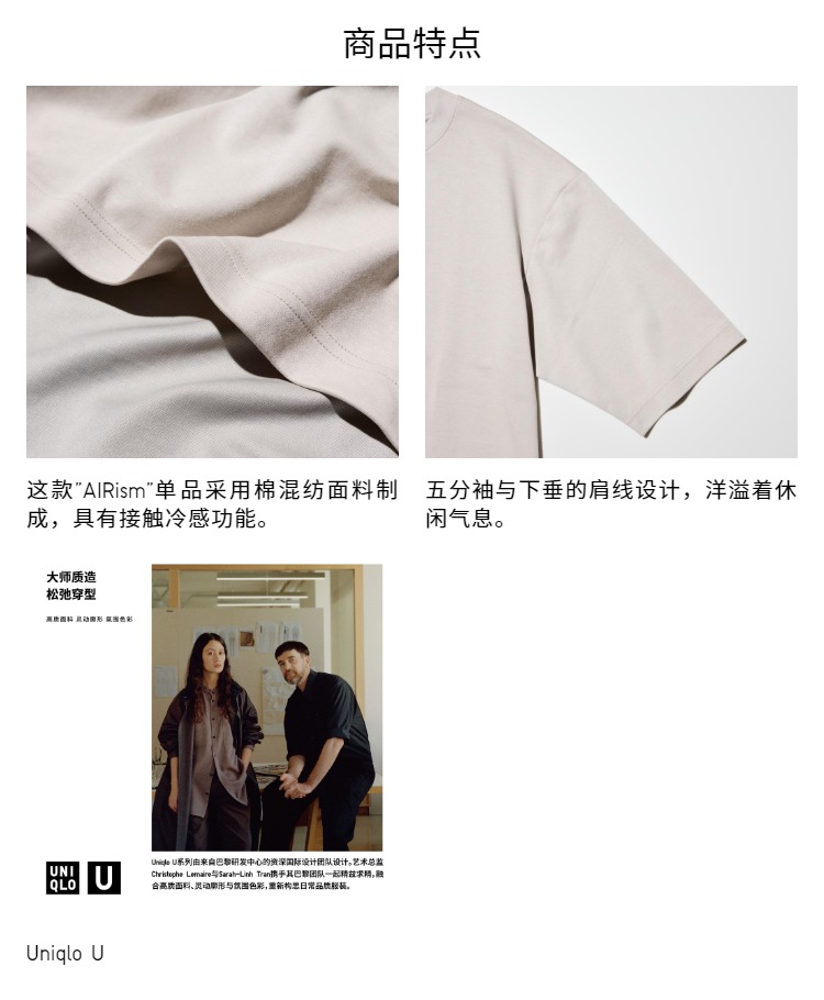 Uniqlo Men's and Women's Master t Airism Loose Round Neck T-Shirt Five-Quarter Sleeve Short Sleeve 475355 465185