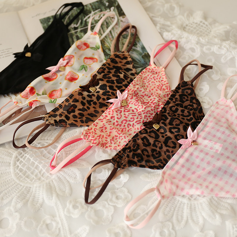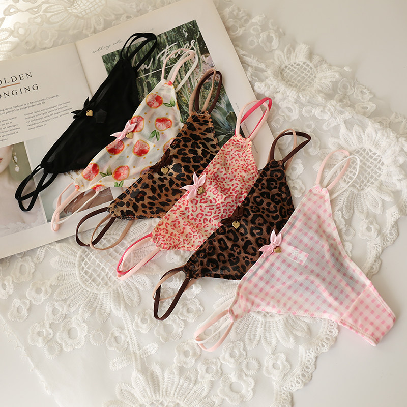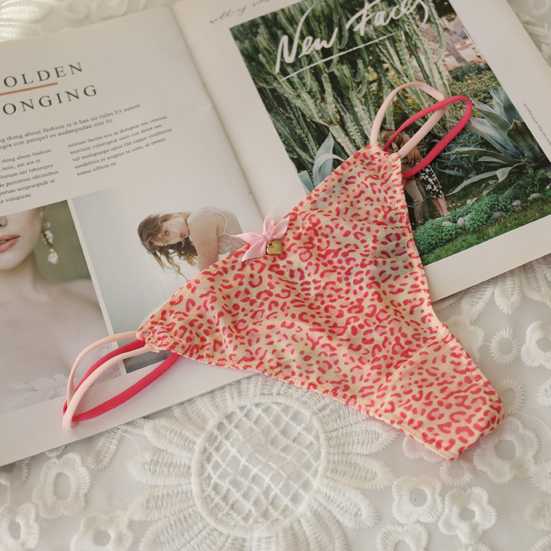 4 Sizes Leopard Print 428 Mesh Thong T-Back Sexy Transparent Cute Japanese Lace Girl Panties Low Waist