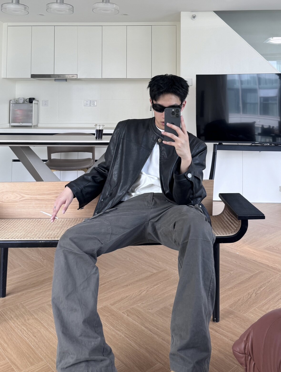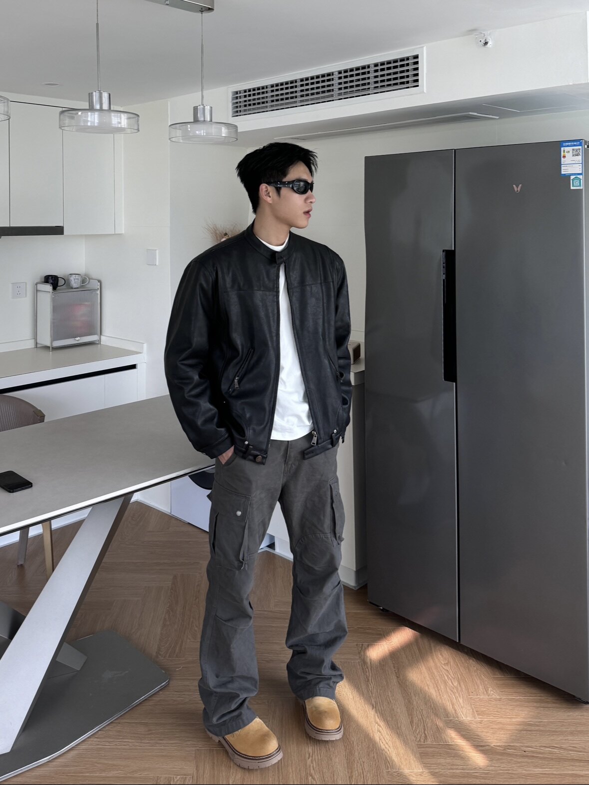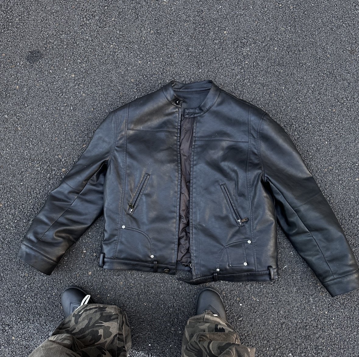 Super Stylish [Private Wear] American-Style Matte Leather Jacket Versatile Biker Jacket Protein Leather Padded Shoulder Jacket