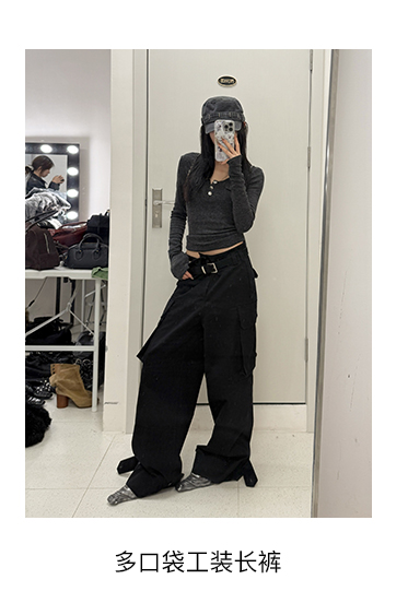 Sunoneone Retro Patchwork Solid Color Top for Women, Autumn Versatile Pocket Design, Exquisite Slim Fit Long-Sleeve Slimming Knit Sweater
