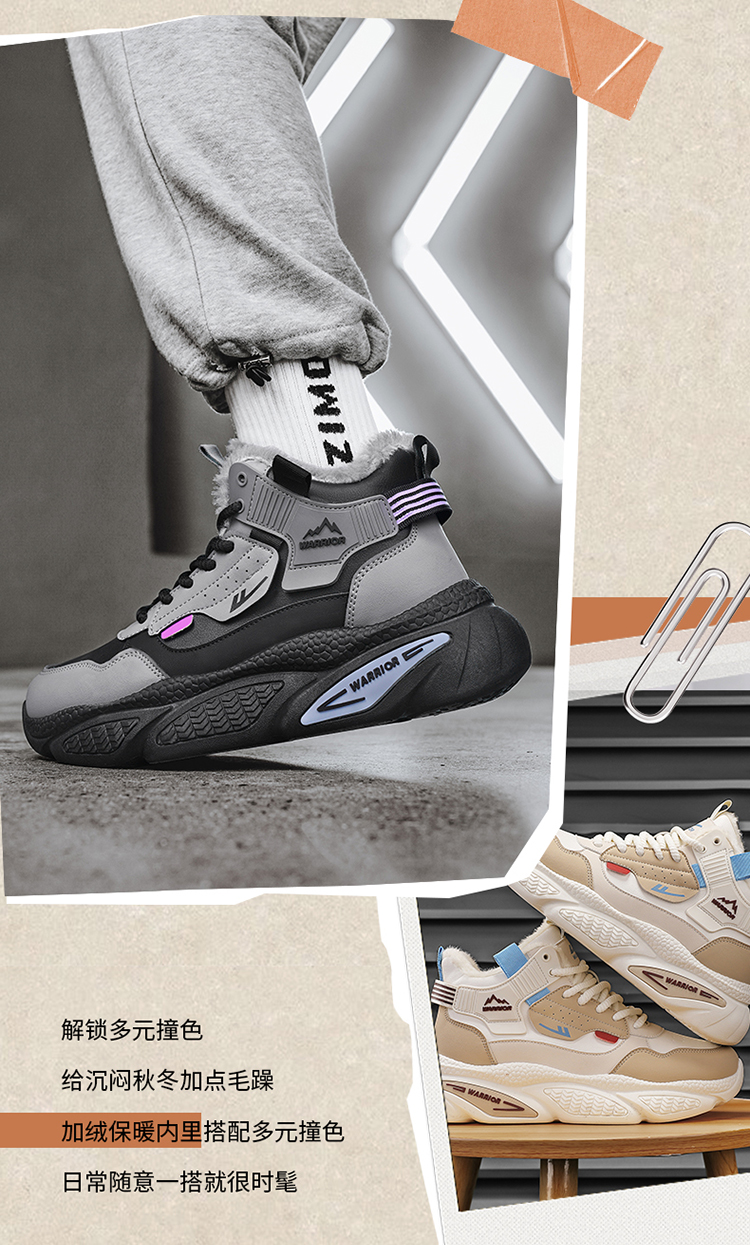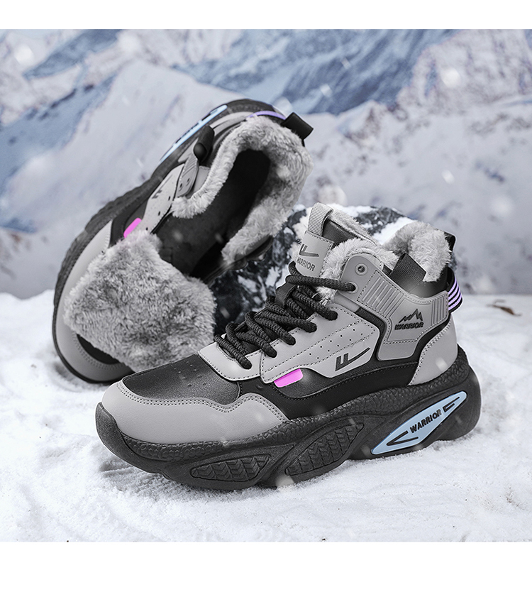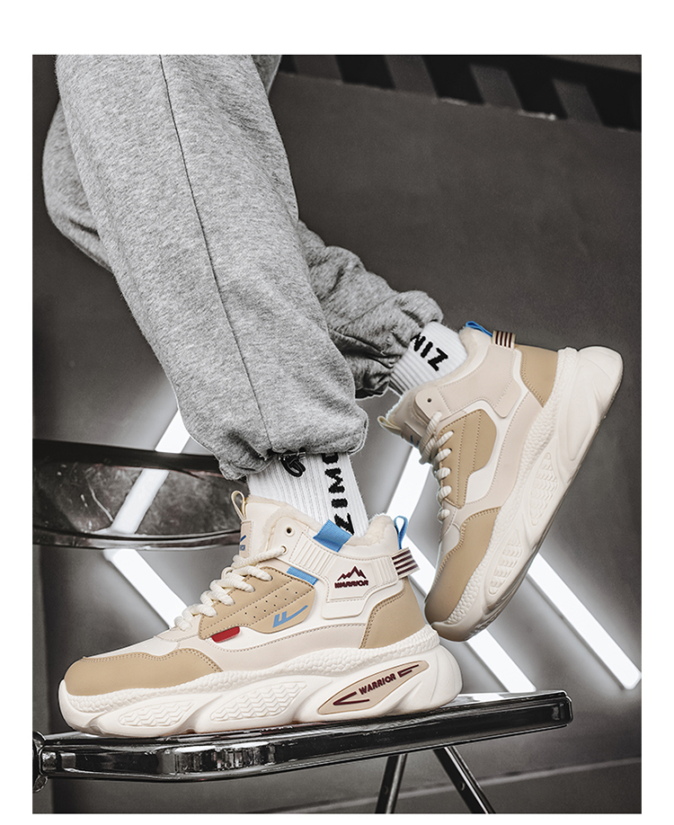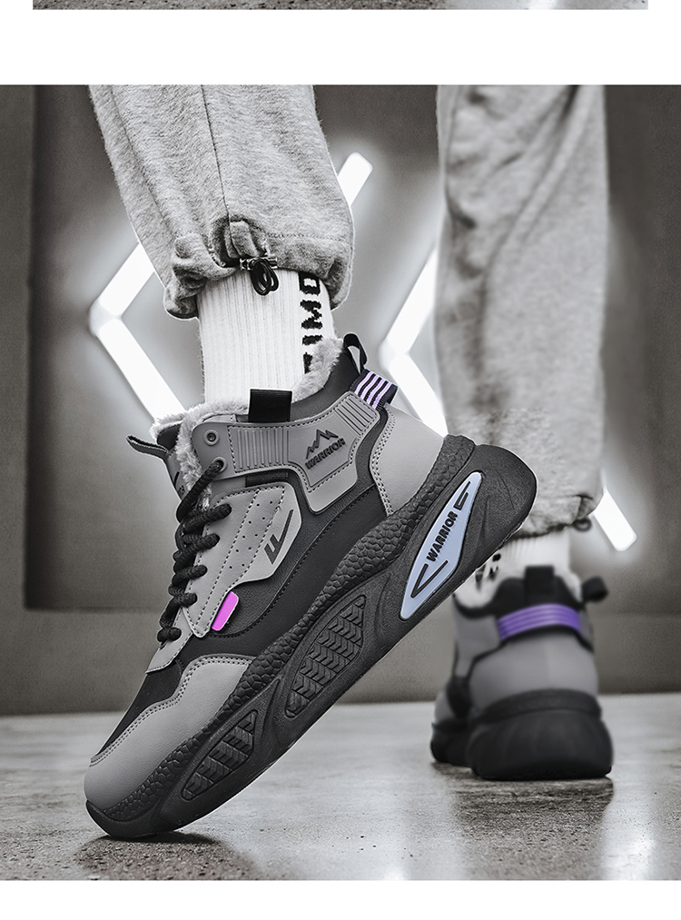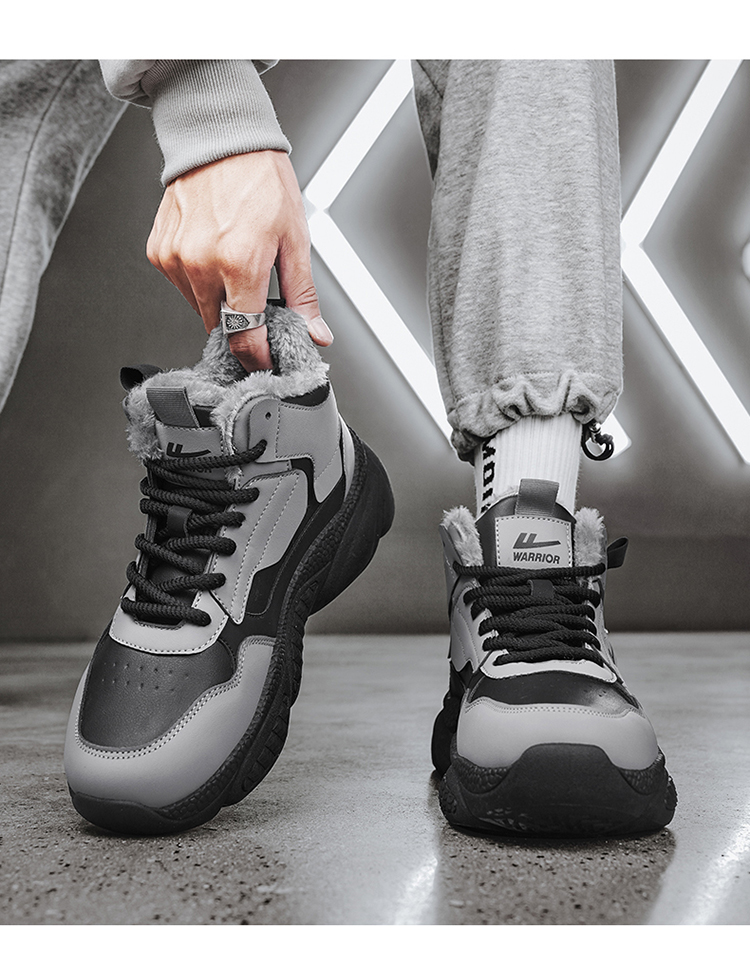 Pull-Back Black Warrior Men's Shoes, Winter High-Top Fleece-Lined Warm Cotton Shoes, Youth Thickened Snow Boots, Dad Shoes for Men