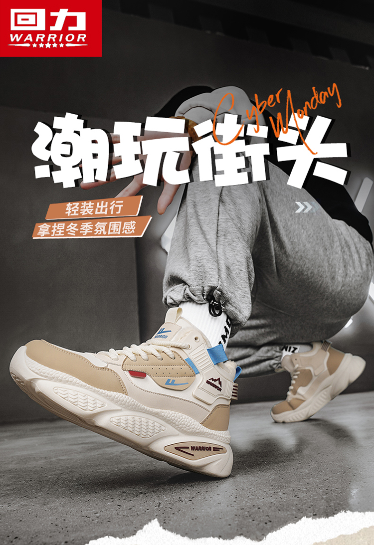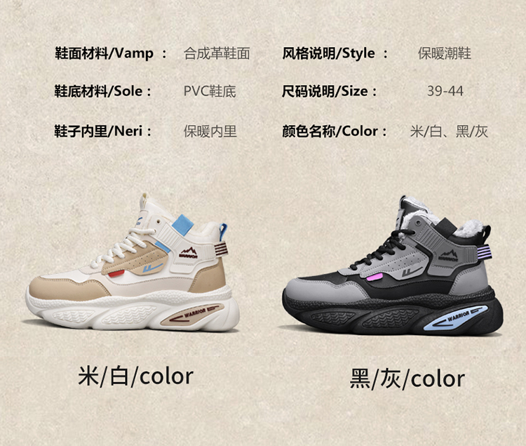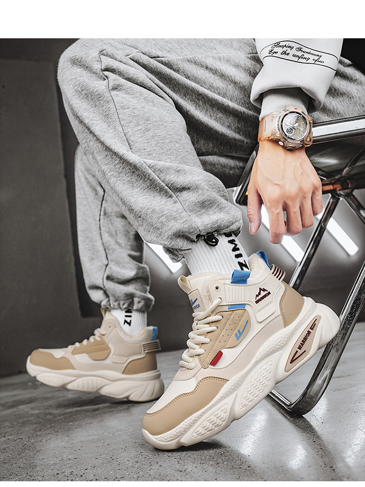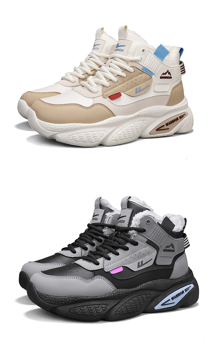 Pull-Back Black Warrior Men's Shoes, Winter High-Top Fleece-Lined Warm Cotton Shoes, Youth Thickened Snow Boots, Dad Shoes for Men