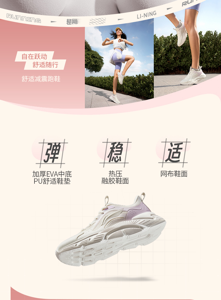 Li Ning Qingyang | Running Shoes for Women, Lightweight Fitness, Skipping Rope, Thick Sole, Shock-Absorbing, Easy Walking, Breathable Sports Shoes