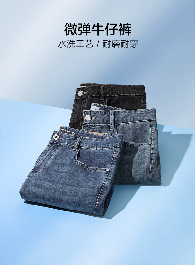 Hla/Hailan Home Micro-Stretch Casual Straight-Leg Black Jeans Washed 26 Spring/Summer New Men's Long Pants