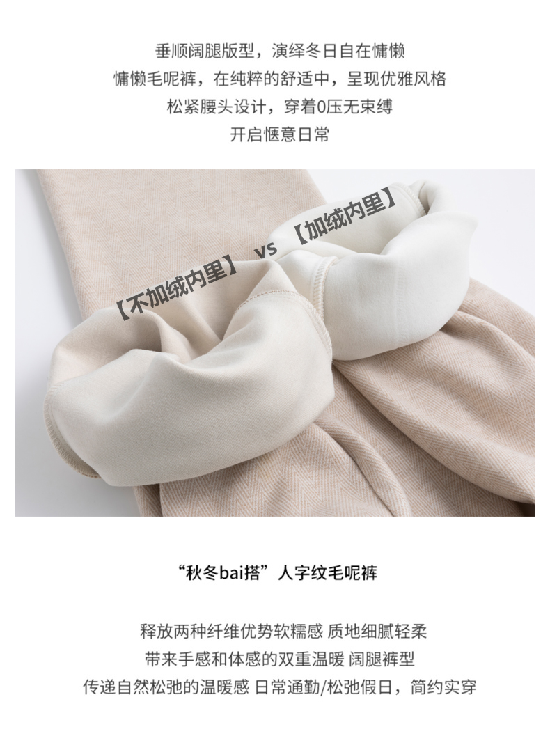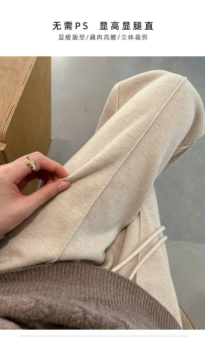 Fleece-Lined Narrow Wide-Leg Pants 2025 Autumn and Winter Drapey High-Waisted Petite Straight-Leg Pants Women's Casual Woolen Pants