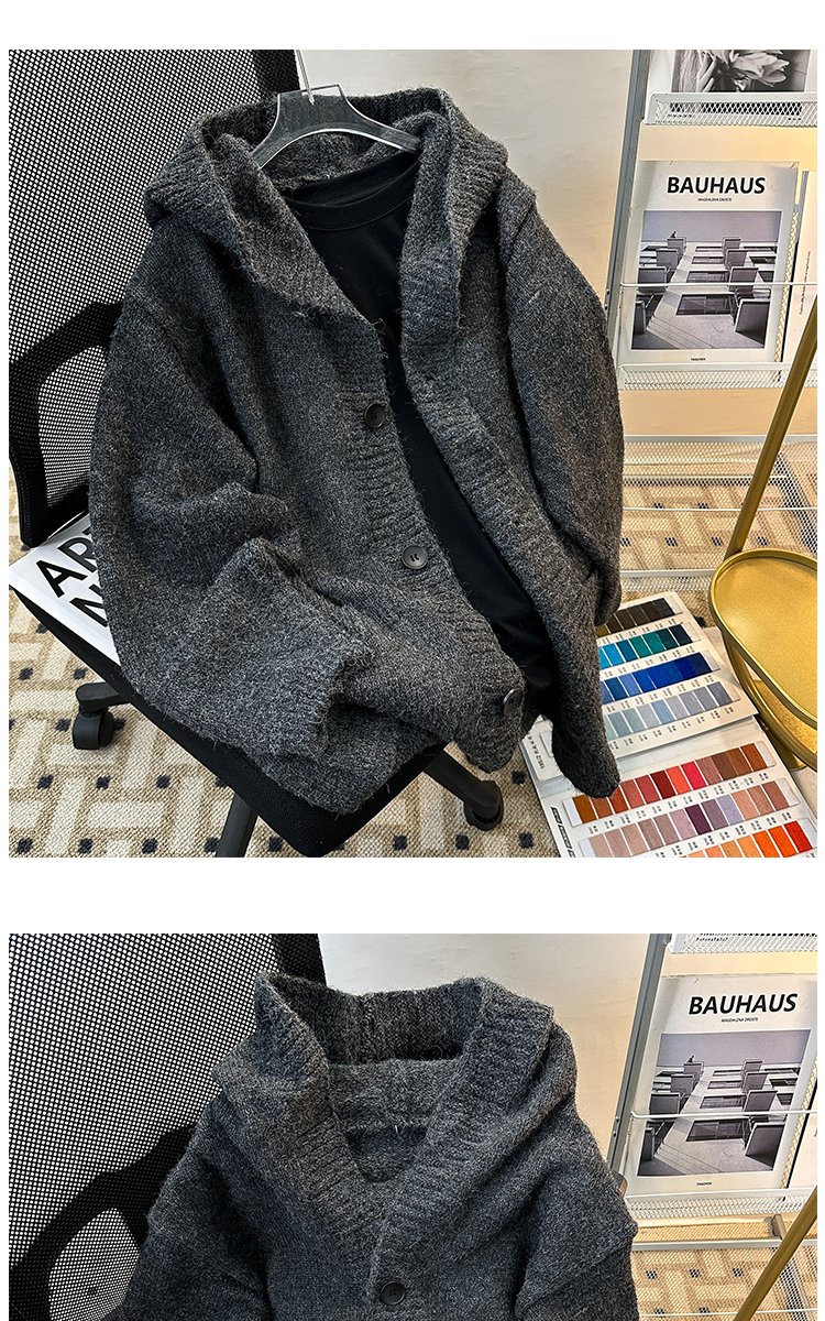 High-End Cleanfit Cardigan Jacket for Men, Autumn and Winter Trendy Brand, Loose and Lazy Style Knitwear, Hooded Sweater