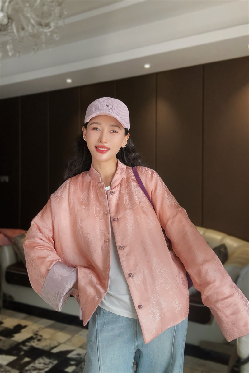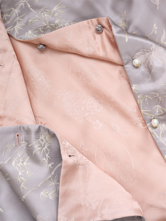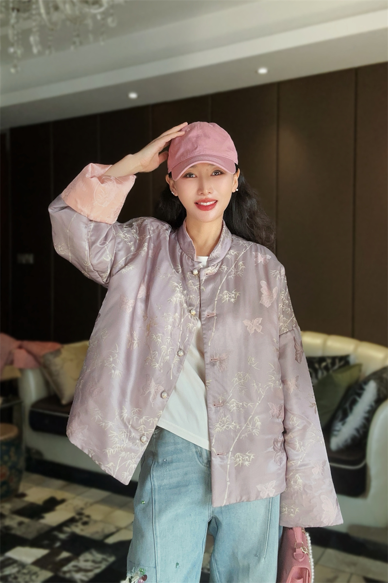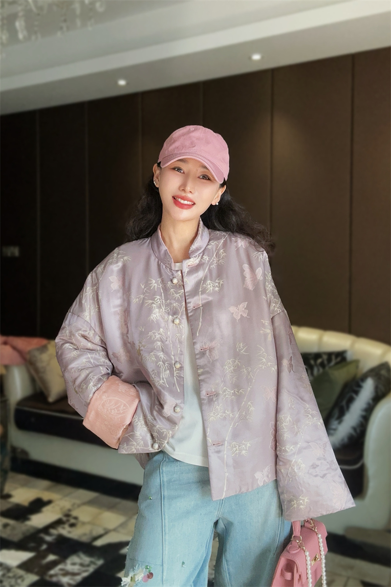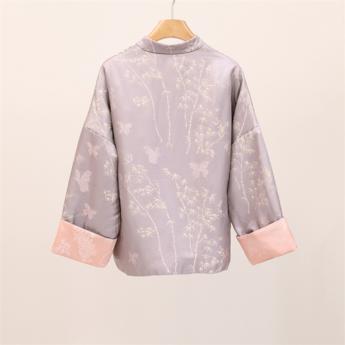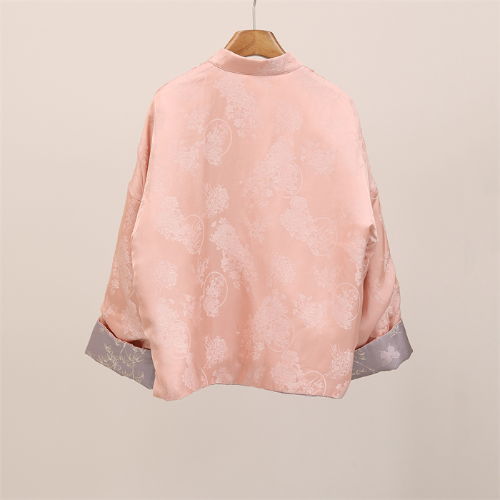 Reversible Vintage Purple and Orange Jacquard Silk Cotton Jacket for Women, Fashionable and Versatile, New Chinese Style Top Ht5810