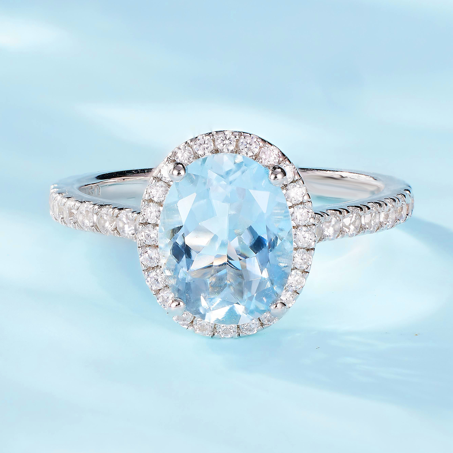 Onegirl S925 Silver Natural Aquamarine Ring Classic Surround Setting Gift 70 Points Pure Silver Gemstone Ring