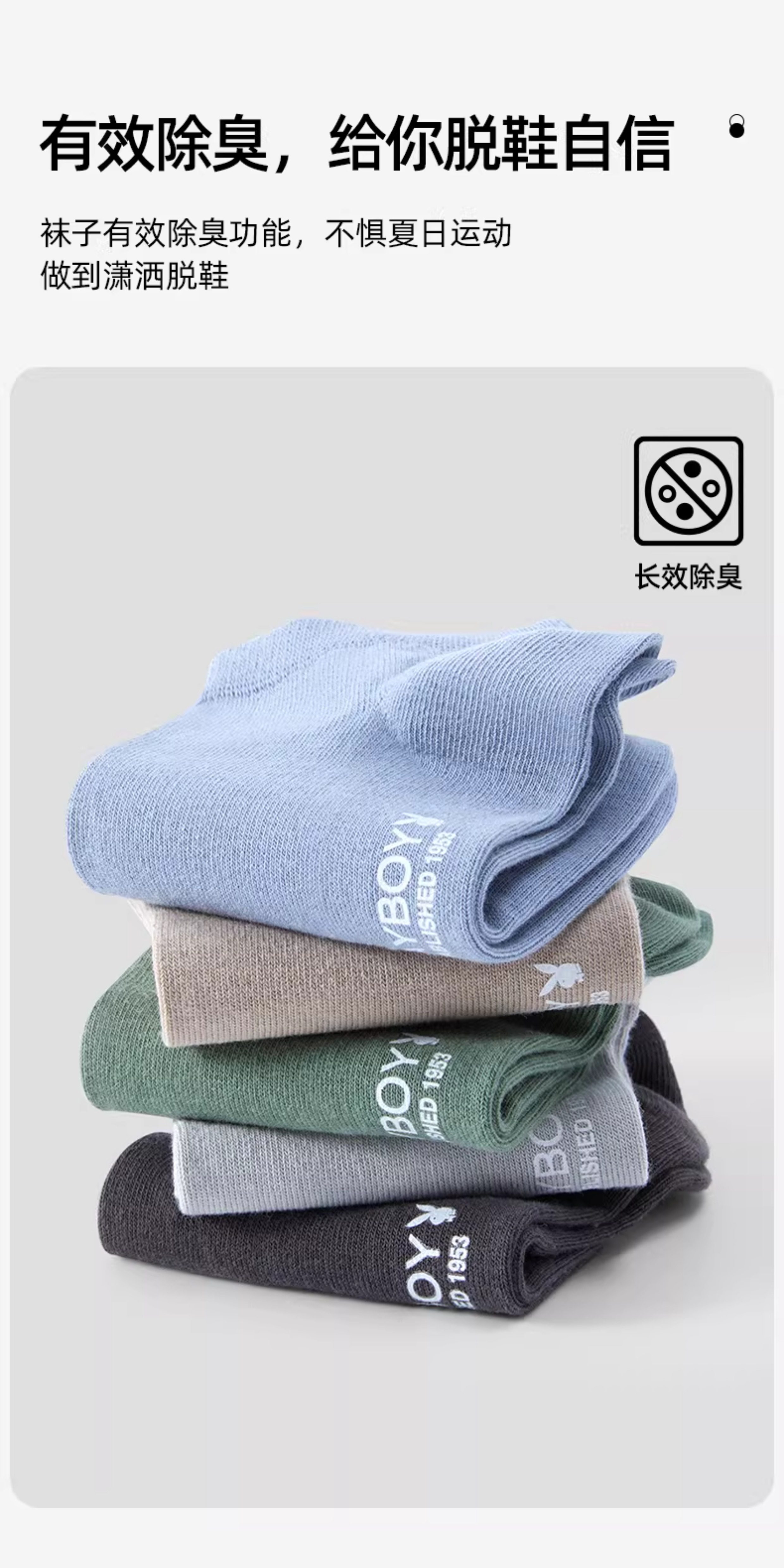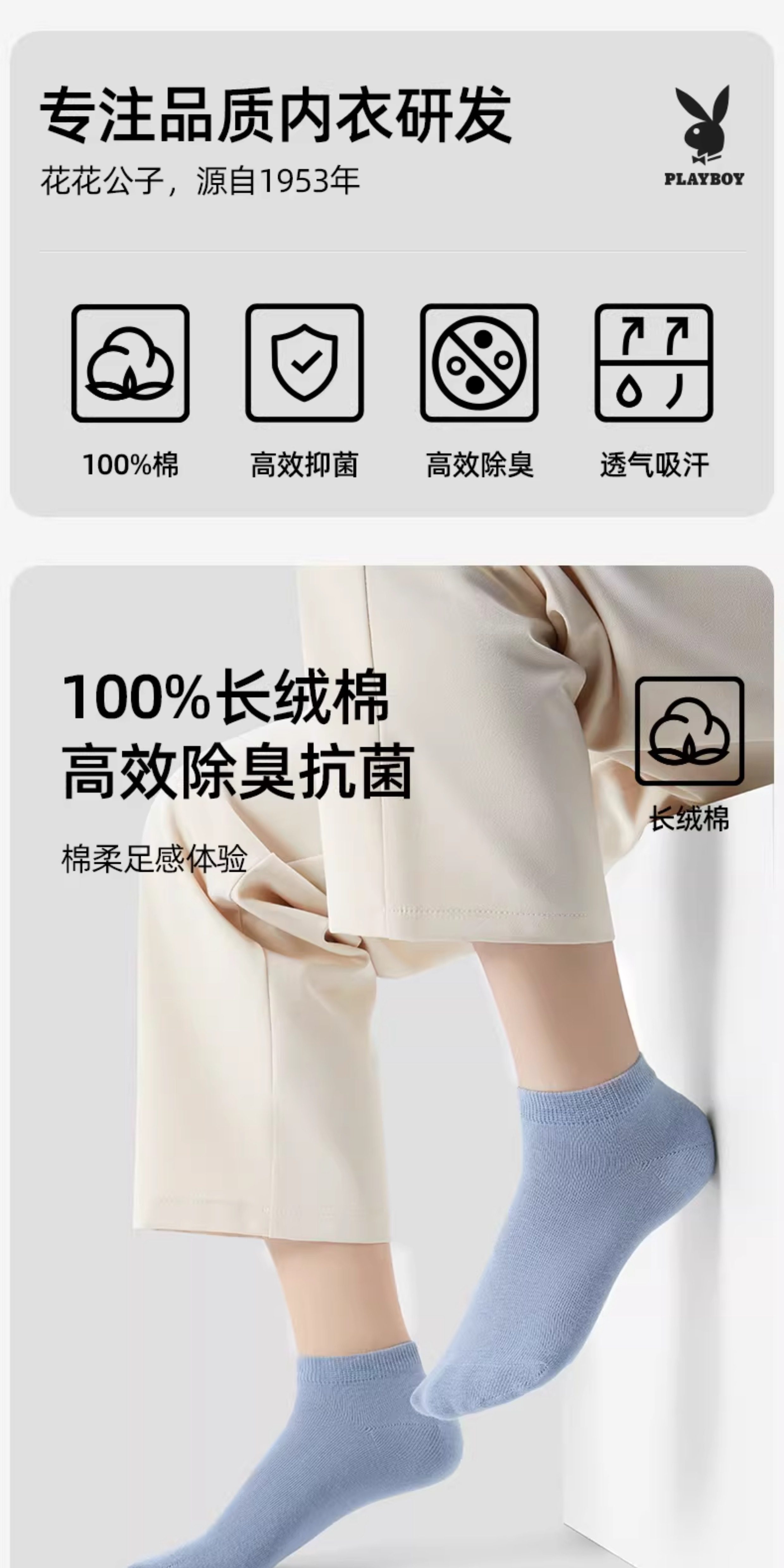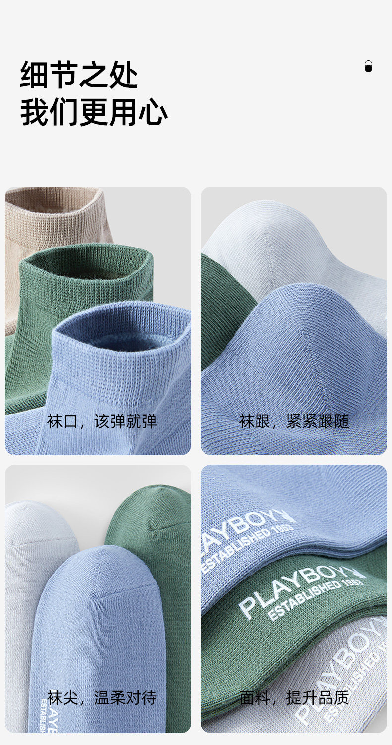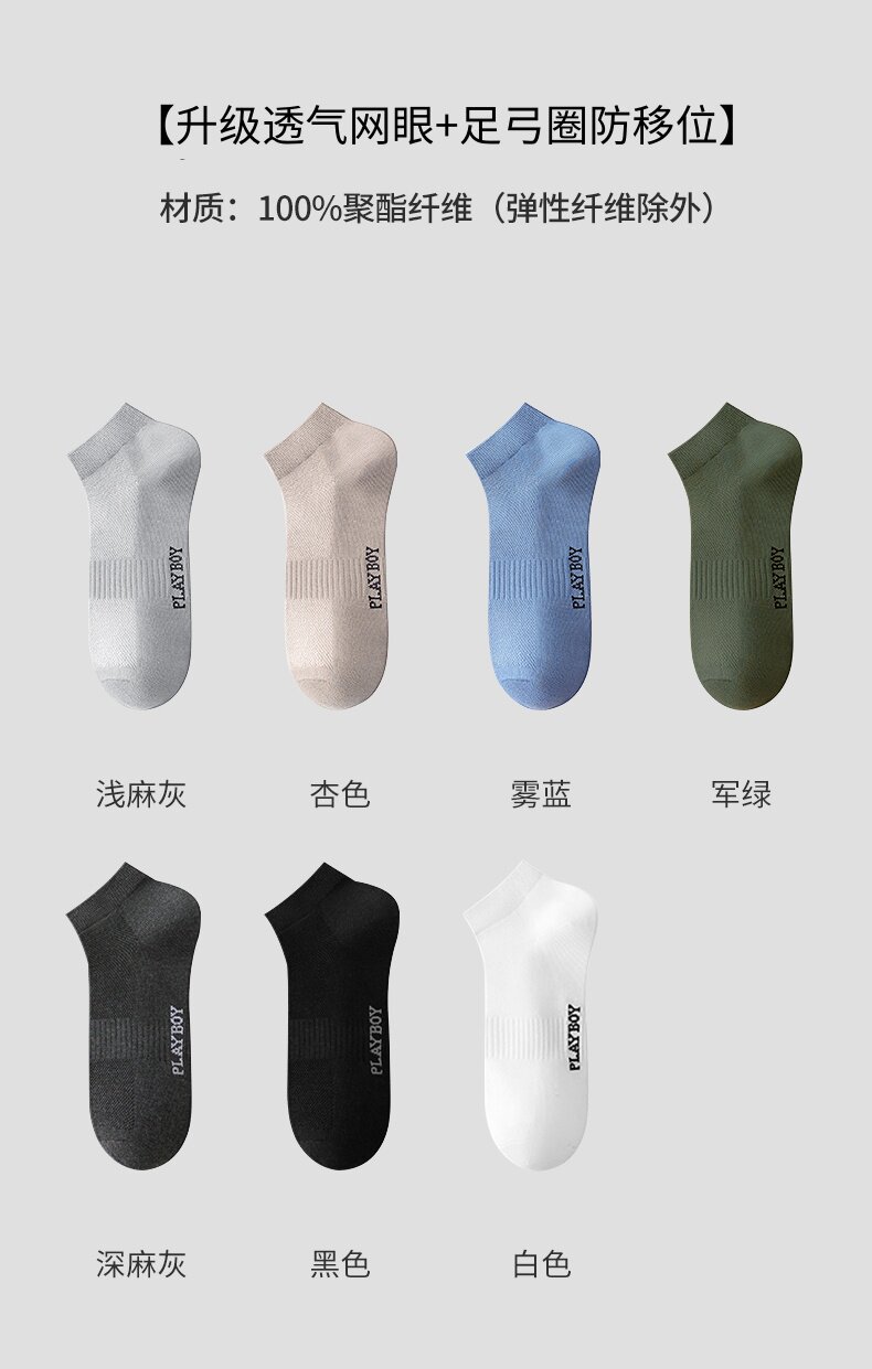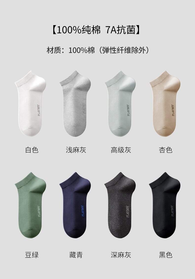 [7A Antibacterial] Playboy Socks Men's Pure Cotton Autumn and Winter Men's Short Socks All-Cotton Odor-Resistant Sweat-Absorbent No-Show Socks for Men