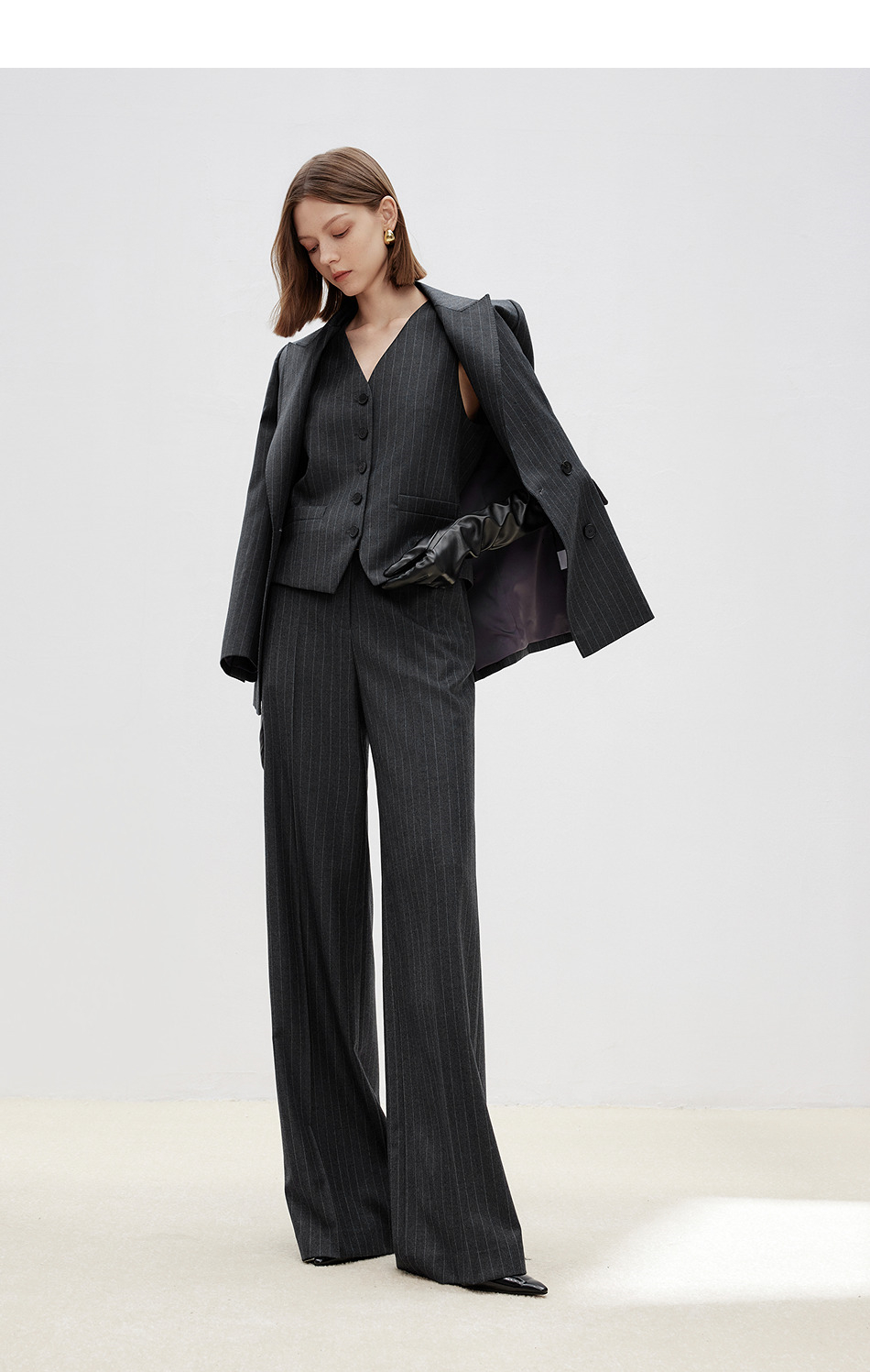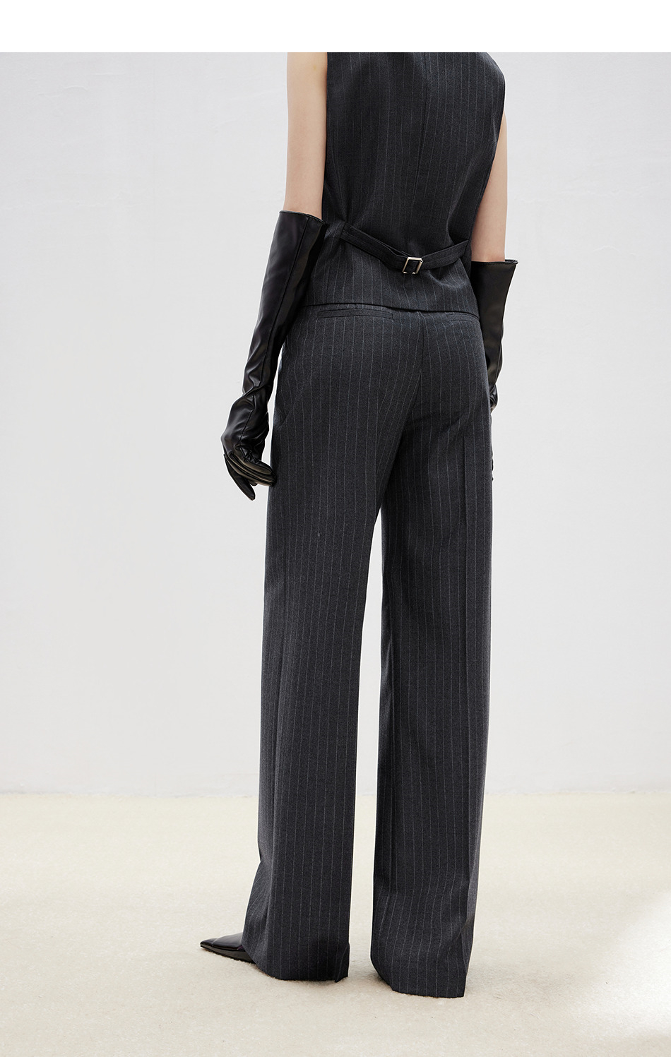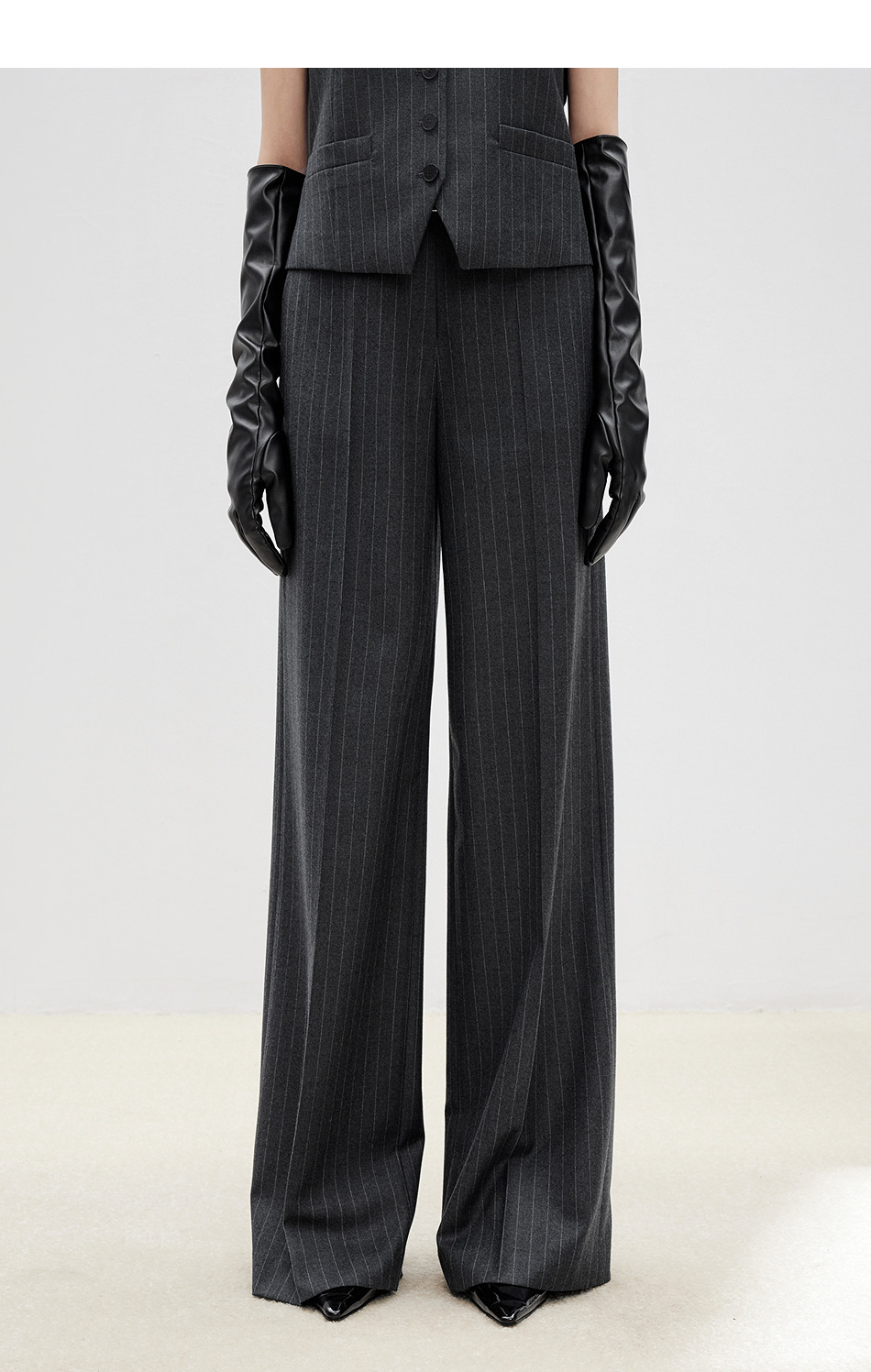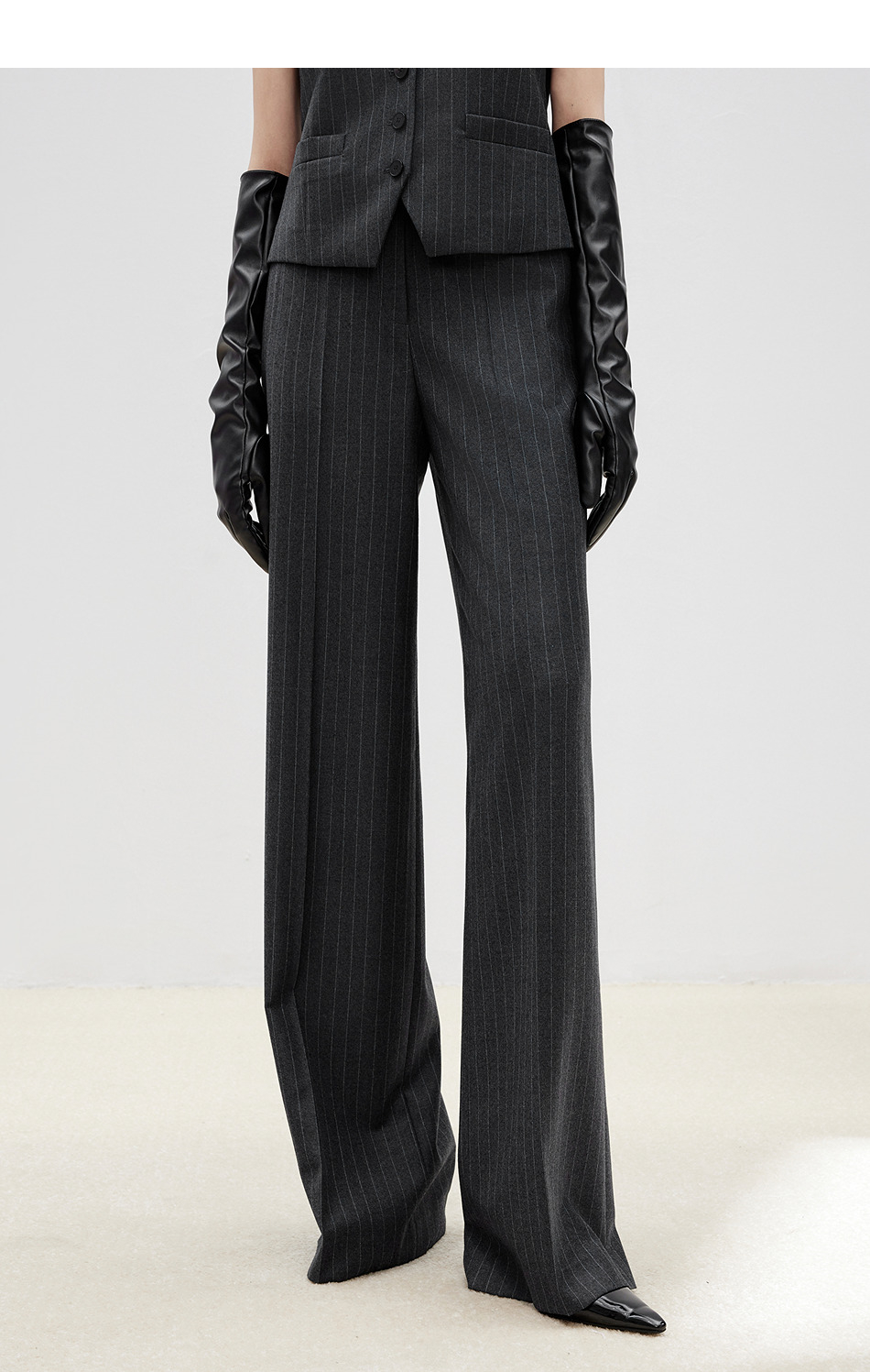Langzi Pure Wool Straight-Leg Wide-Leg Striped Suit Pants 2025 Spring New Gray Versatile Commuter Professional Suit Pants