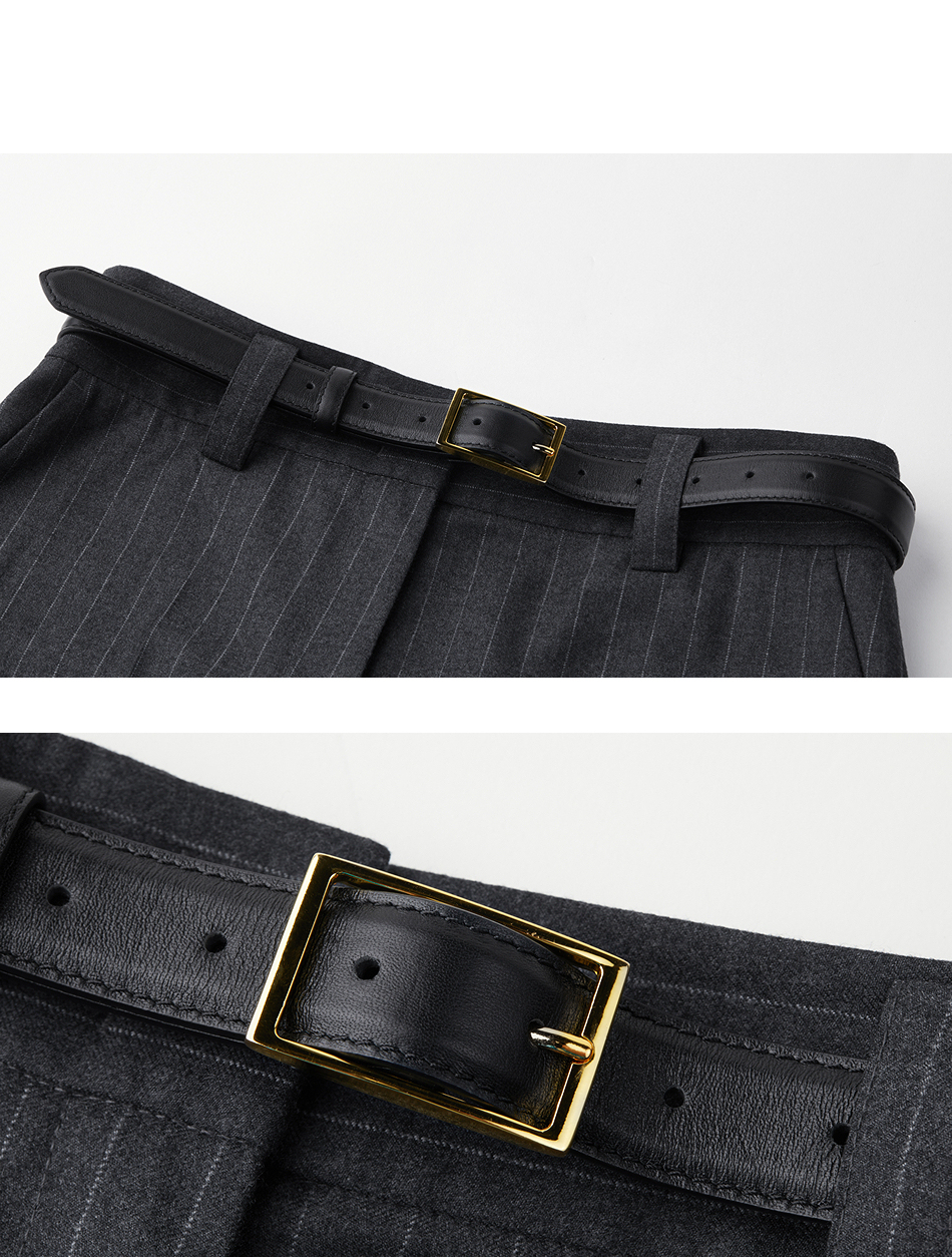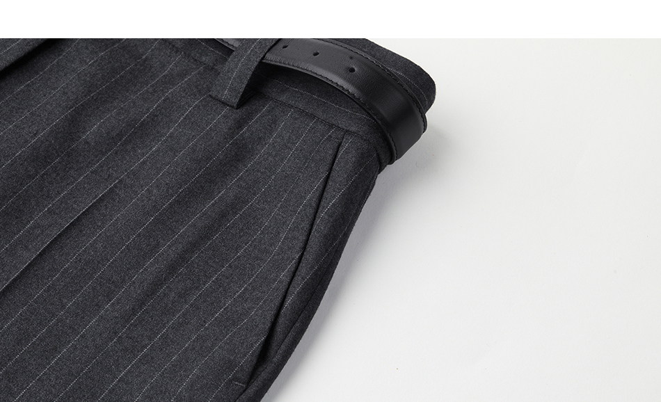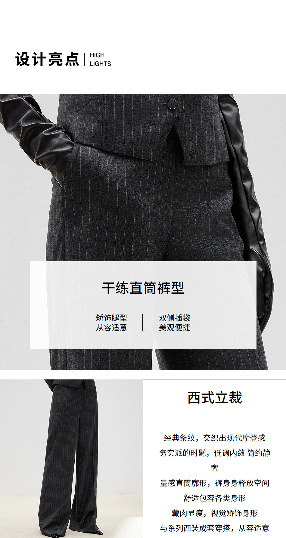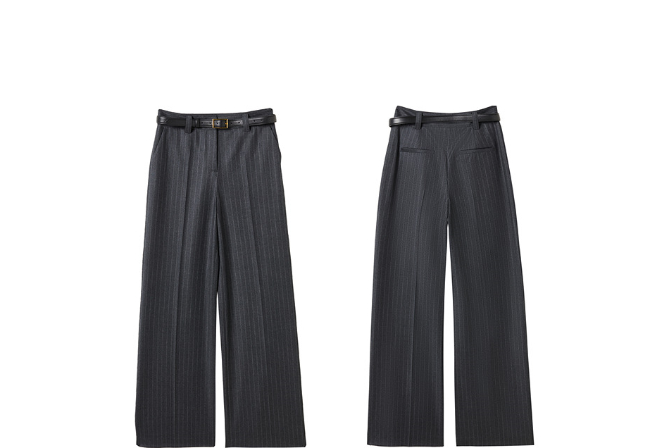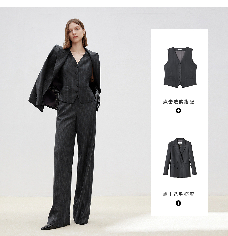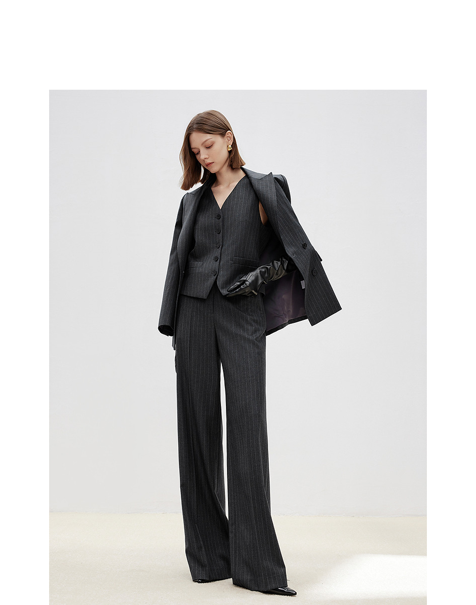 Langzi Pure Wool Straight-Leg Wide-Leg Striped Suit Pants 2025 Spring New Gray Versatile Commuter Professional Suit Pants