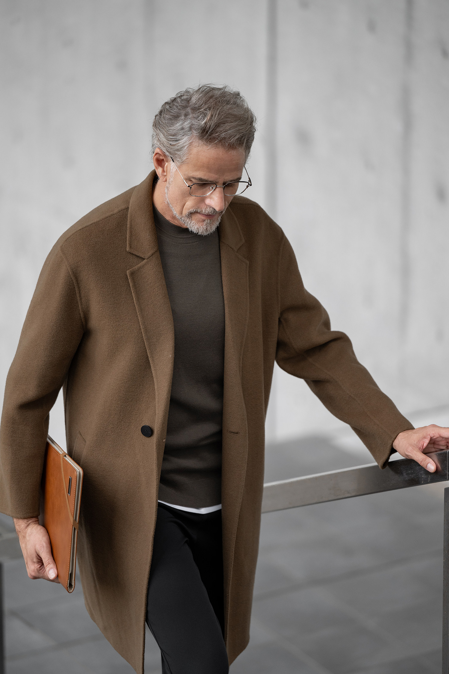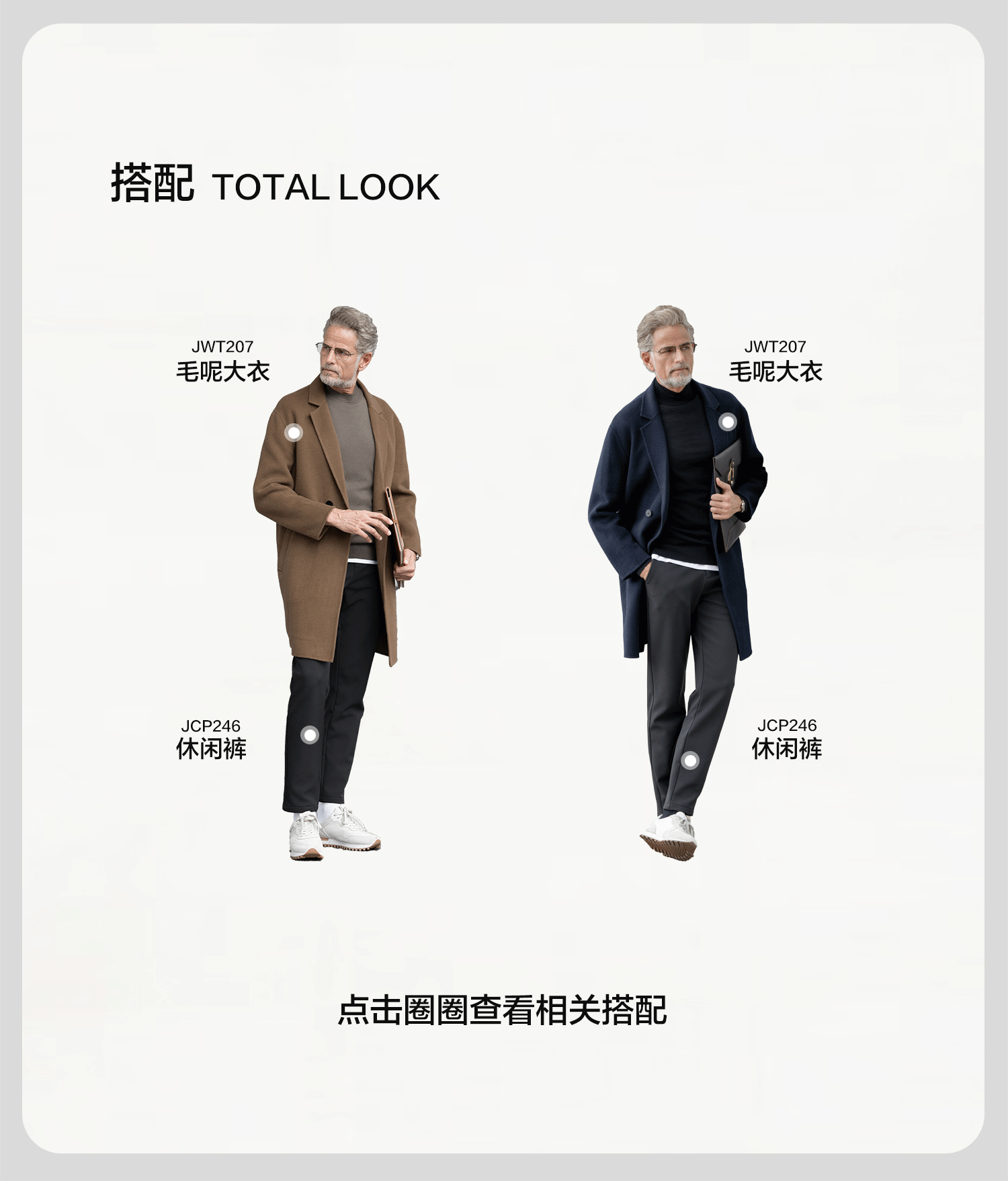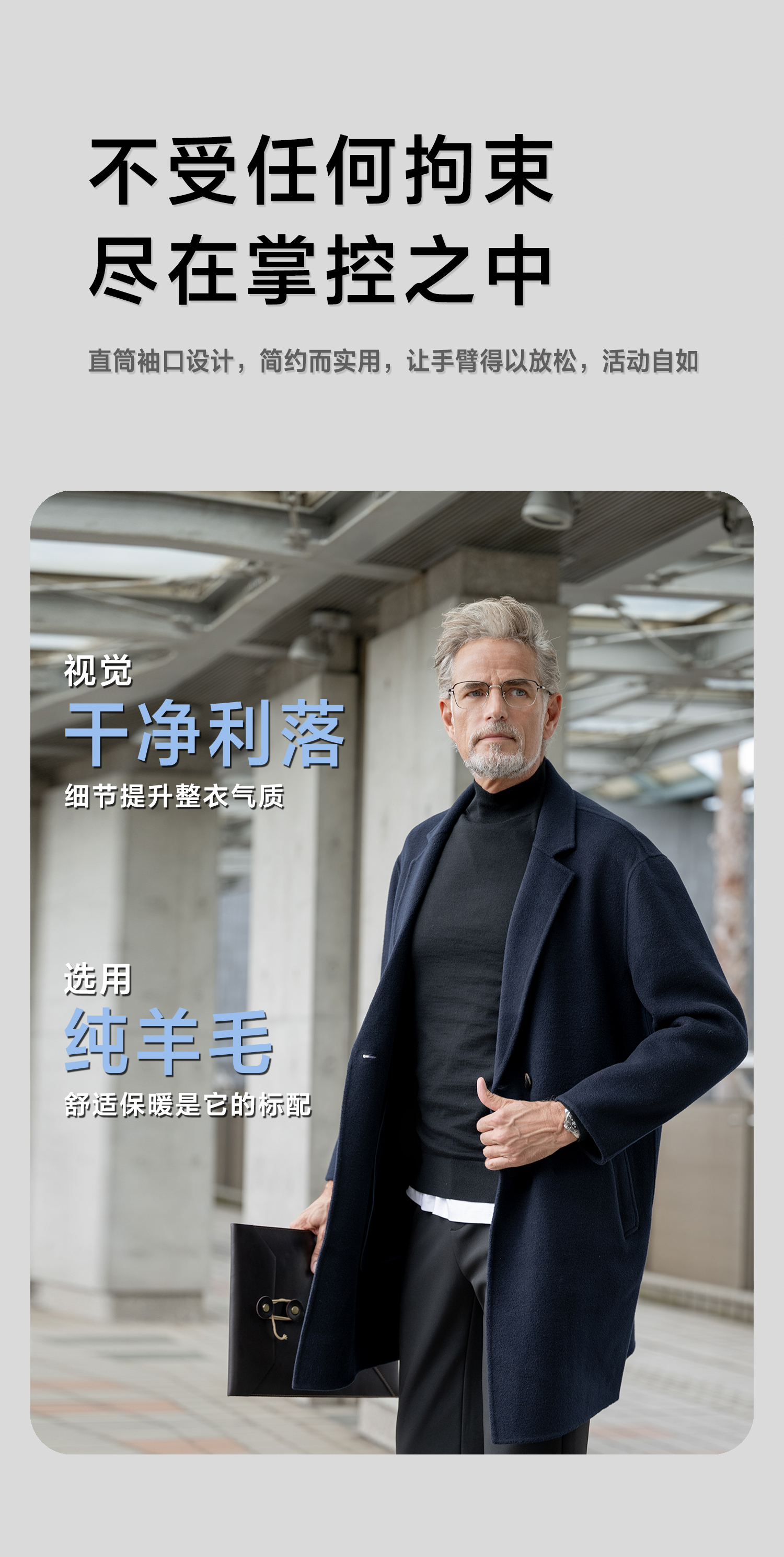 Jssd Homme New Winter Men's Double-Sided Woolen Coat Men's Business Casual Mid-Length Outwear Men