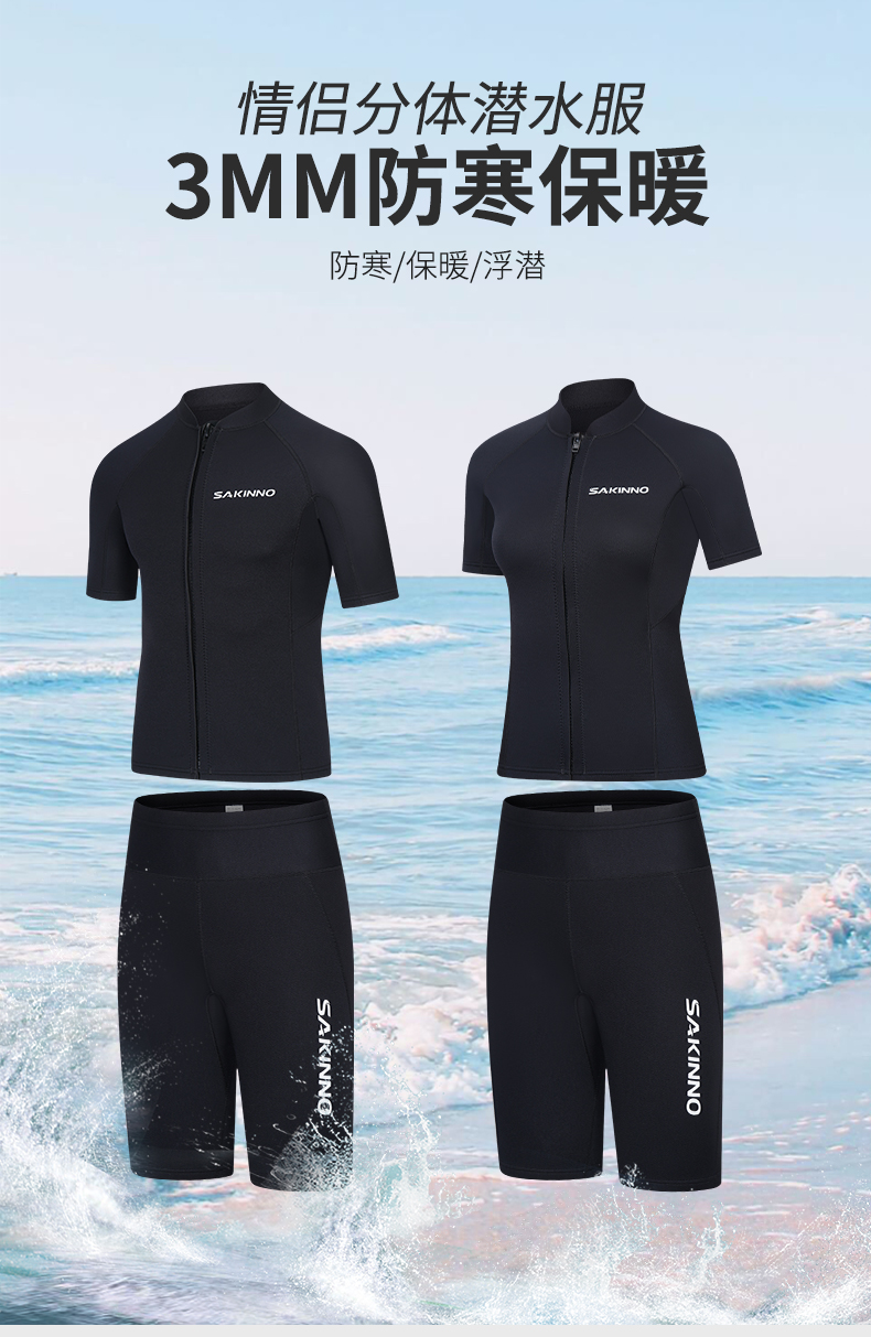 Winter Diving Suit for Men and Women, Couple's Warm, Quick-Drying, Sun-Protective Swimsuit, 2mm Short-Sleeved Pants, Cold-Proof Jellyfish Wet Suit Set