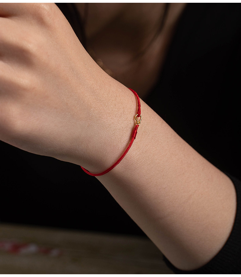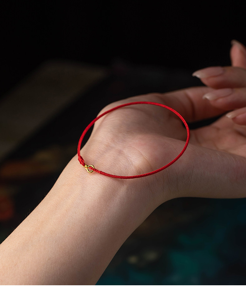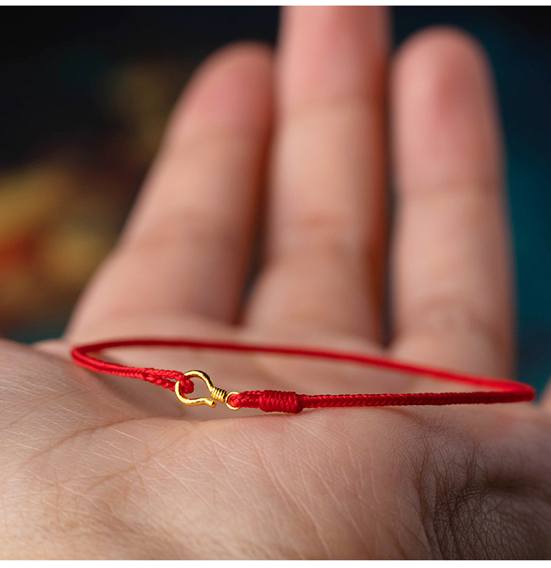 Red String Bracelet for the Year of the Horse, Handmade Gold Bracelet for Couples, Traditional Craft Gift