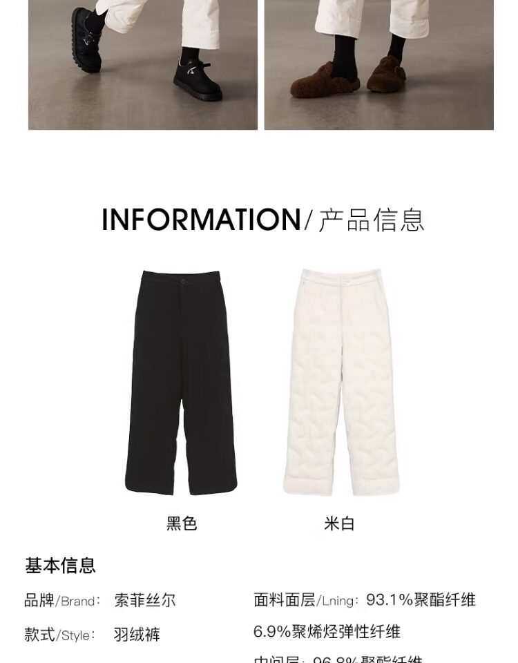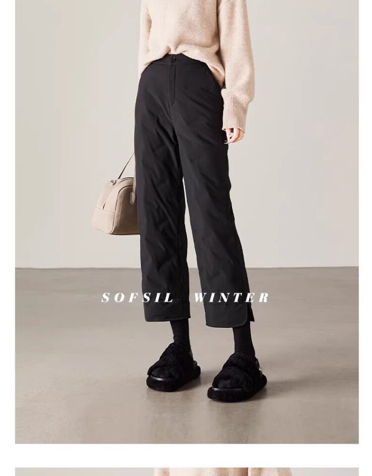 Sophisier 2025 Winter New Fashion Loose Slimming Black Warm Duck down Casual Straight down Pants for Women