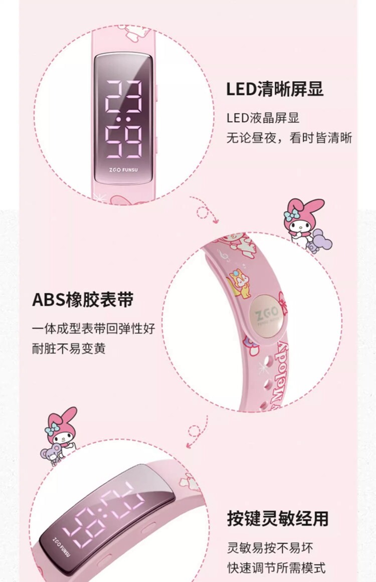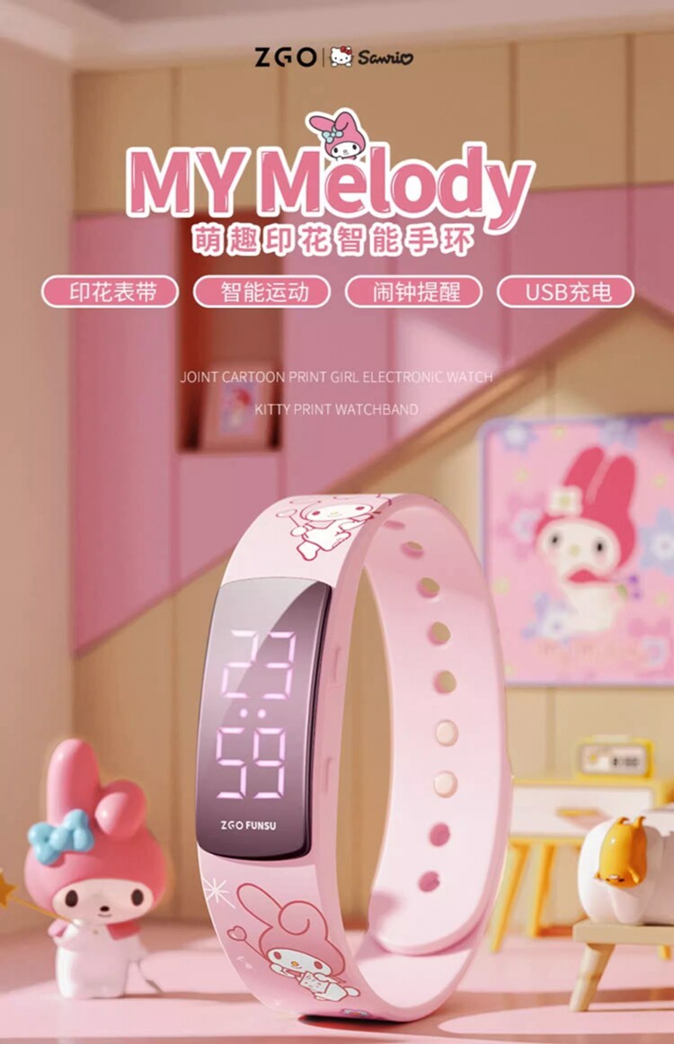 Sanrio Watch for Children, Girls, Elementary School Students, Only for Telling Time, Special Sports Electronic Vibrating Alarm Clock Bracelet