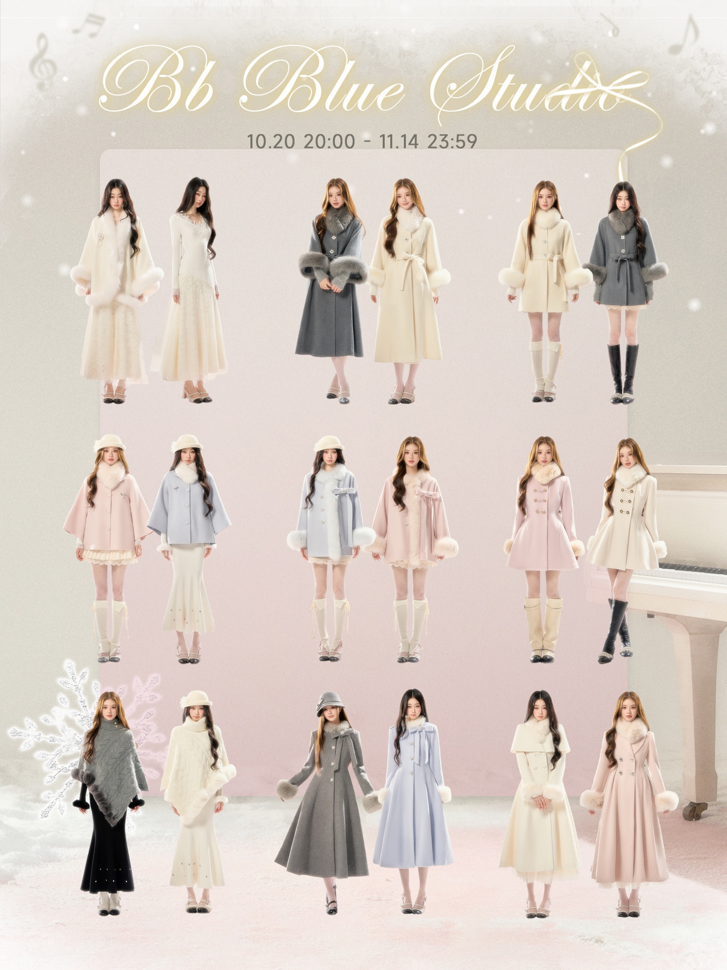 Bb Blue Original Design Snow Country Princess Real Fox Fur Wool White Gray Woolen Short Coat
