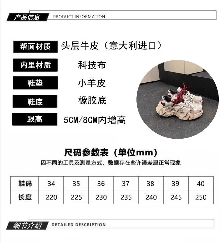 Hong Kong Genuine Leather Height-Increasing Dad Shoes for Women 2025 Spring and Autumn New Thick-Soled Petite Paris Casual Sports Shoes