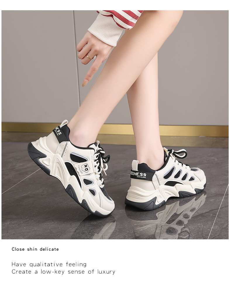 soft sole Women's Dad Shoes Spring and Autumn 2025 New Popular Style Makes Feet Look Smaller Size 34 Sports Casual Shoes Leather Versatile