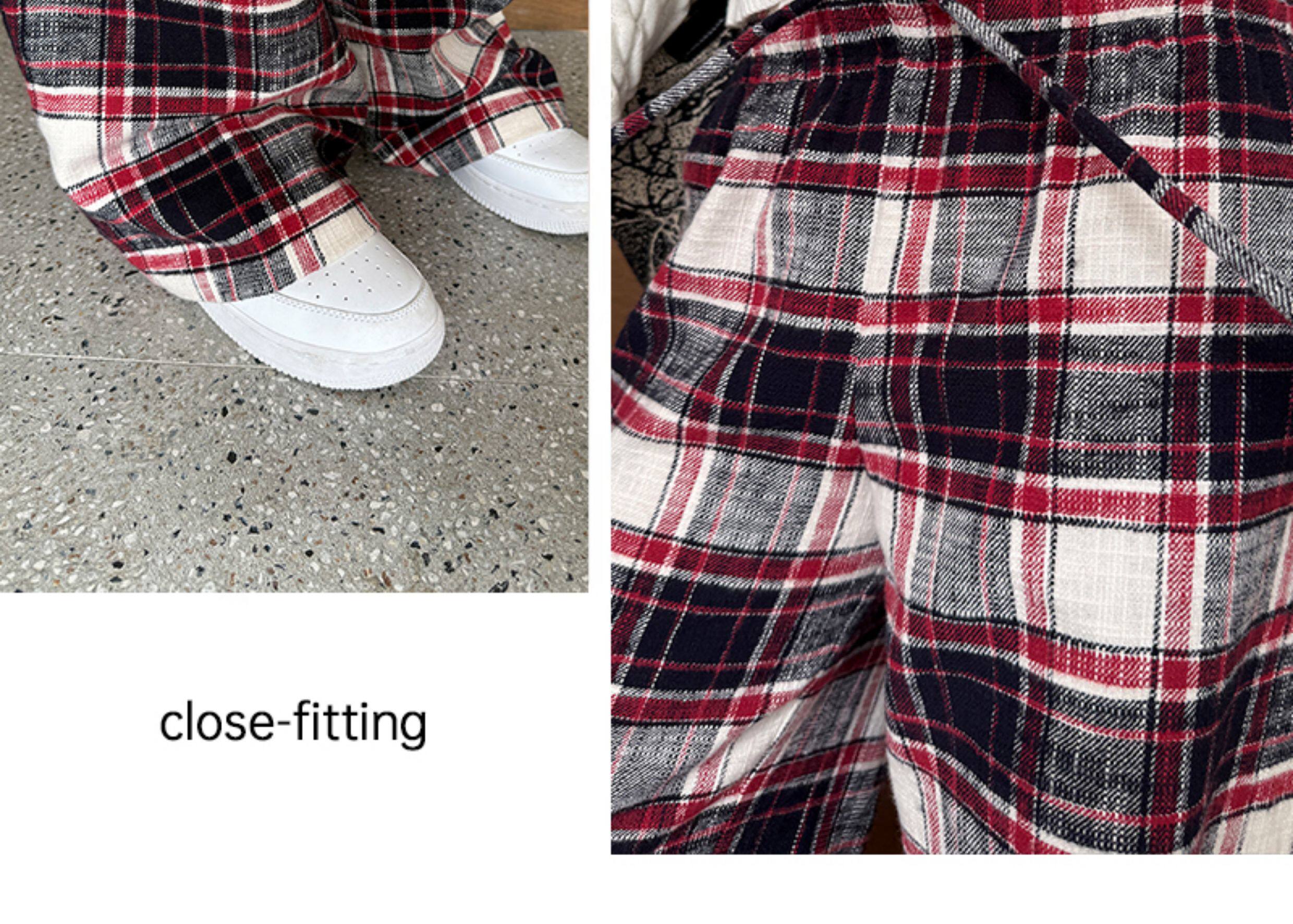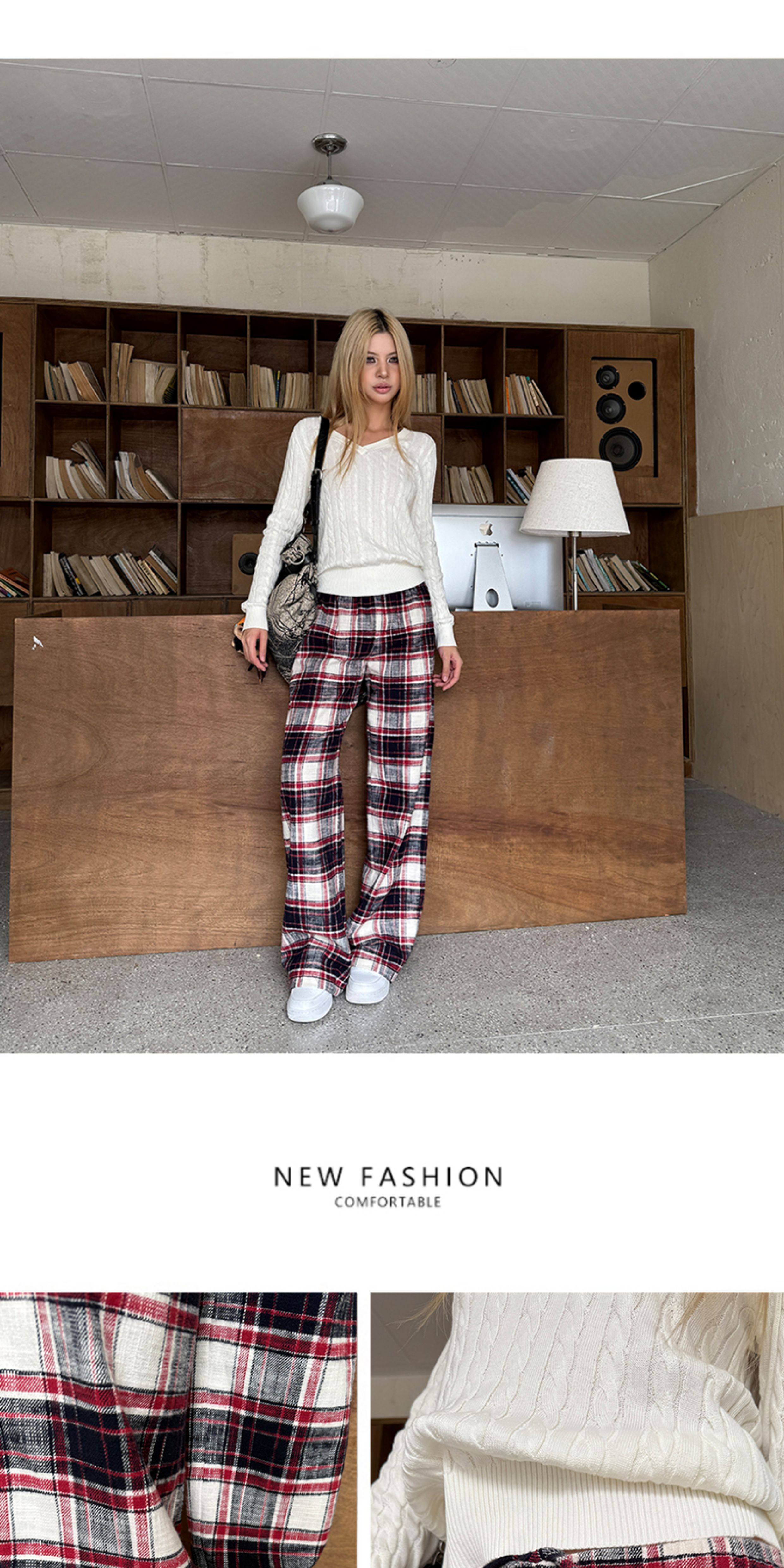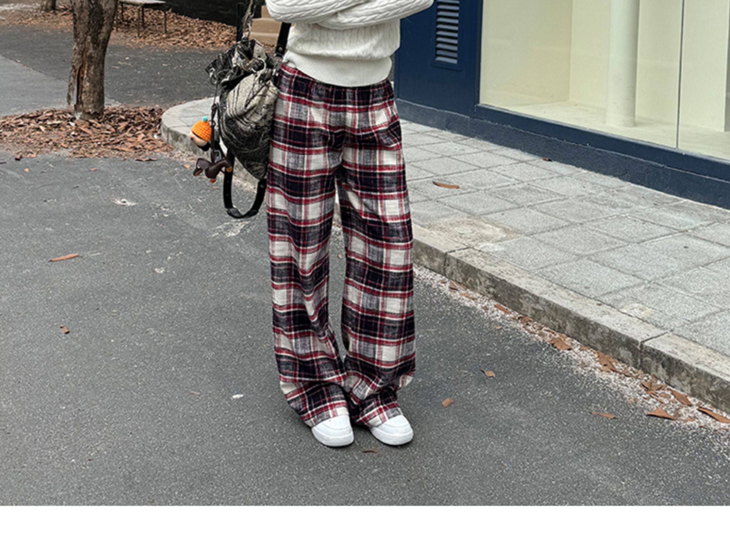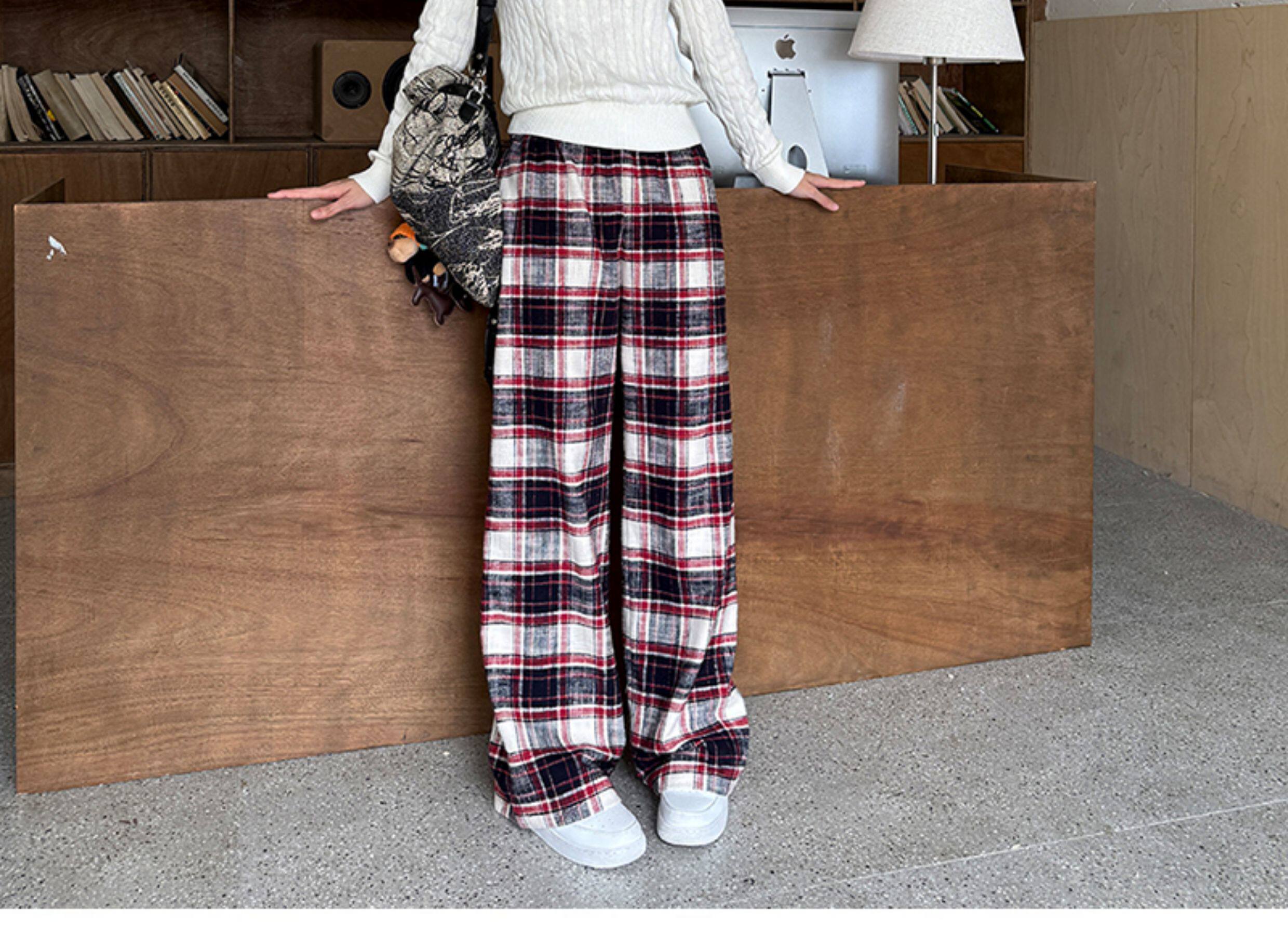 Audwyn Plaid Trousers, Low-Waisted, Retro, New Autumn and Winter Style, Relaxed Fit, Pure Cotton, Brushed, Home Casual Floor-Length Pants