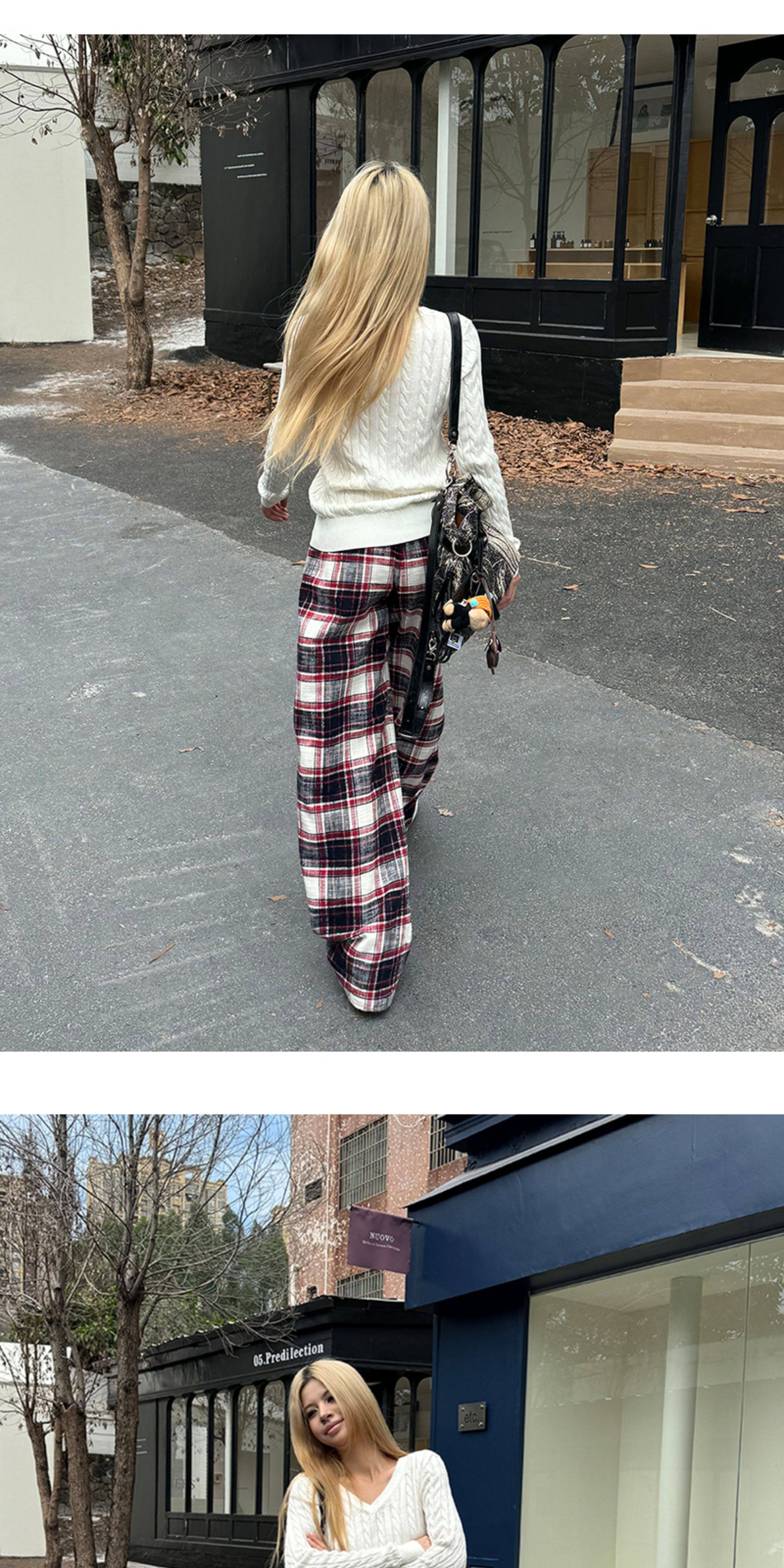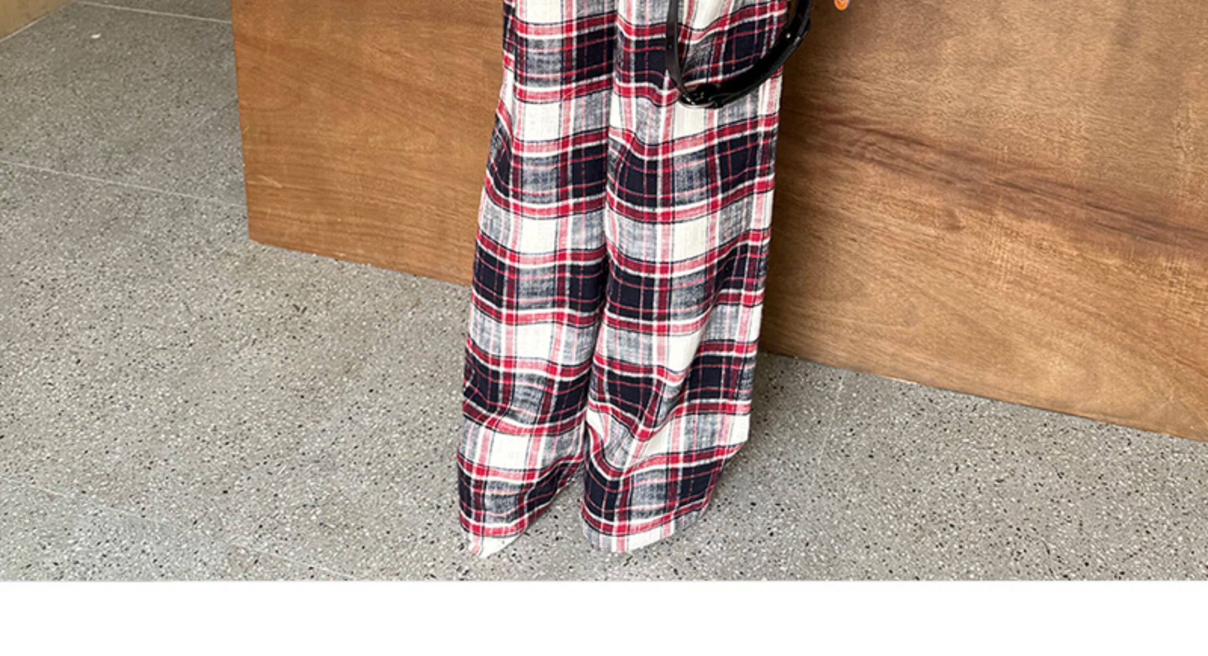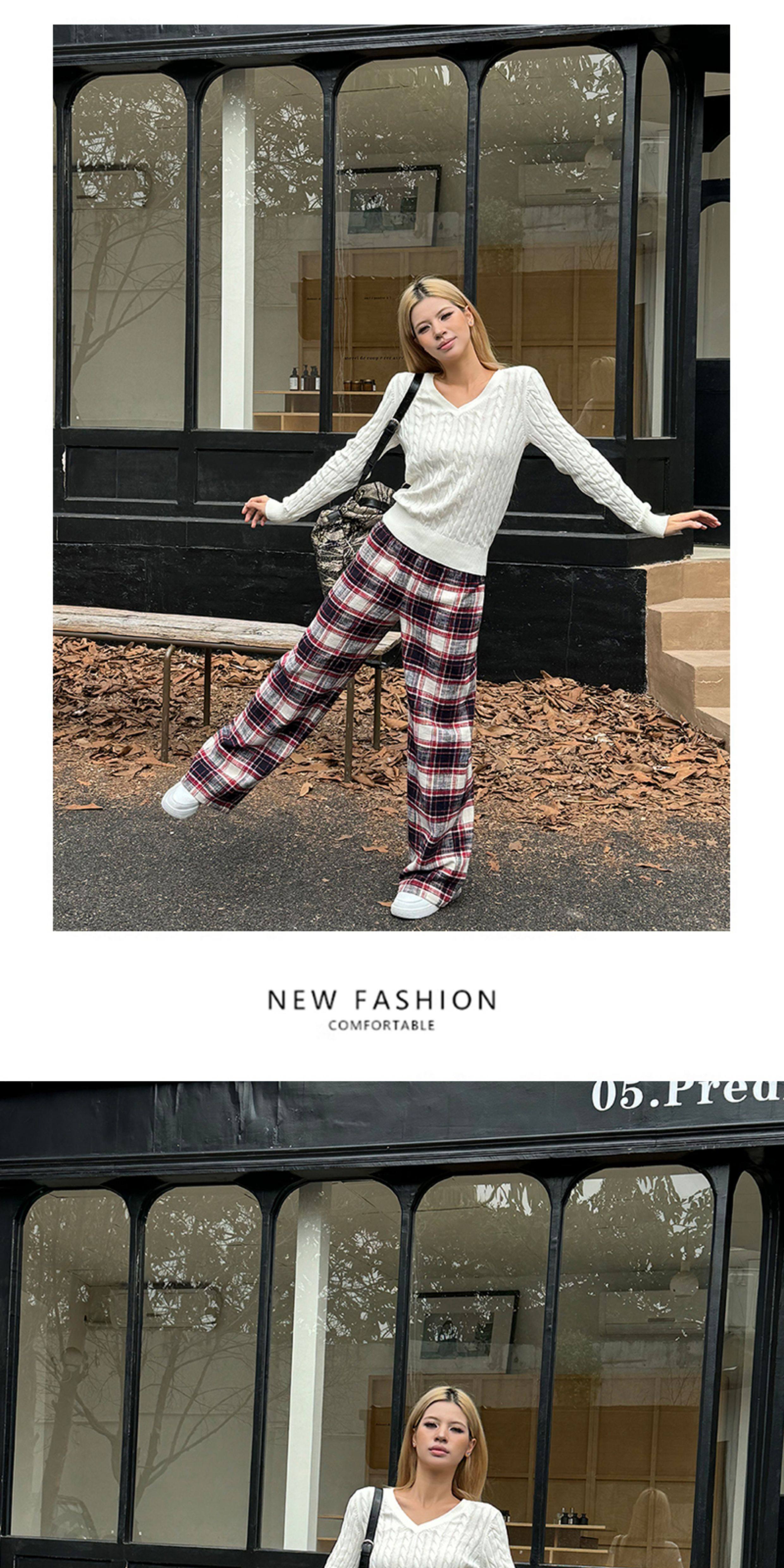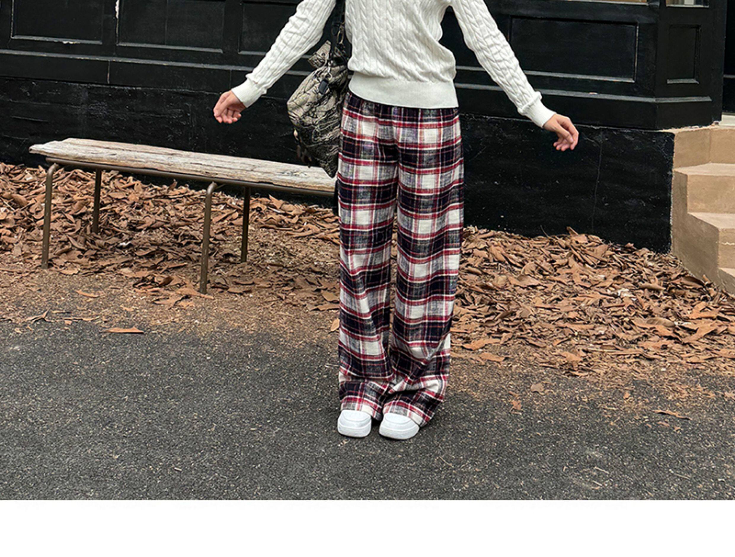 Audwyn Plaid Trousers, Low-Waisted, Retro, New Autumn and Winter Style, Relaxed Fit, Pure Cotton, Brushed, Home Casual Floor-Length Pants