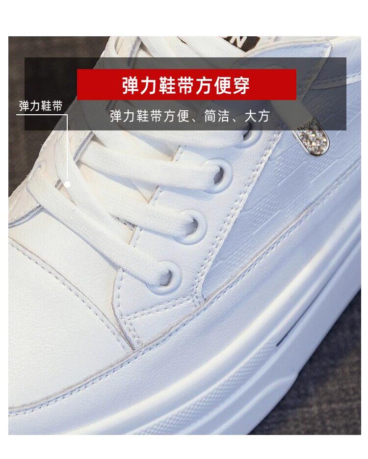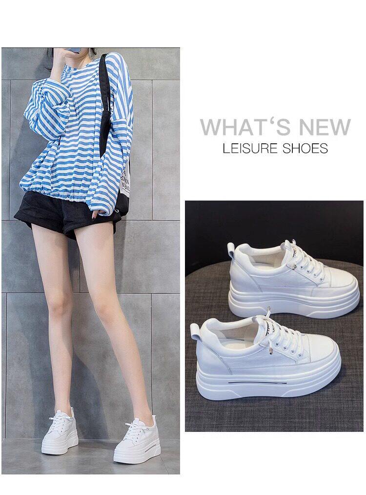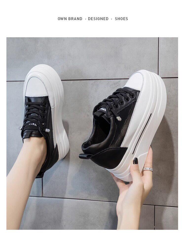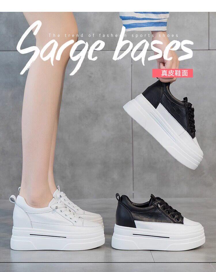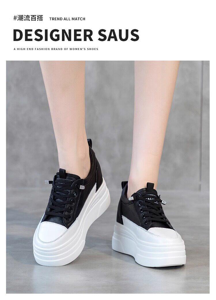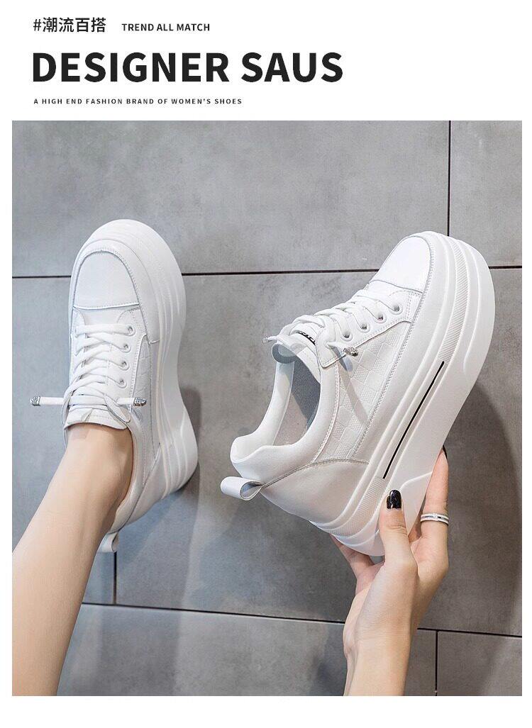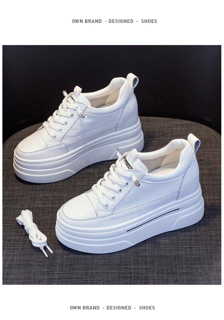 Sanli Genuine Leather Height-Increasing White Sneakers for Women, Spring Thick-Soled Casual Fashion Versatile Small Size 3233 Platform Sneakers Trendy