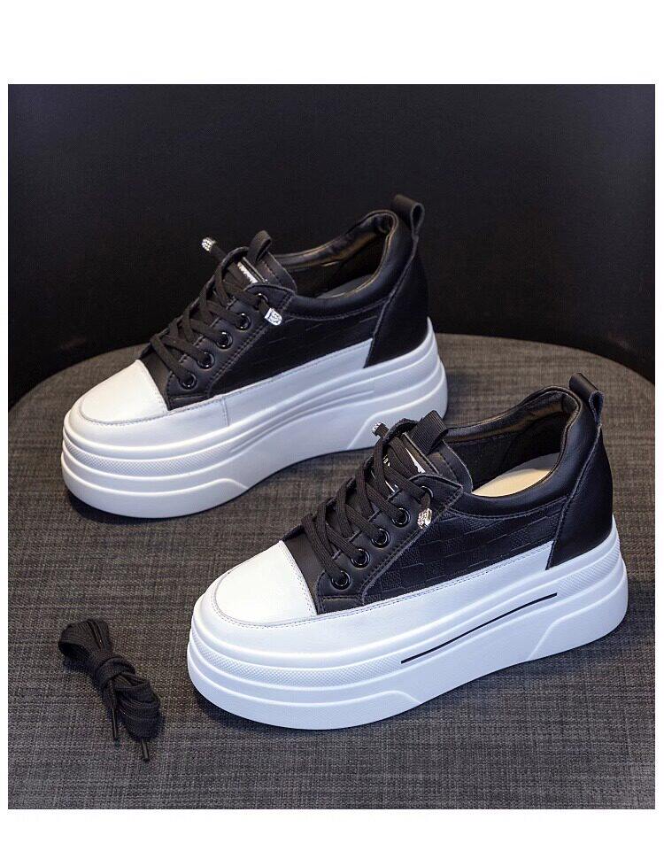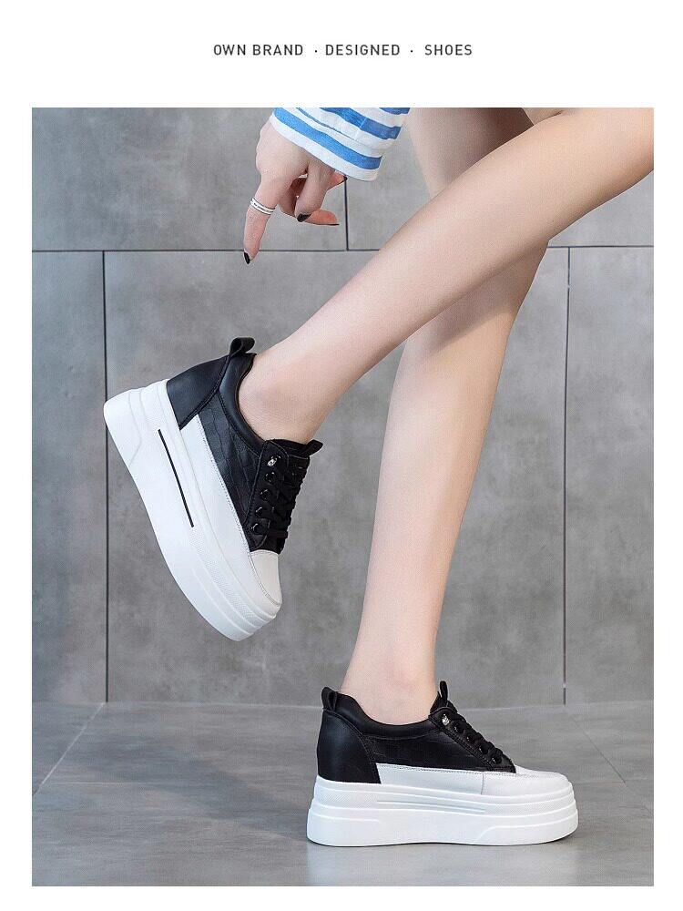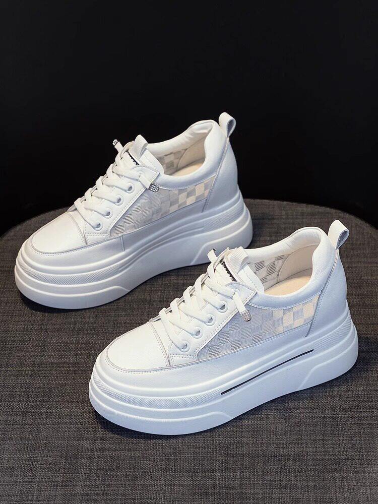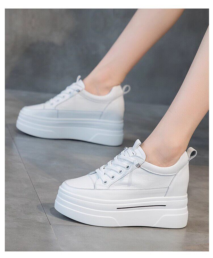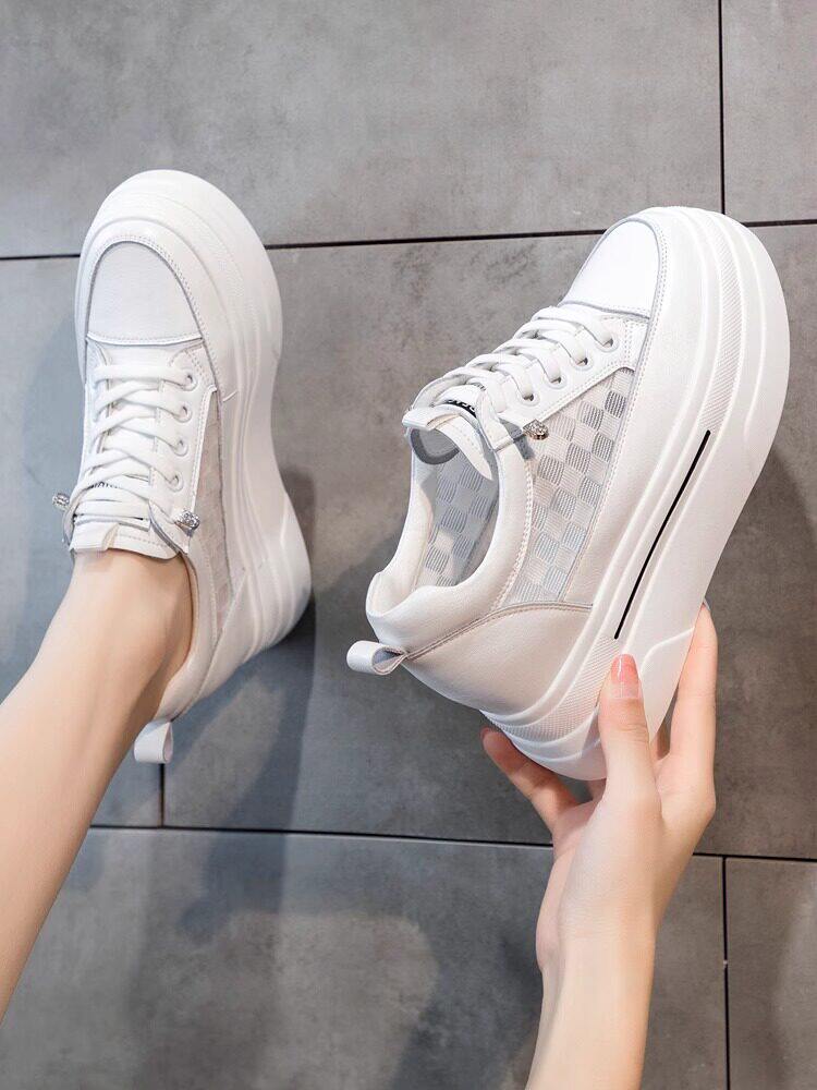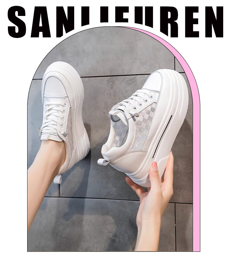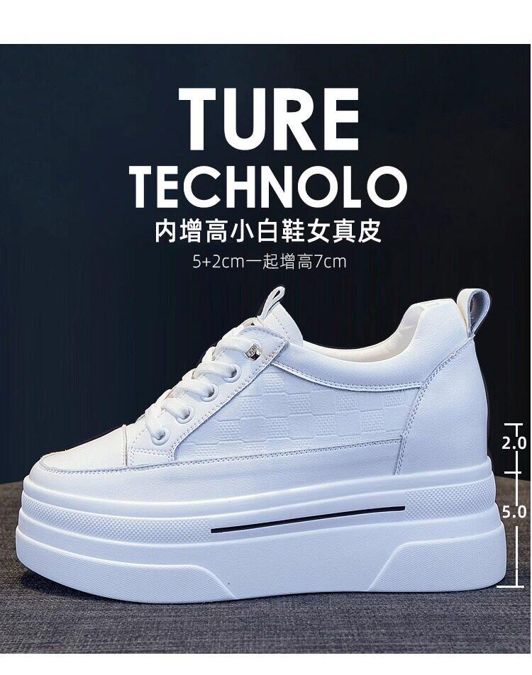 Sanli Genuine Leather Height-Increasing White Sneakers for Women, Spring Thick-Soled Casual Fashion Versatile Small Size 3233 Platform Sneakers Trendy