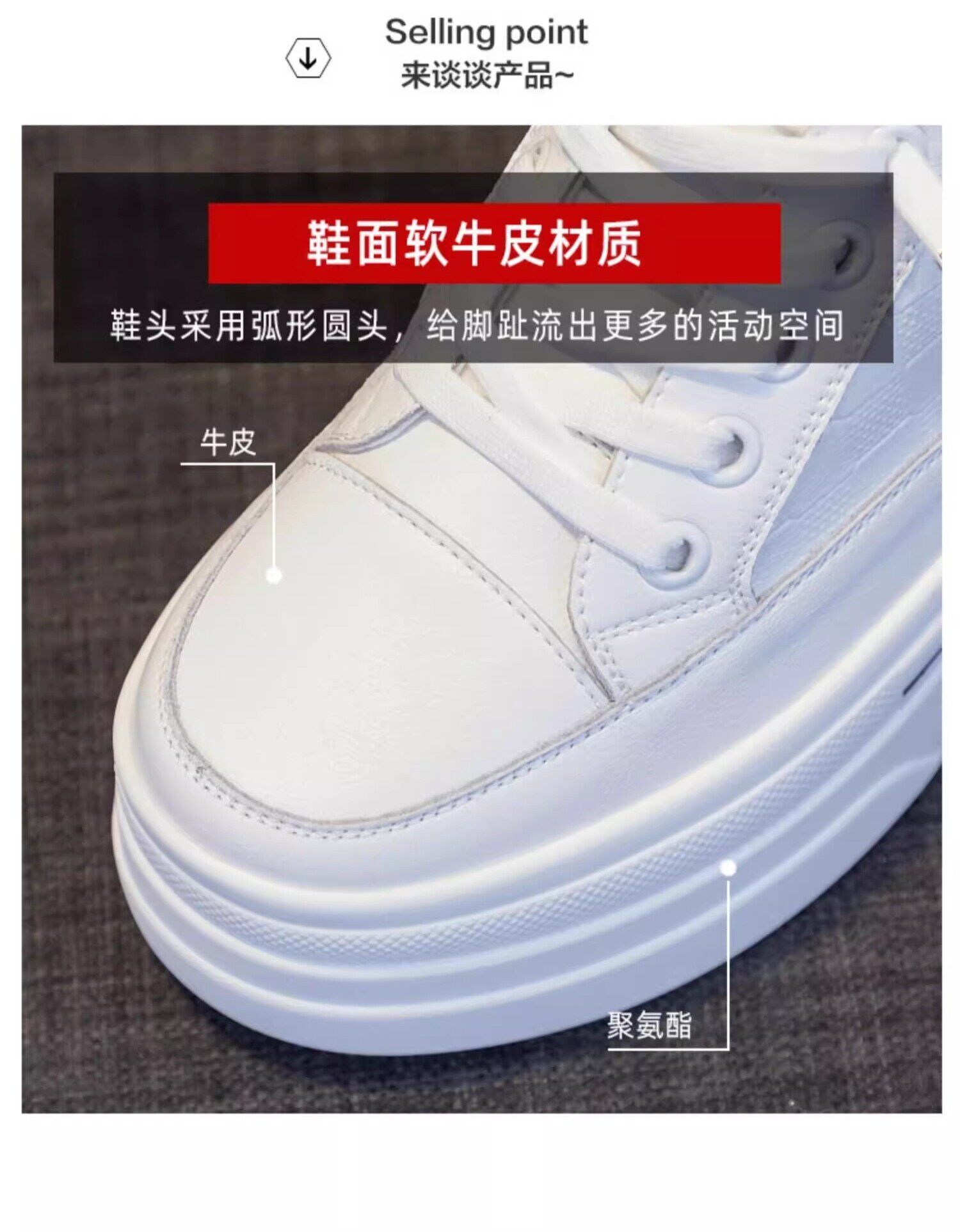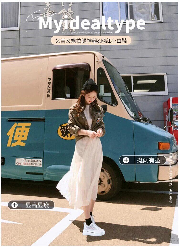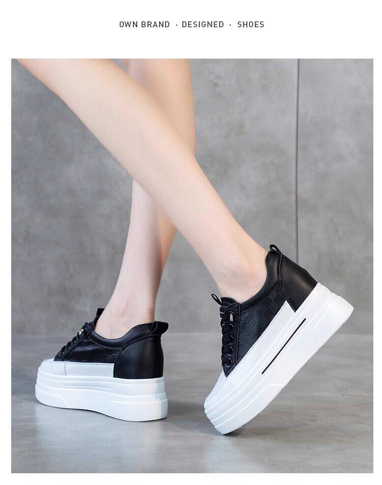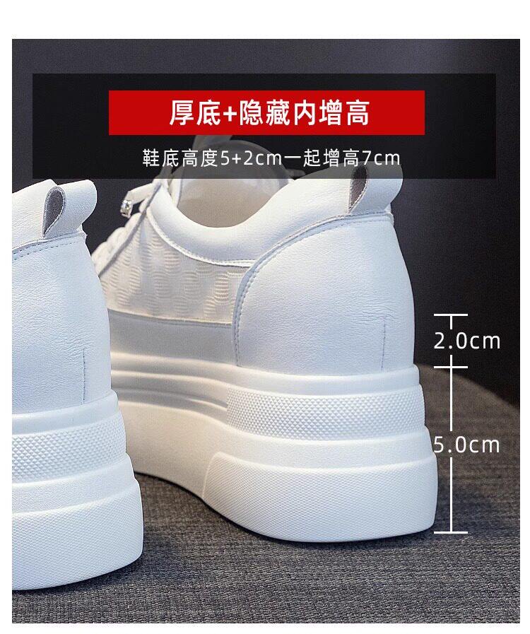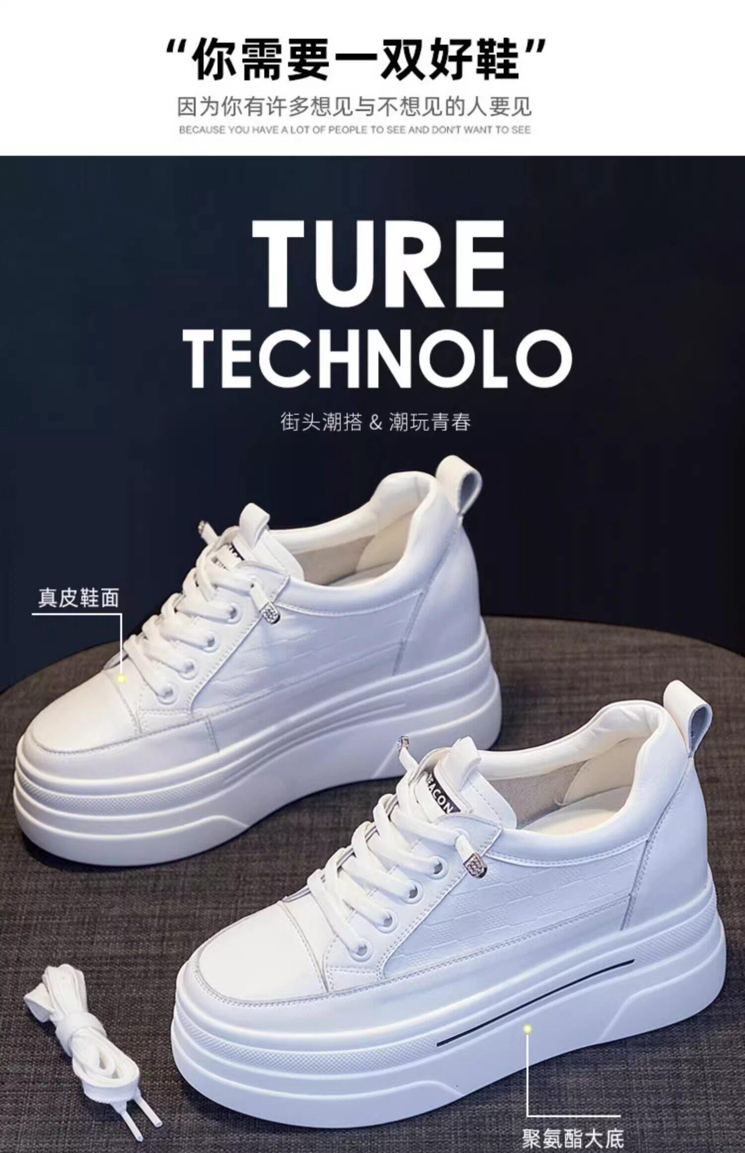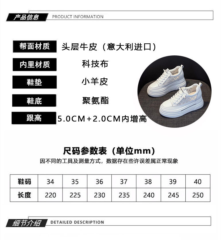Sanli Genuine Leather Height-Increasing White Sneakers for Women, Spring Thick-Soled Casual Fashion Versatile Small Size 3233 Platform Sneakers Trendy