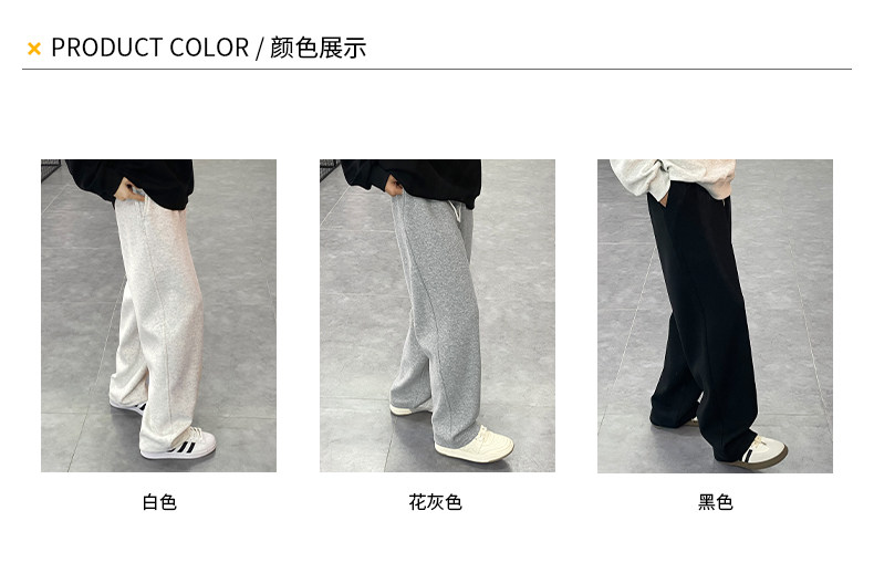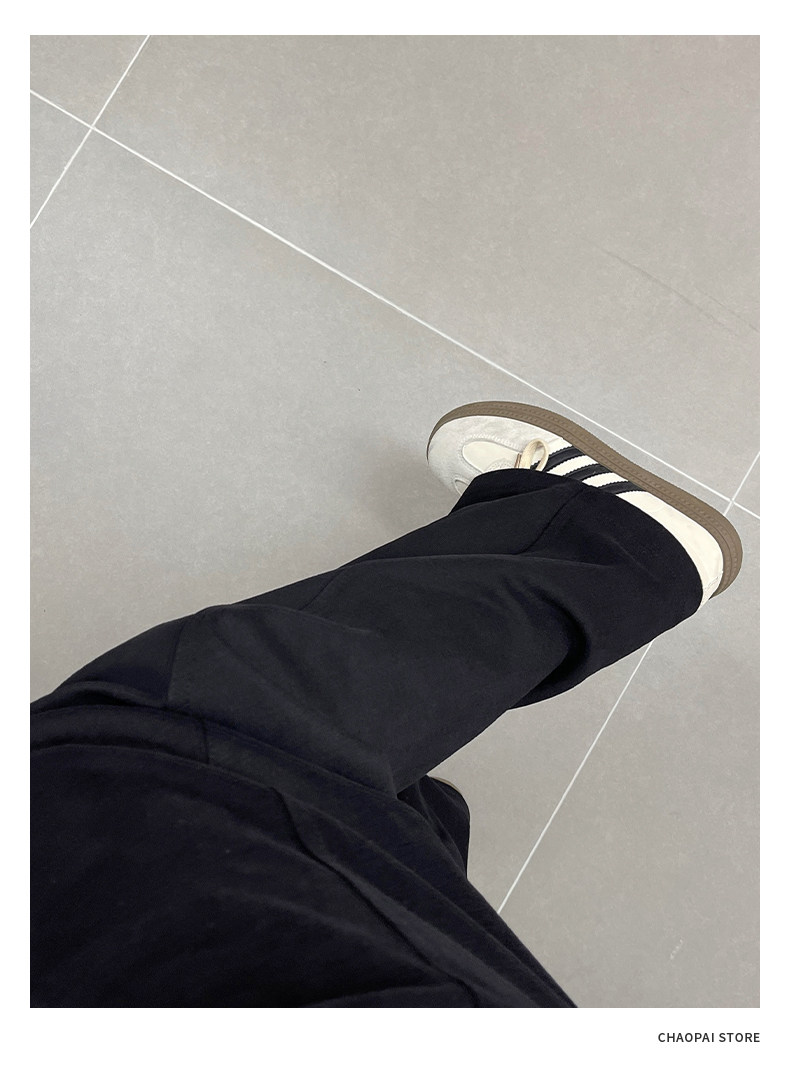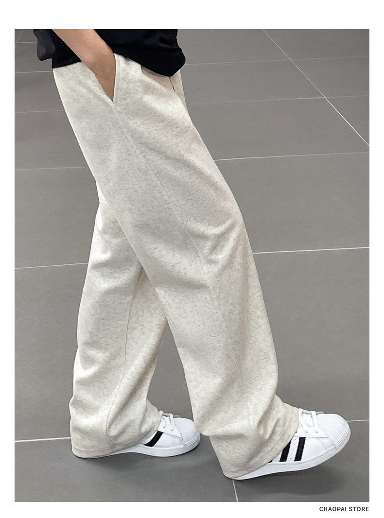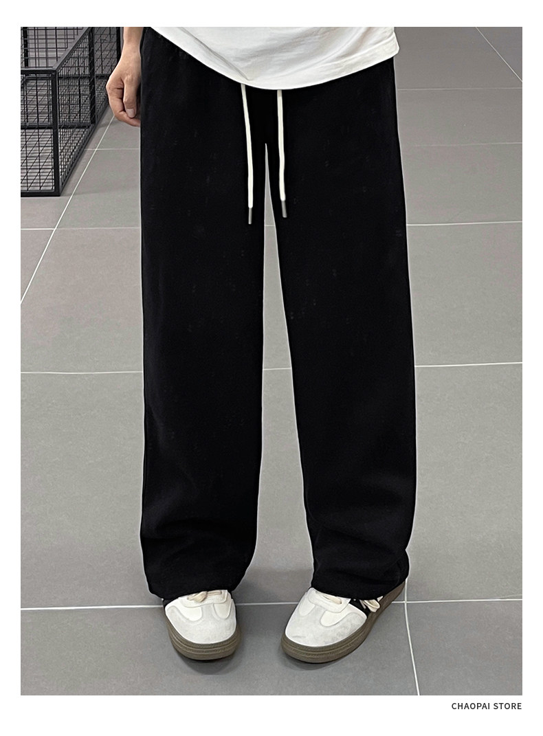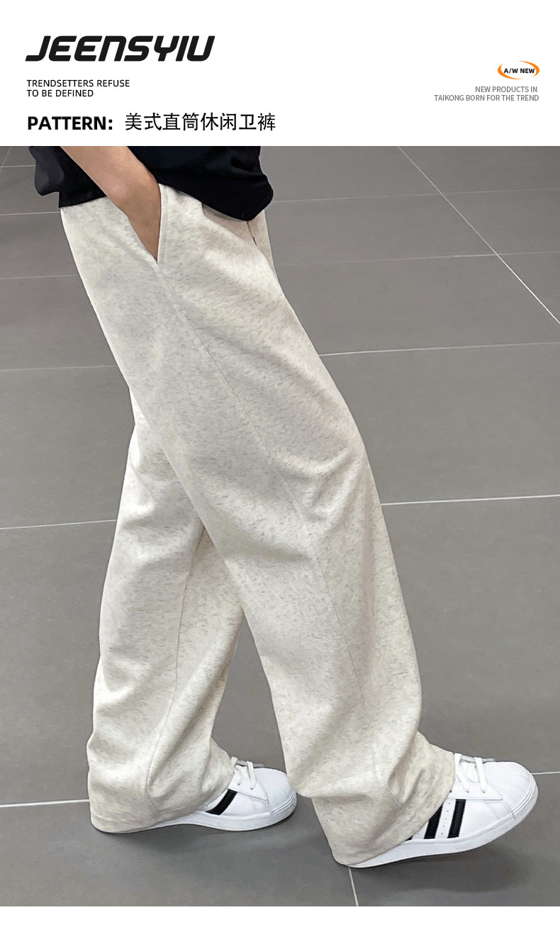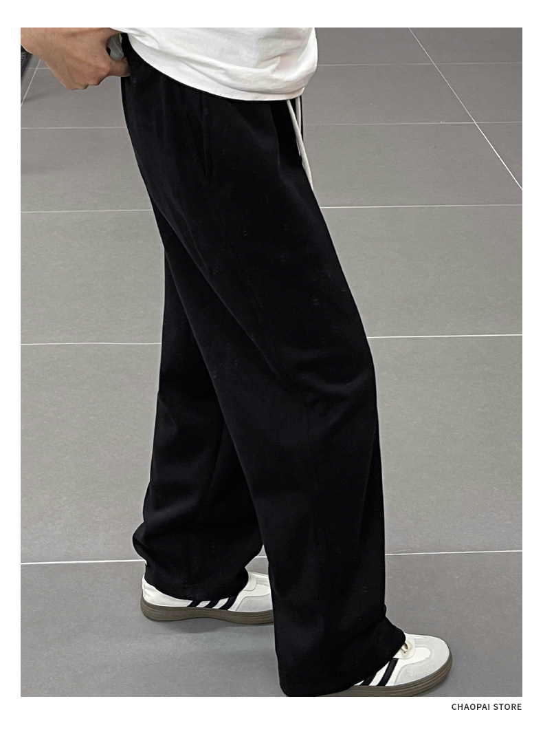 American-Style Fleece-Lined Casual Pants for Men, Autumn and Winter Heavy Thickened Sweatpants, Men's Loose Straight-Leg Drapey Wide-Leg Sports Pants