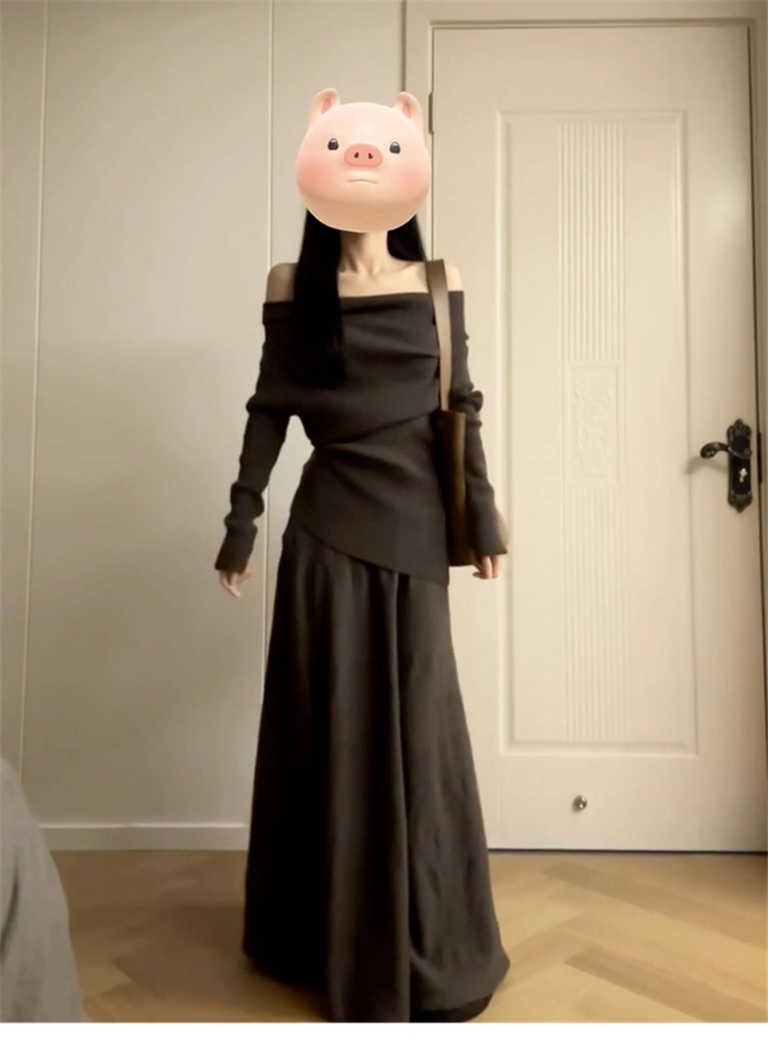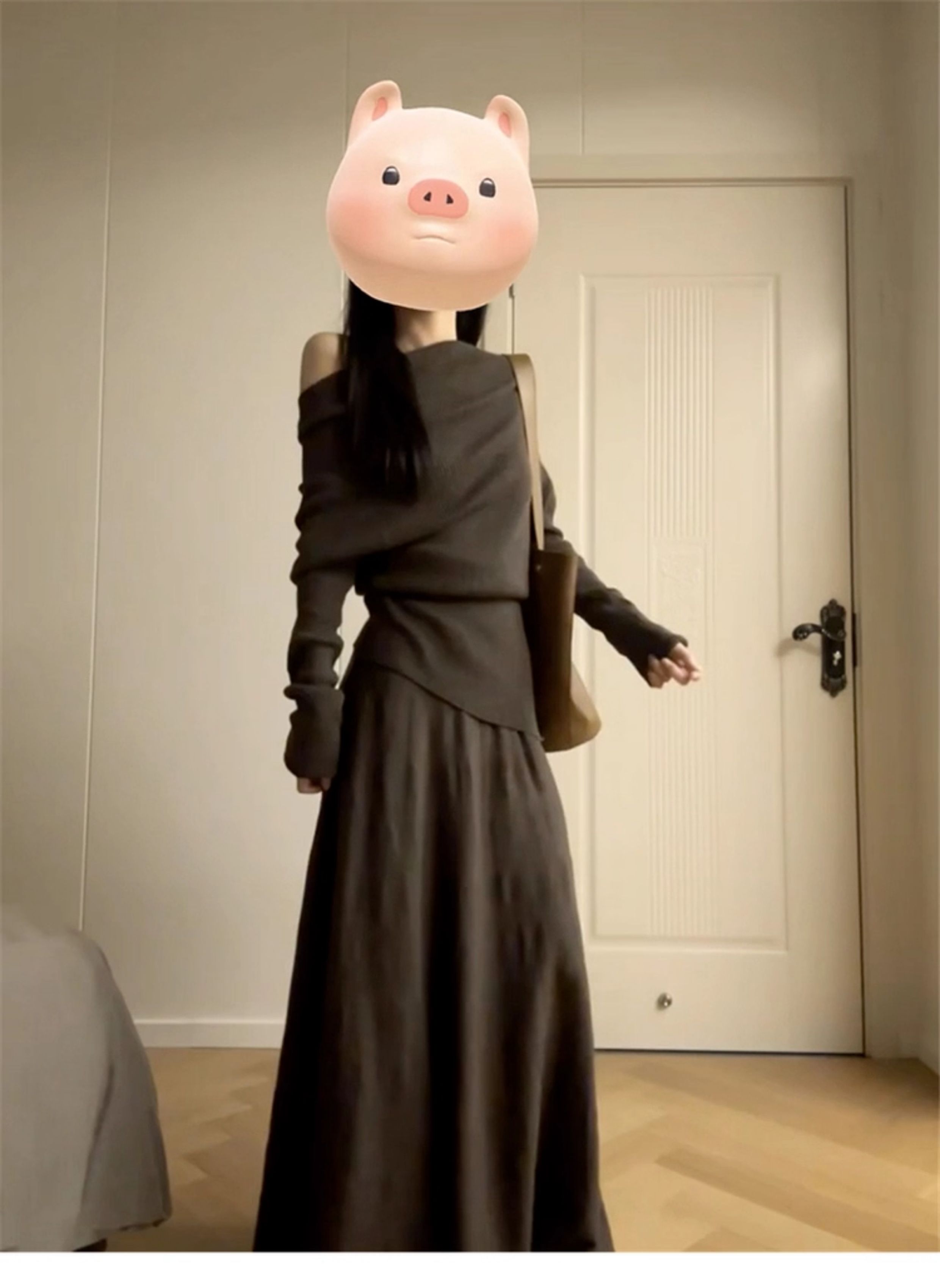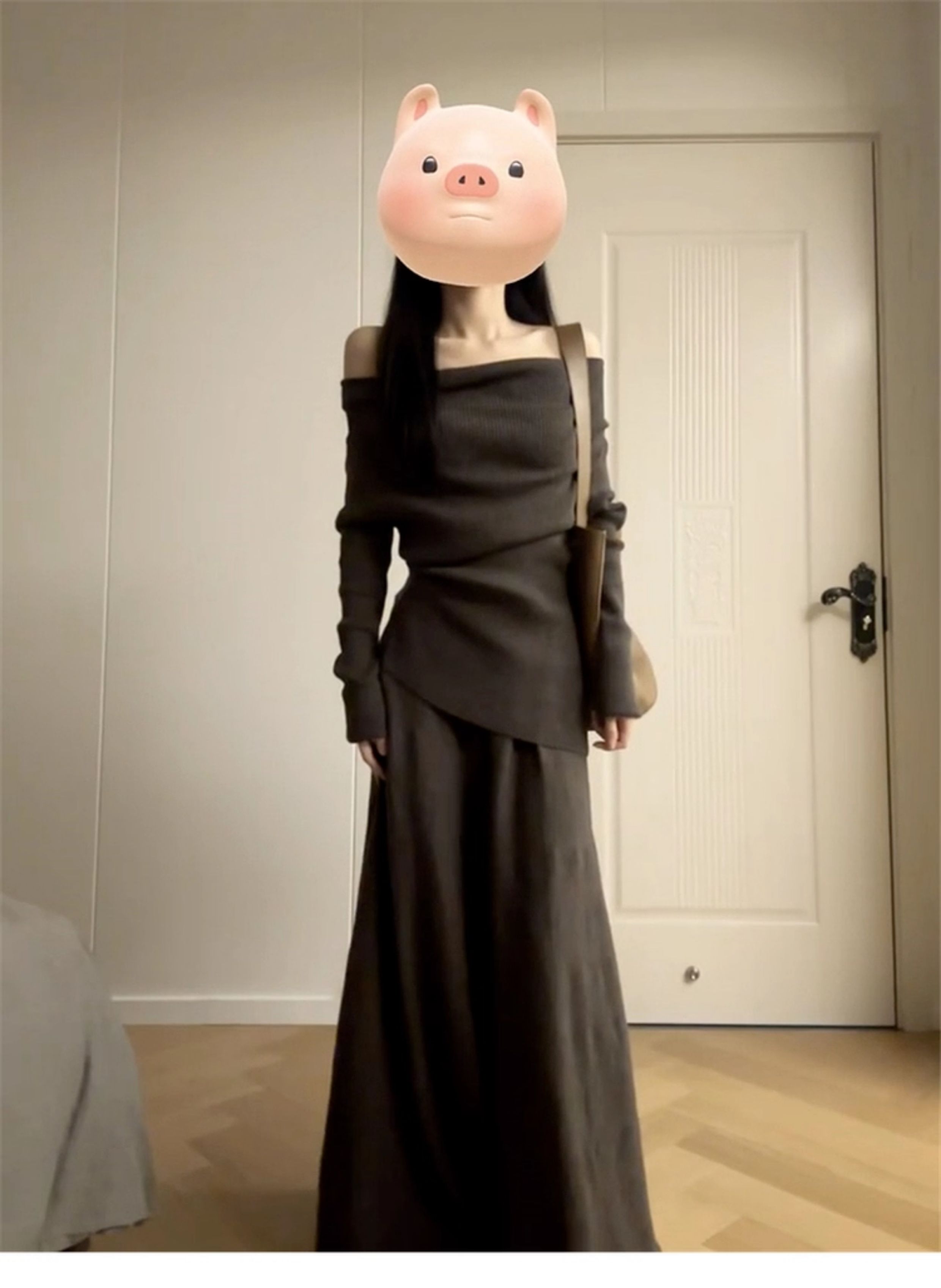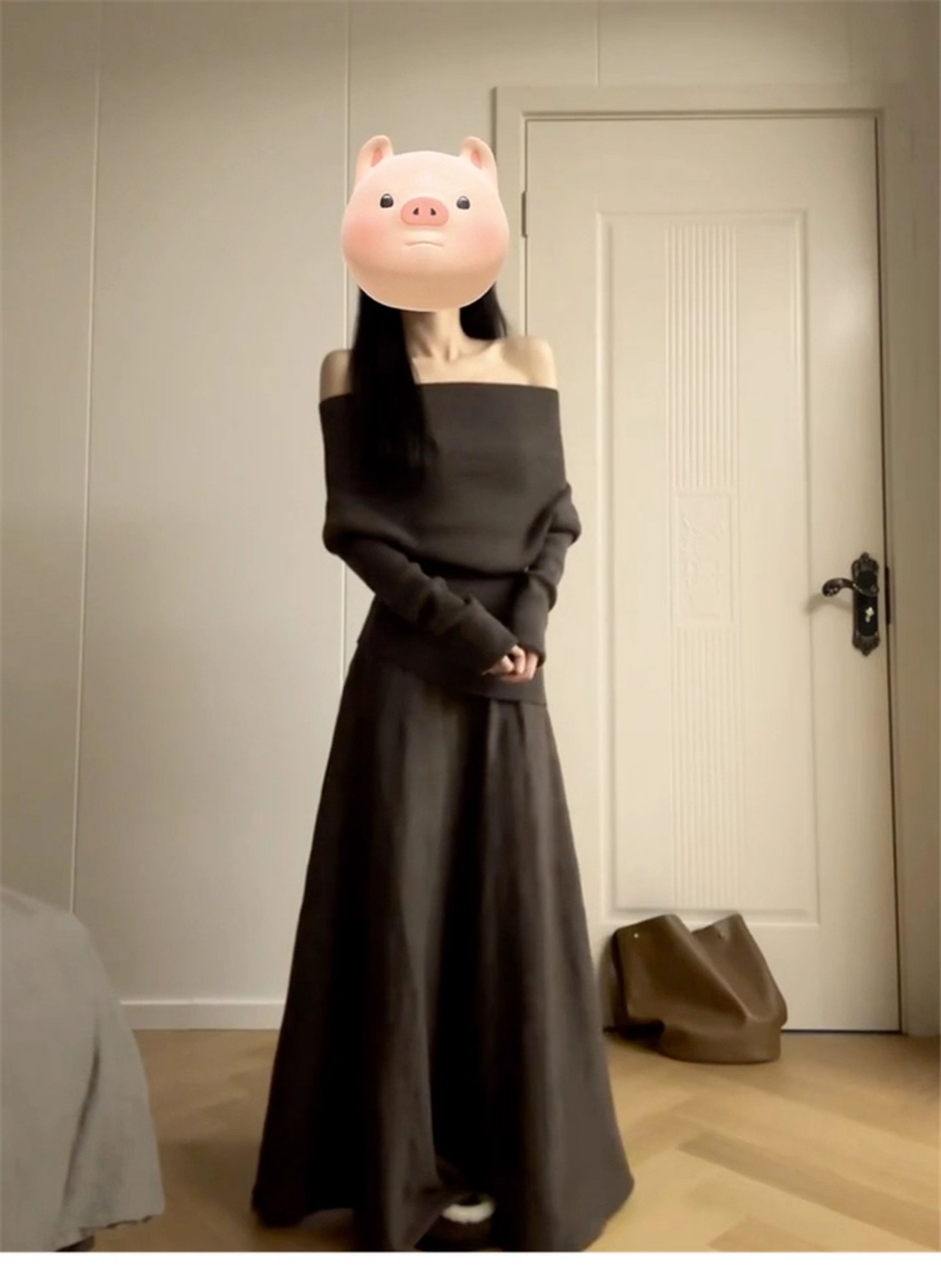 2025 New Style Elegant Off-Shoulder Dress for Women, Autumn and Winter Korean Style Lazy Outfit, Complete Set Long Dress