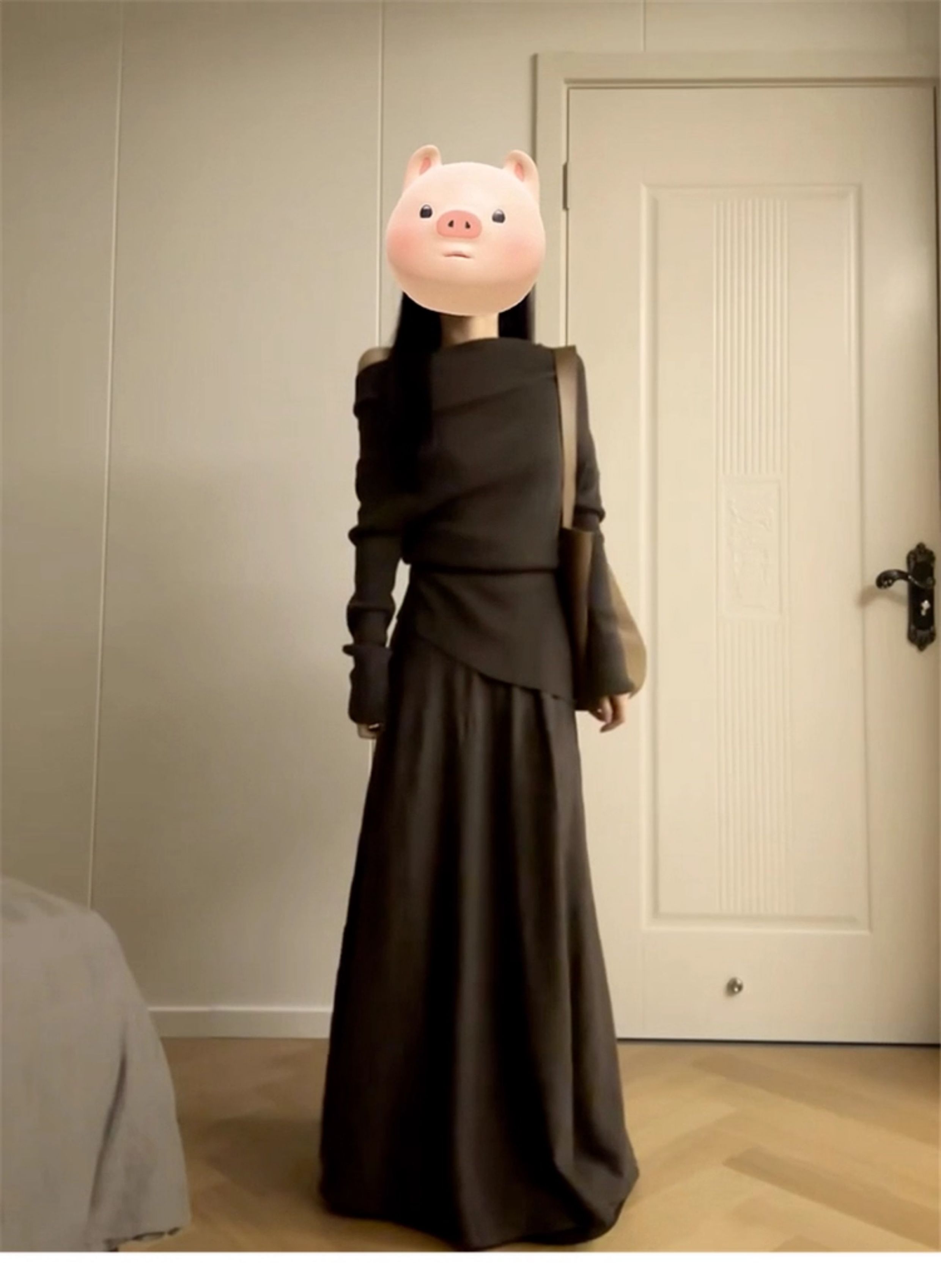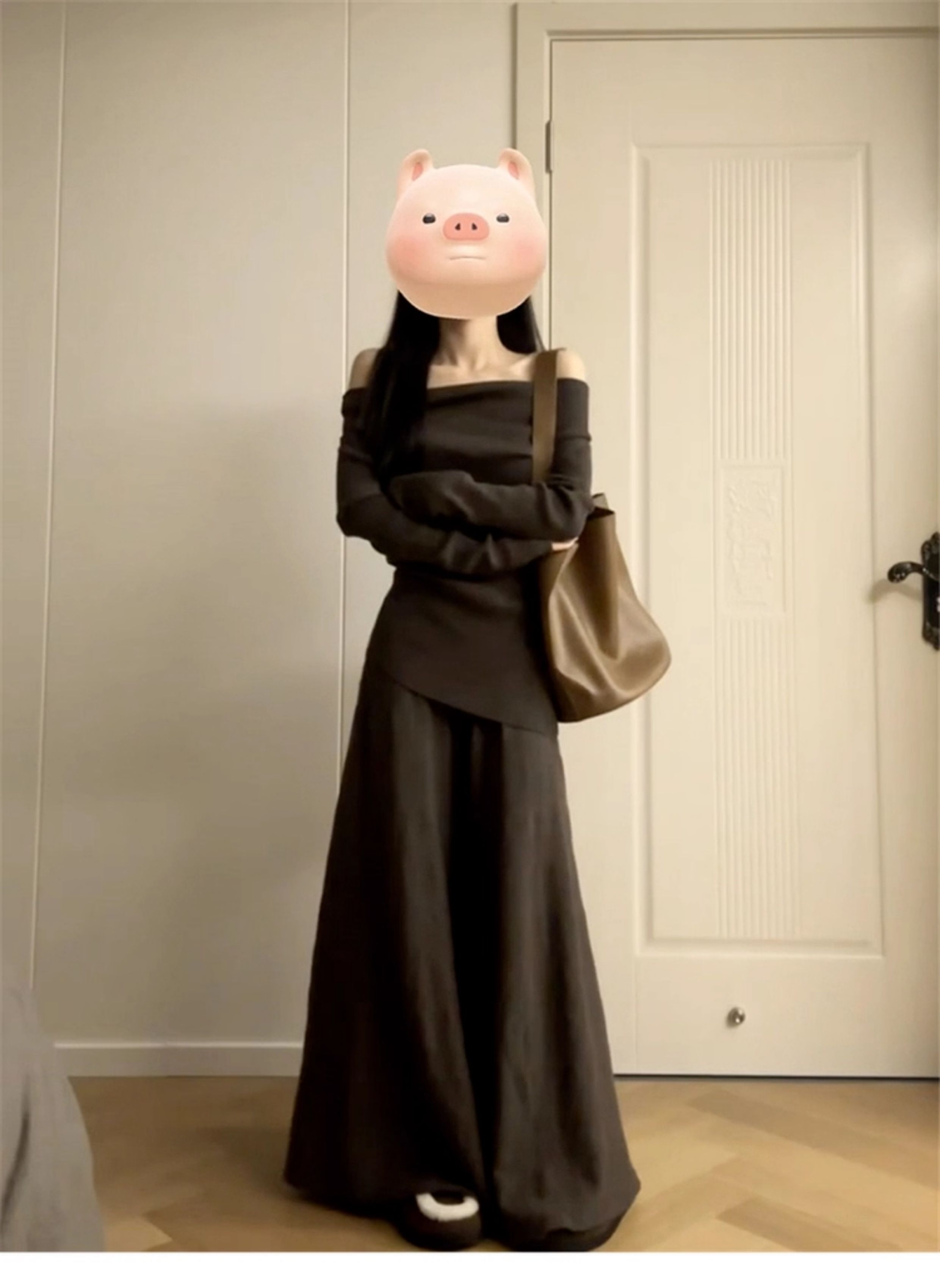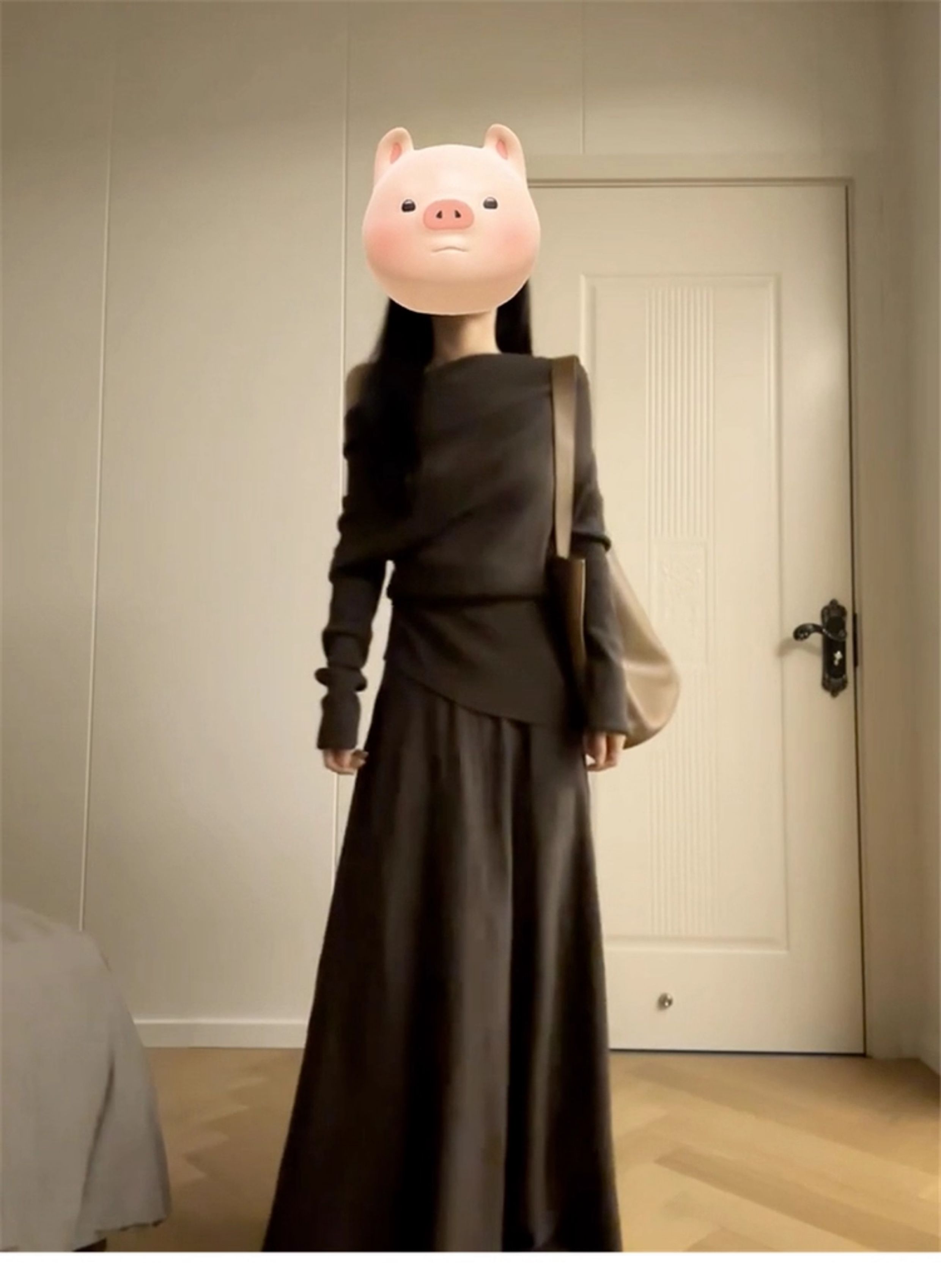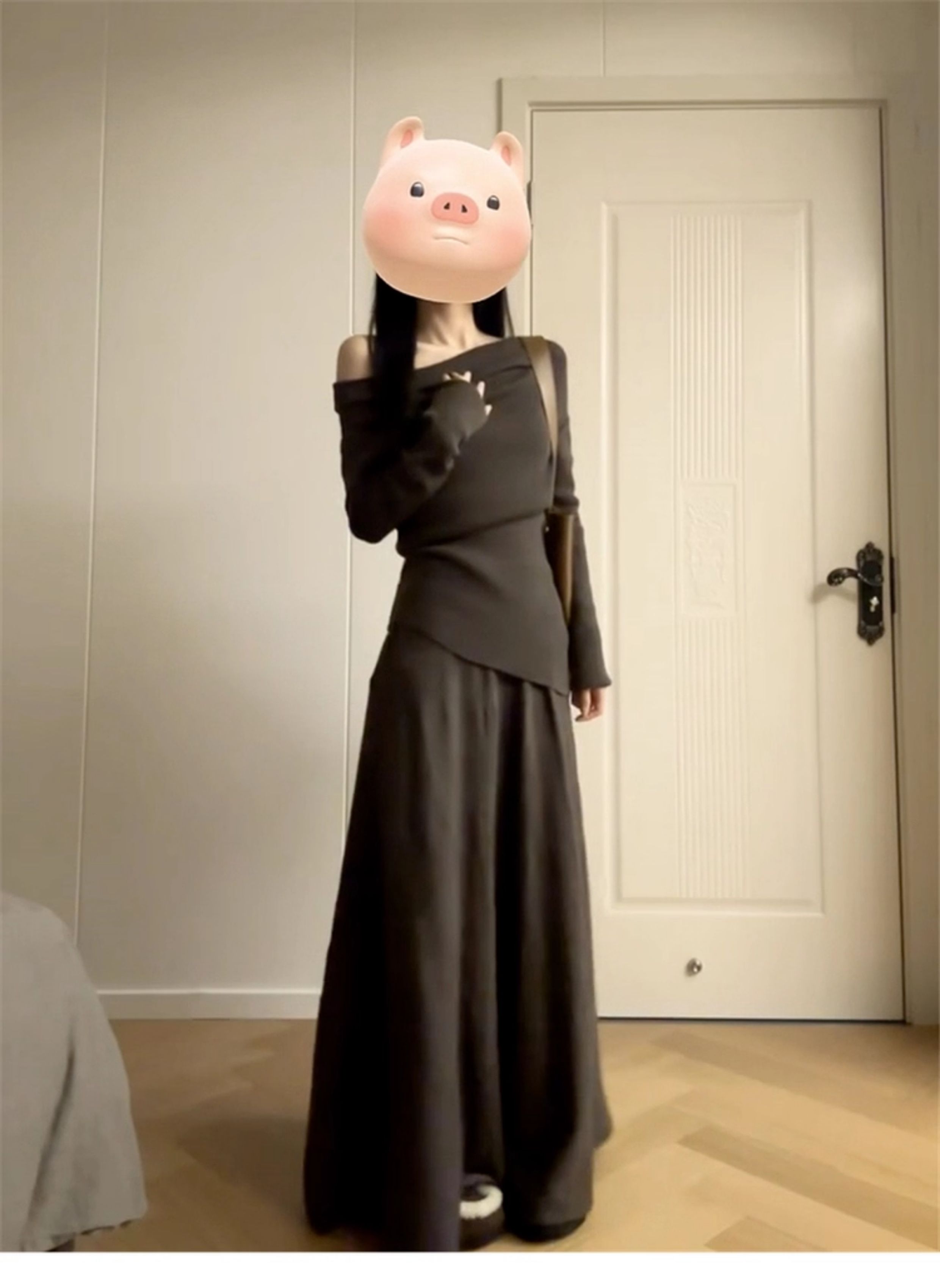 2025 New Style Elegant Off-Shoulder Dress for Women, Autumn and Winter Korean Style Lazy Outfit, Complete Set Long Dress