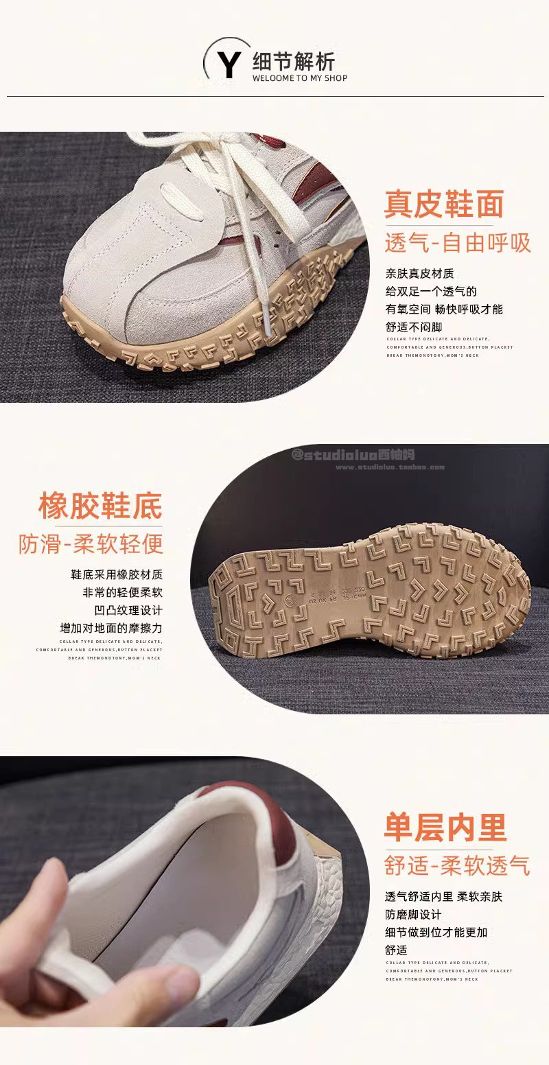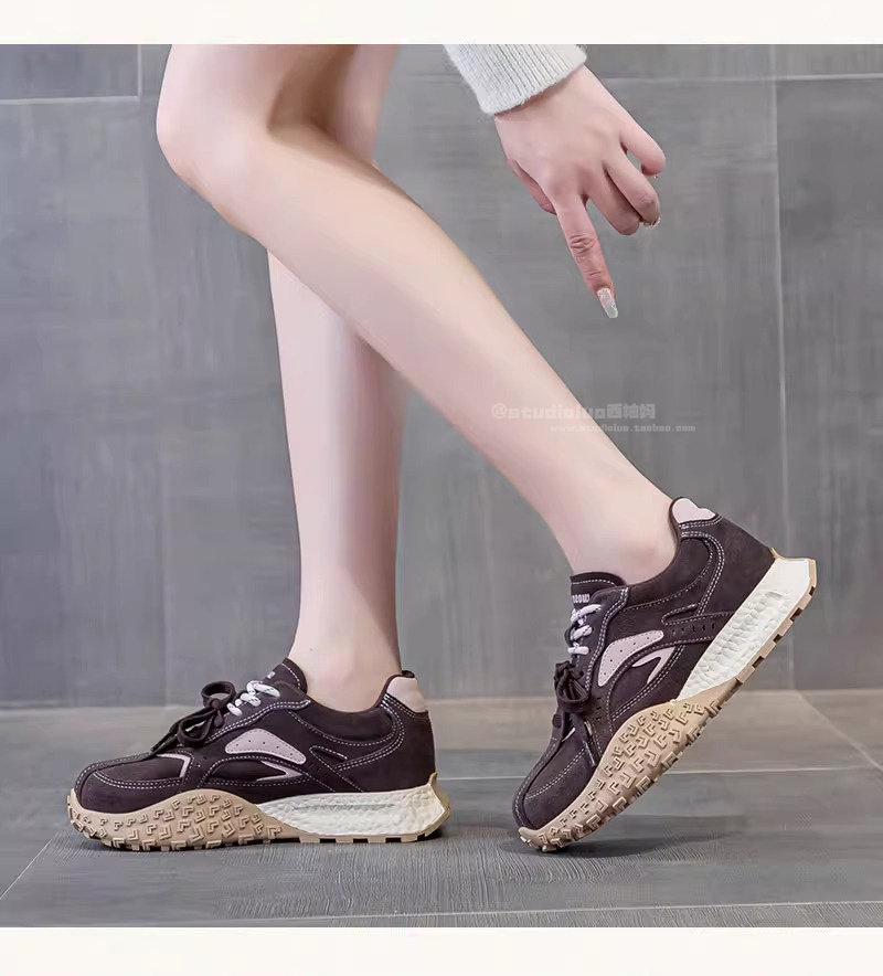 Hong Kong Genuine Leather Casual Soft-Soled German Training Shoes for Women 2026 Spring and Autumn Color-Blocked Sneakers Thick-Soled Sports Running Dad Shoes