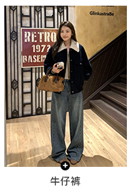 Pusumede American Retro Corduroy Jacket for Women in Autumn and Winter, Imitation Lamb Wool Lapel Cotton Outwear, Work Jacket Top