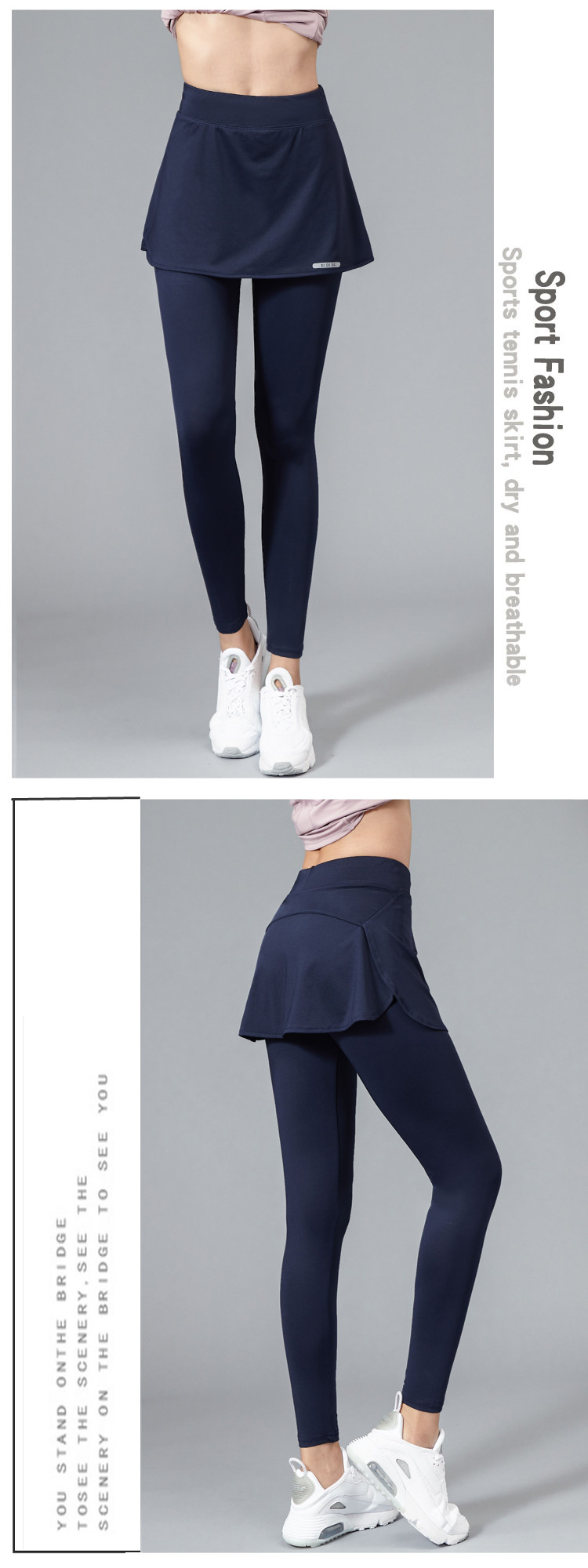 Women's Sports Pants with a Skirt Overlay, Suitable for Tennis and Badminton, Hip-Covering, Thin Spring/Summer Style, Quick-Drying for Fitness, Yoga, and Running